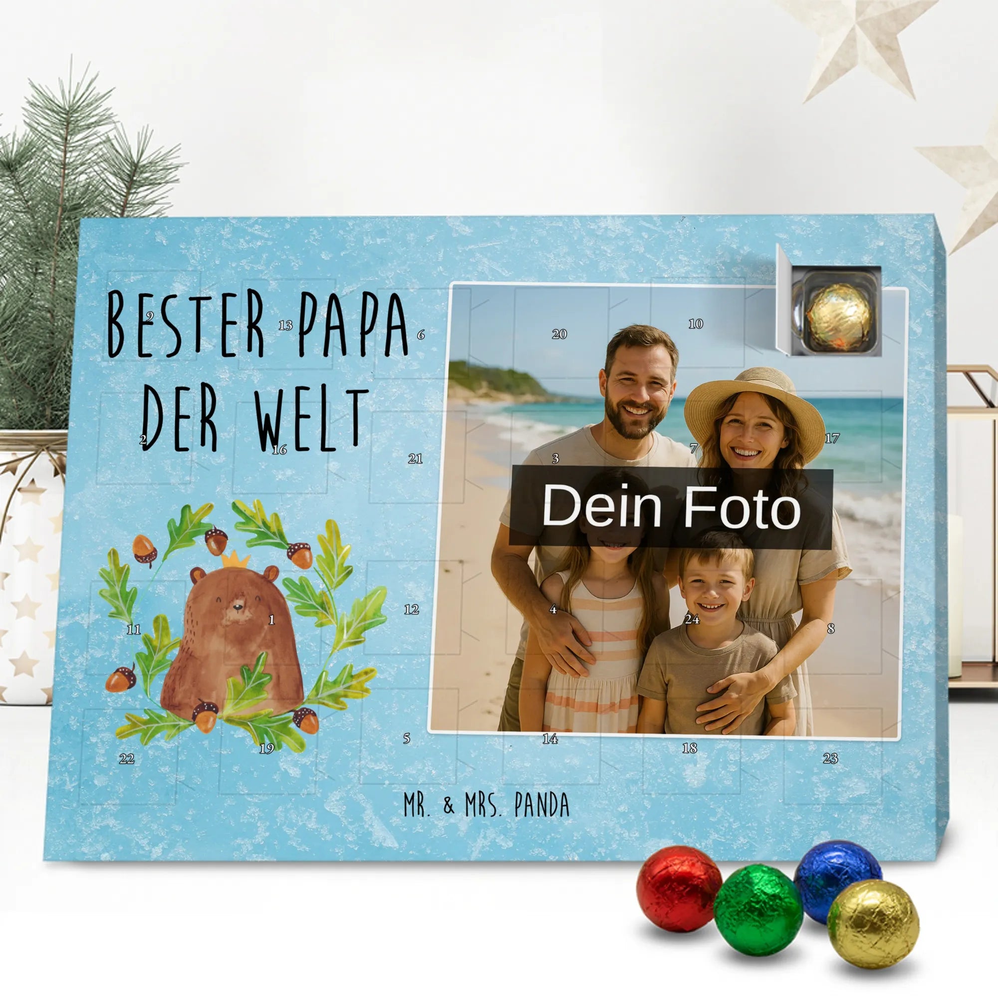 🐼 PERSONALISIERTER KALENDER: Dein Foto-Adventskalender mit 24 Schokoladentäfelchen und Mr. & Mrs. Panda Motiven.