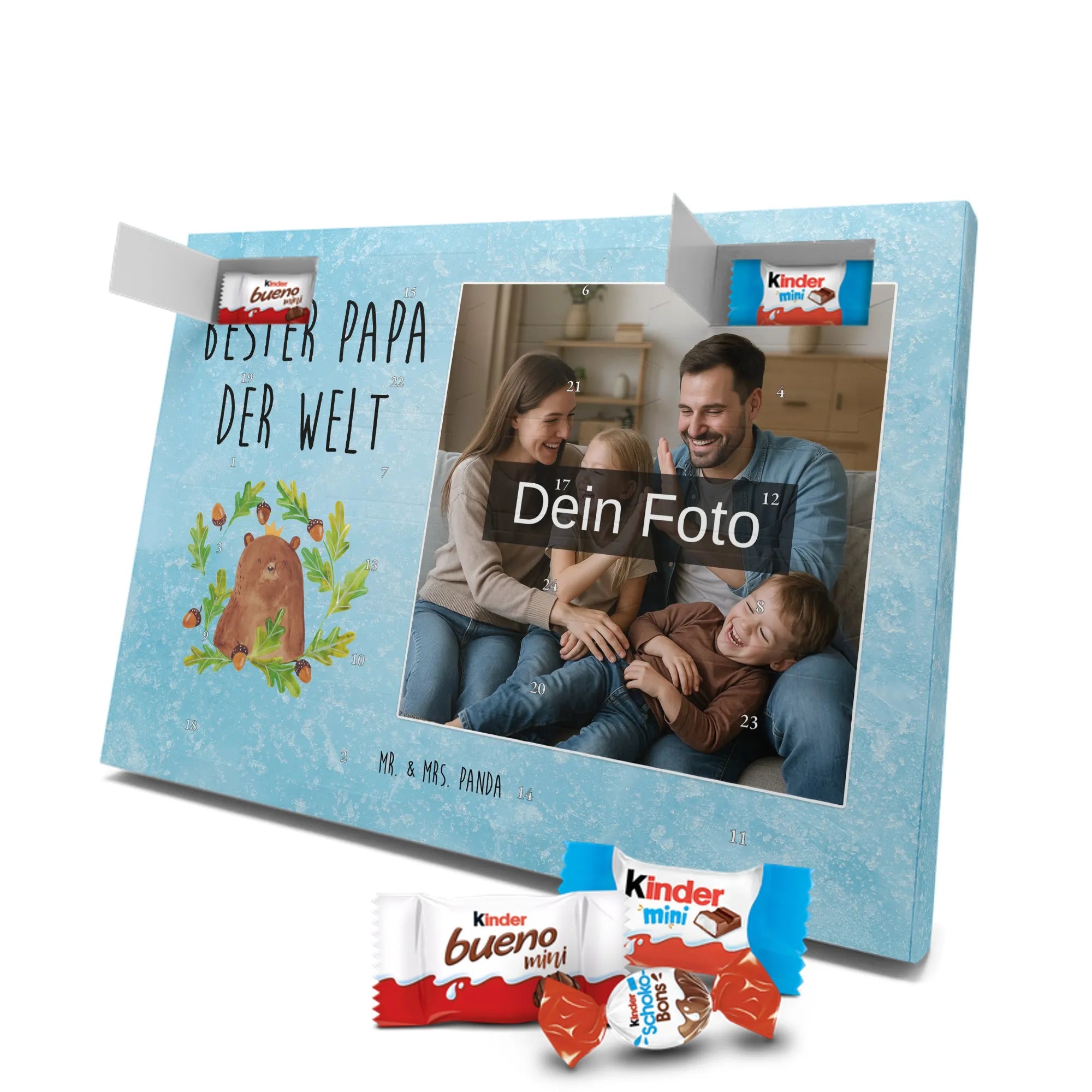 Unser personalisierten Schoko Foto Adventskalender ist ein echtes Highlight in der Adventszeit – handlich, individuell und voller süßer Überraschungen. Du personalisierst die Vorderseite mit deinem liebsten Foto und wir kombinieren es mit liebevollen Motiven und Sprüchen von Mr. & Mrs. Panda. Bitte achte auf eine ausreichende Bildauflösung und einen passenden Bildausschnitt, damit das Druckergebnis gestochen scharf ist. Lade nur Bilder hoch, deren Rechte du besitzt oder bei denen du die Erlaubnis hast, besonders wenn Personen darauf zu sehen sind. Wichtig: Fotos werden nicht retuschiert oder zugeschnitten; personalisierte Foto-Artikel sind vom Widerruf ausgeschlossen. Der Kalender besticht durch brillante Druckqualität und eine seidenmatte Oberflächenveredelung sowie bedruckte Seitenflächen. Maße: 355 mm x 245 mm x 11 mm. Du kannst ihn entweder aufstellen oder an die Wand hängen. Gefüllt ist der Adventskalender mit kinder® Schokolade, inklusive kinder® Schoko-Bons, kinder® Bueno mini und kinder® Schokolade mini. Ein liebevolles, persönliches Geschenk für Kinder, Freunde oder die bessere Hälfte – individuell, süß und mit dem typischen Mr. & Mrs. Panda Charme.