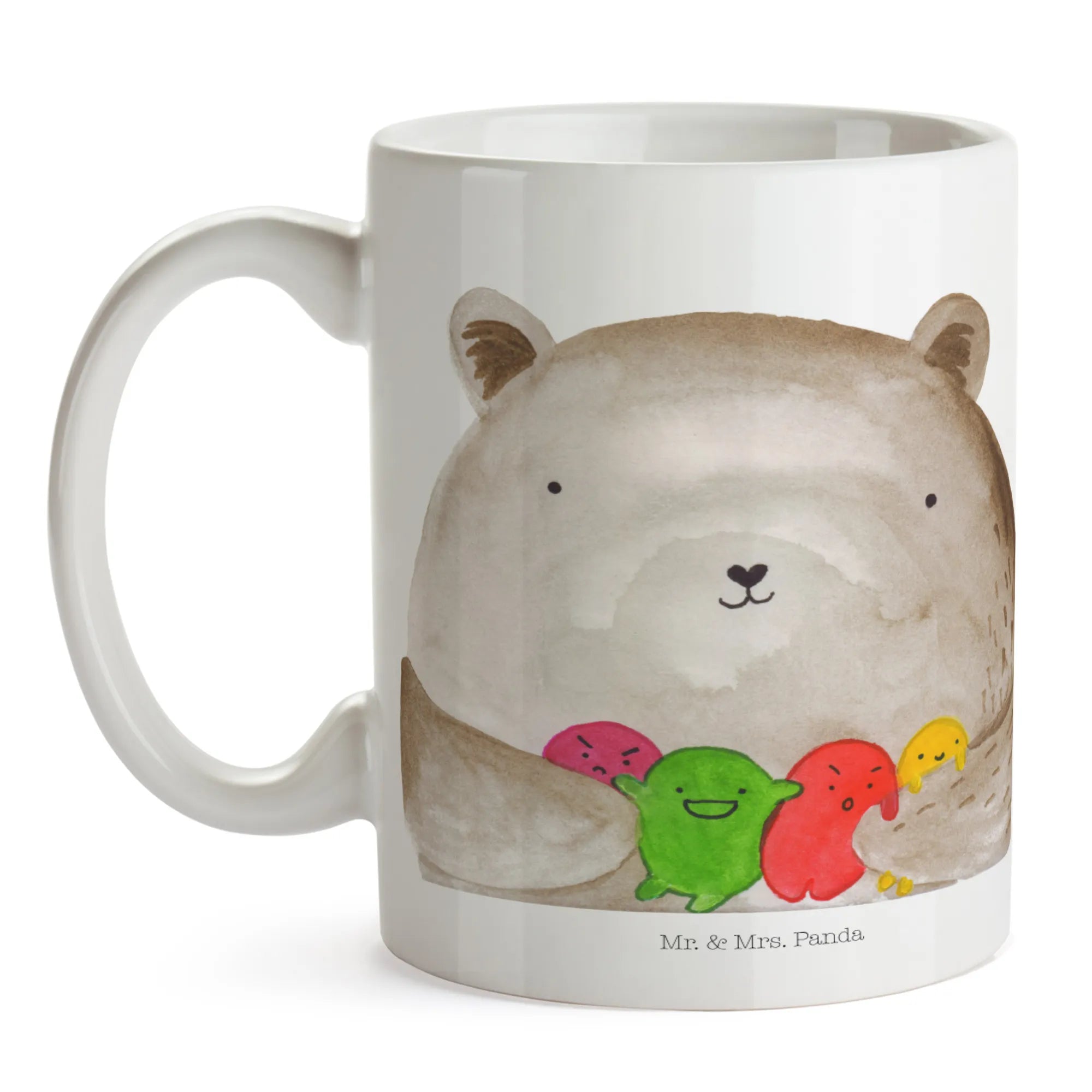 Entdecke die bezaubernde Kaffeetasse "Bär Gefühl" aus der Kollektion von Mr. & Mrs. Panda! Diese wundervolle Keramiktasse ist nicht nur ein praktischer Begleiter für deinen Kaffee oder Tee, sie erzählt auch Geschichten voller Gefühle. Der süße Bär auf der Tasse hält viele bunte Kugeln in seinen Händen, die die tiefsten Emotionen von Liebe, Freundschaft, Sehnsucht und Trauer symbolisieren.
