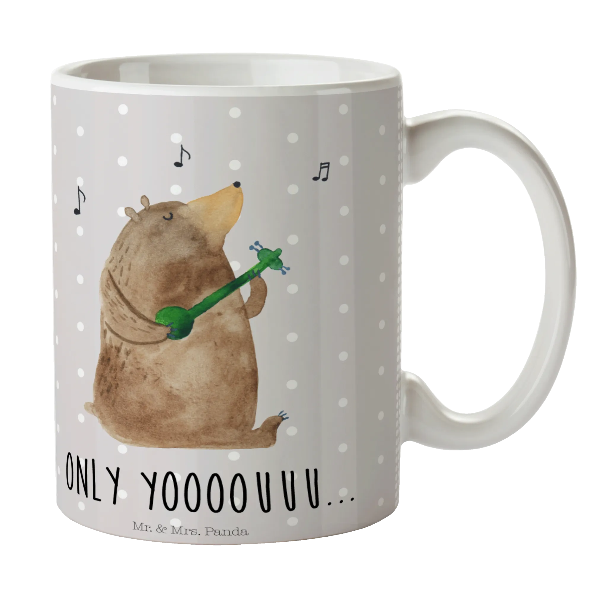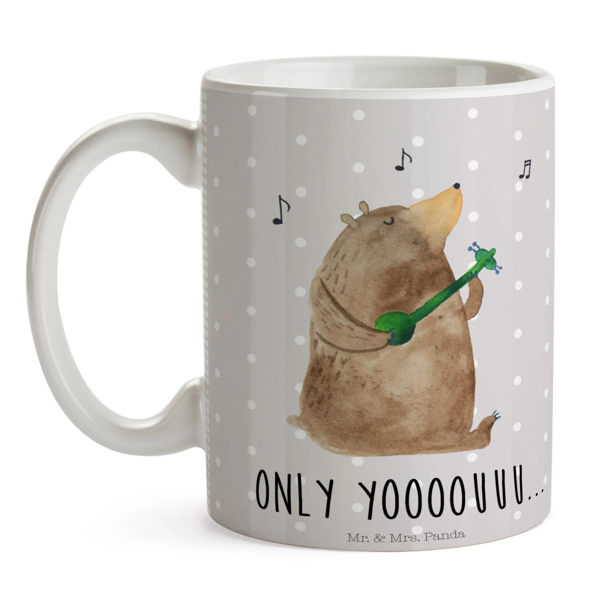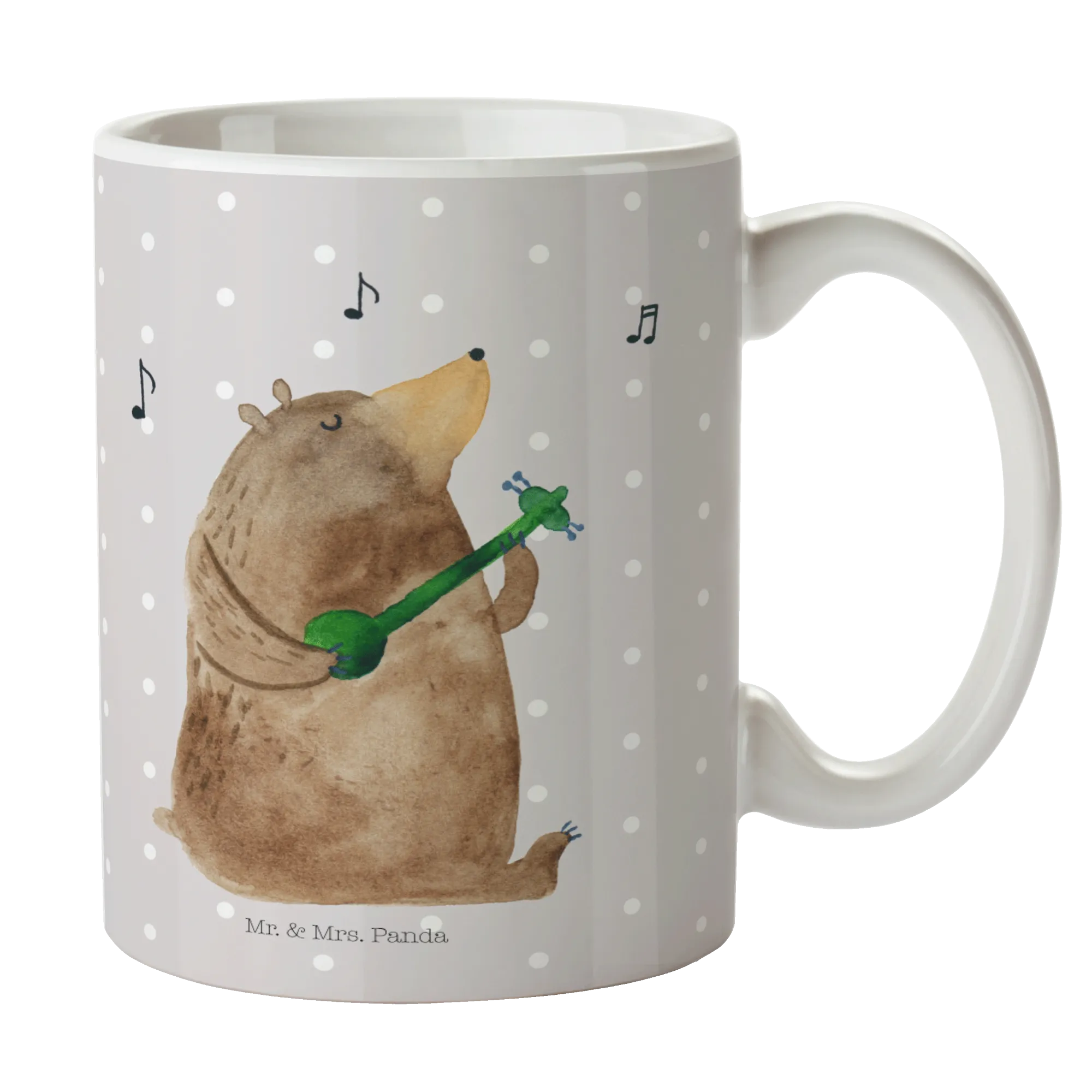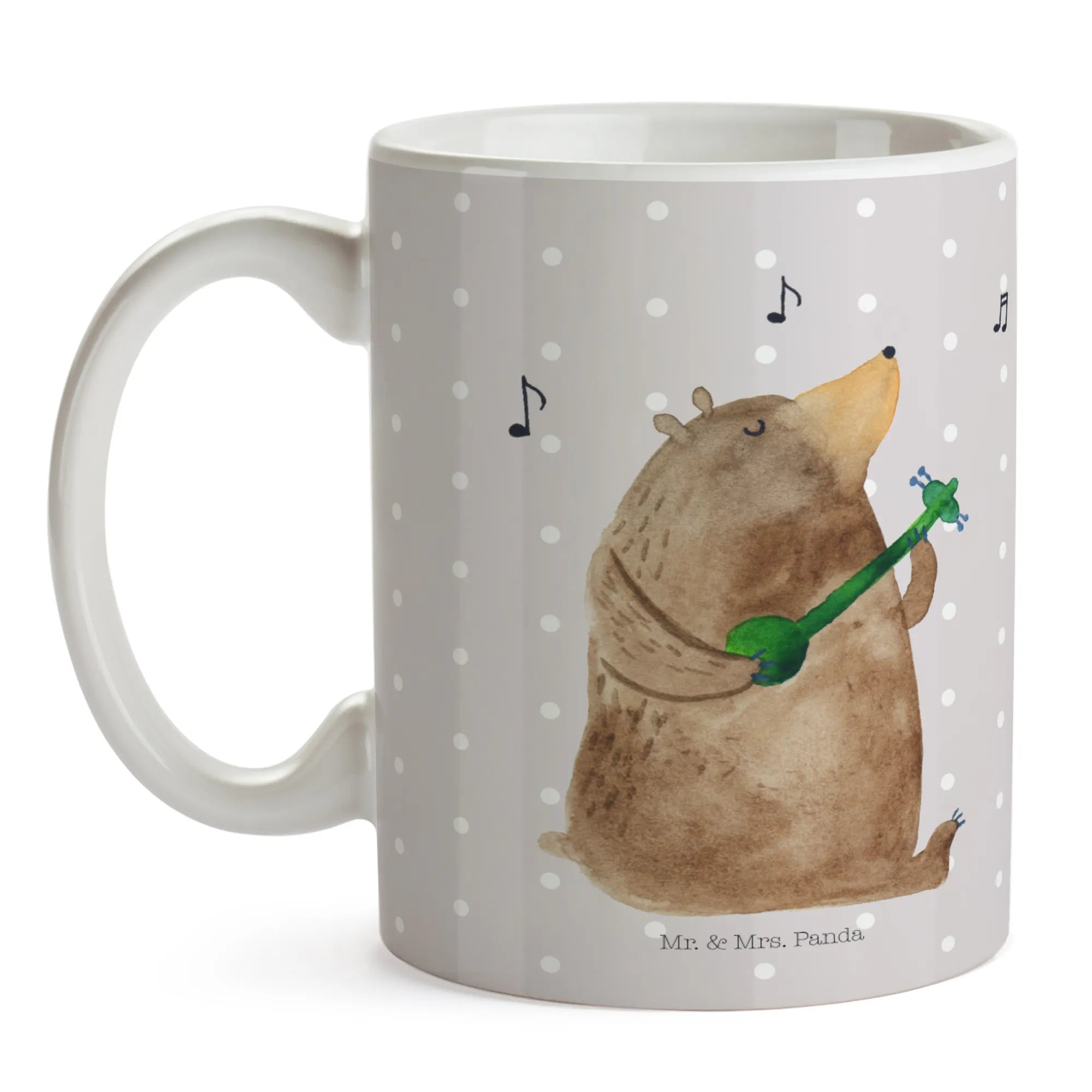 Tasse Bär Gitarre - mit Spruch - Keramik - Grau Pastell