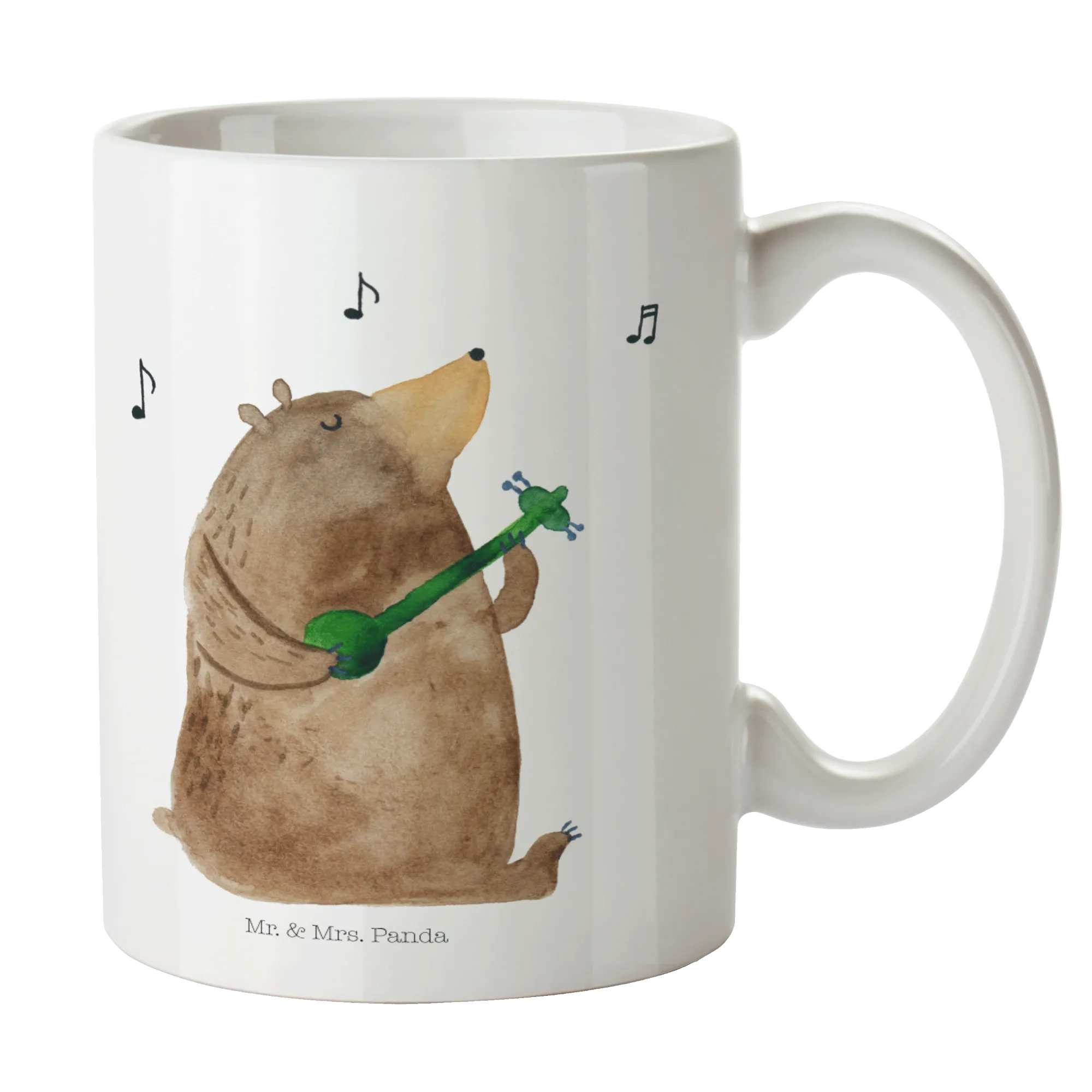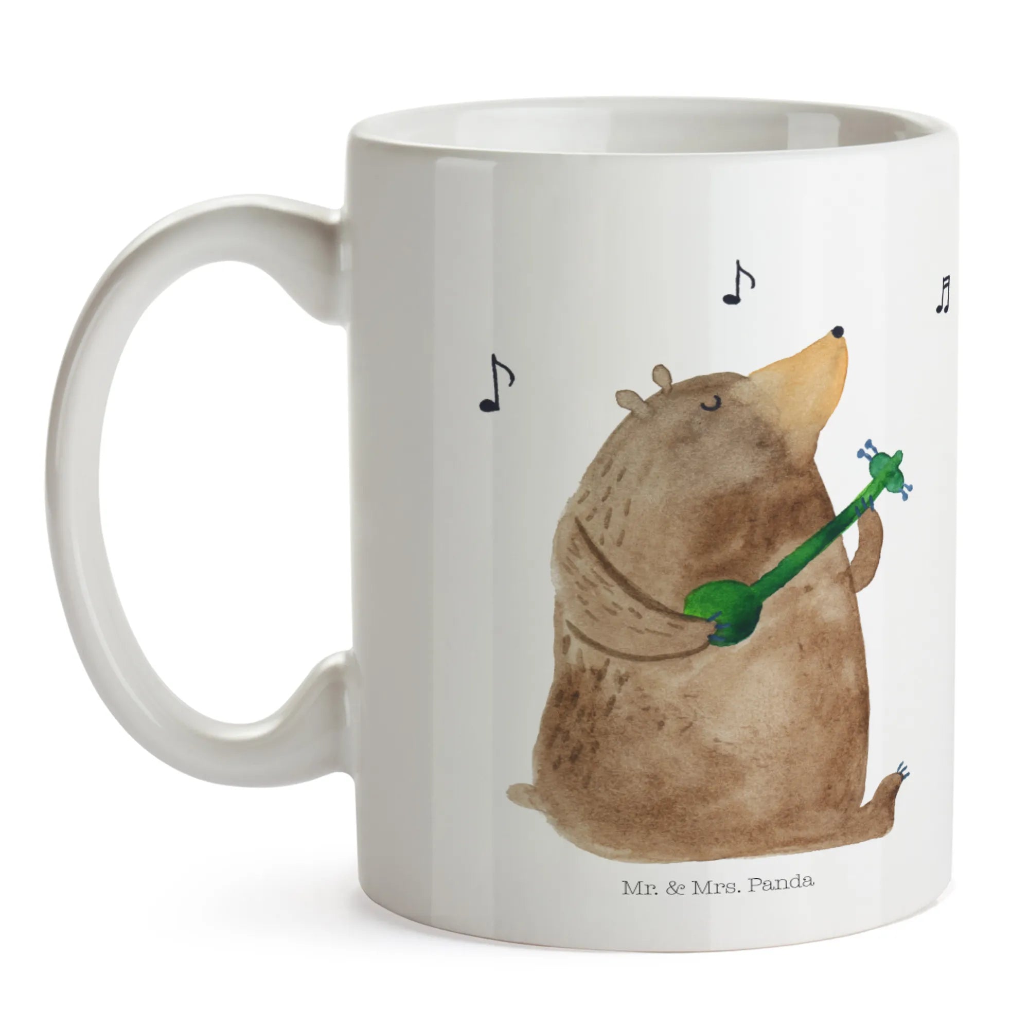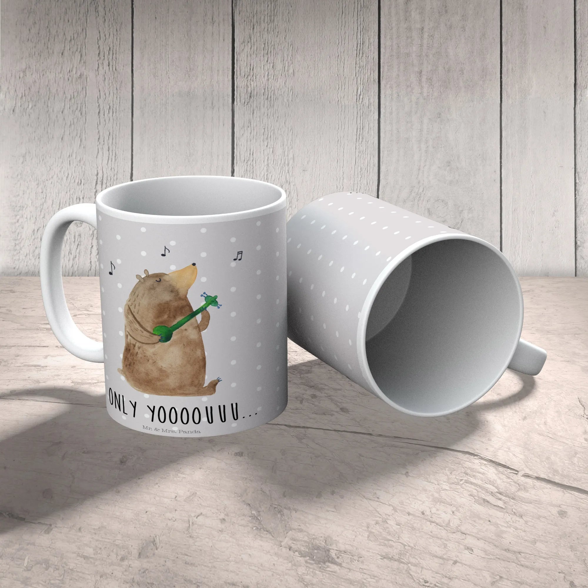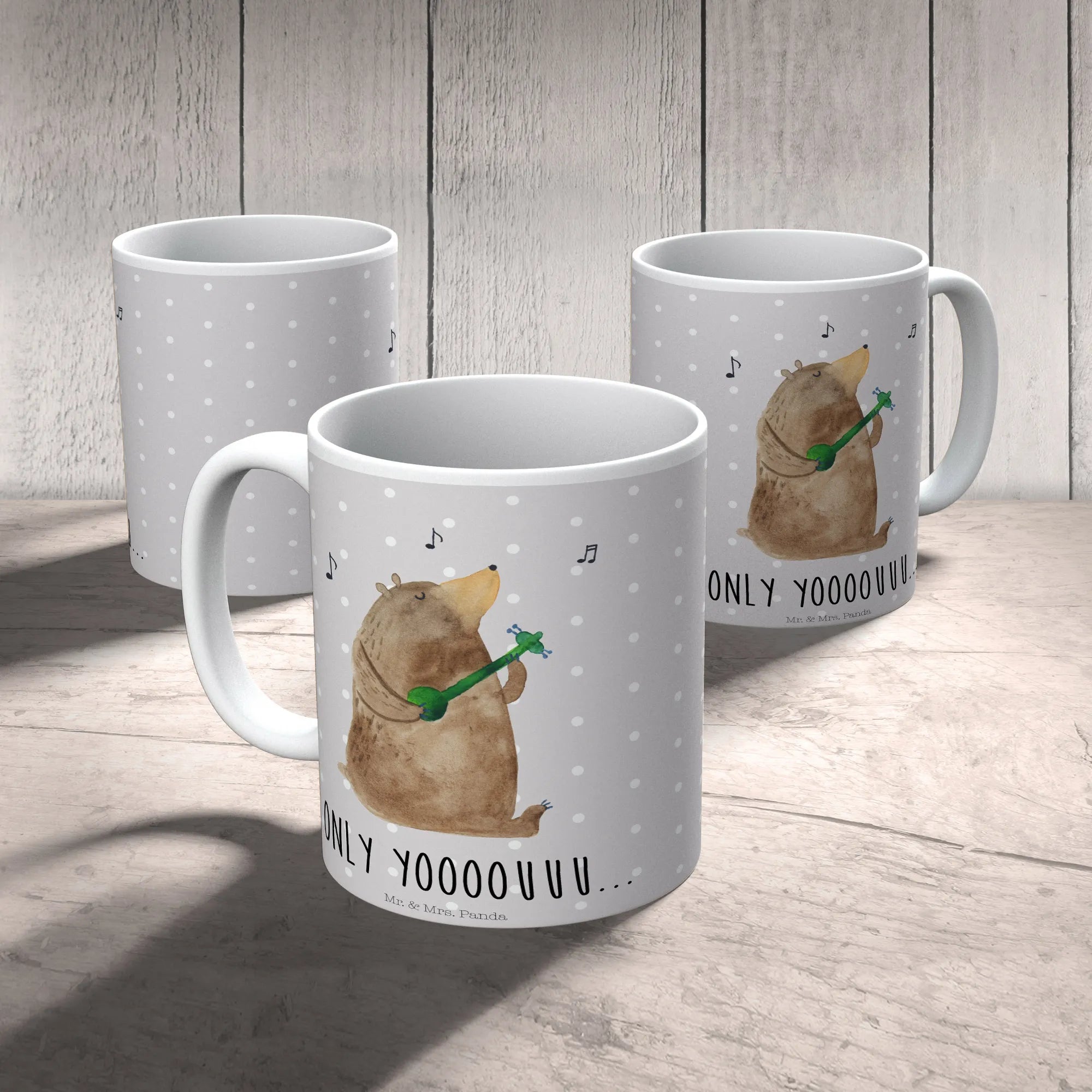 Tasse Bär Gitarre - mit Spruch - Keramik - Grau Pastell