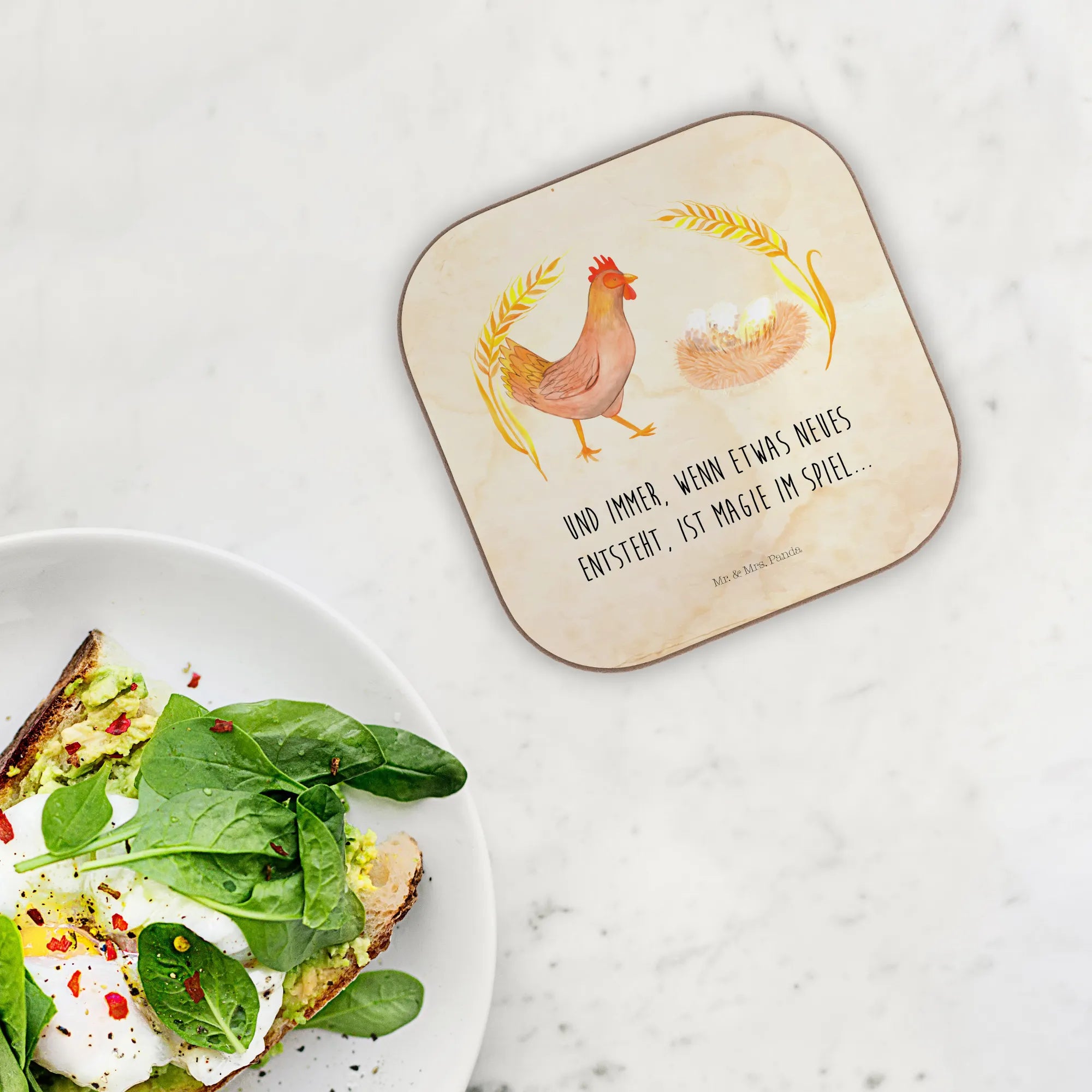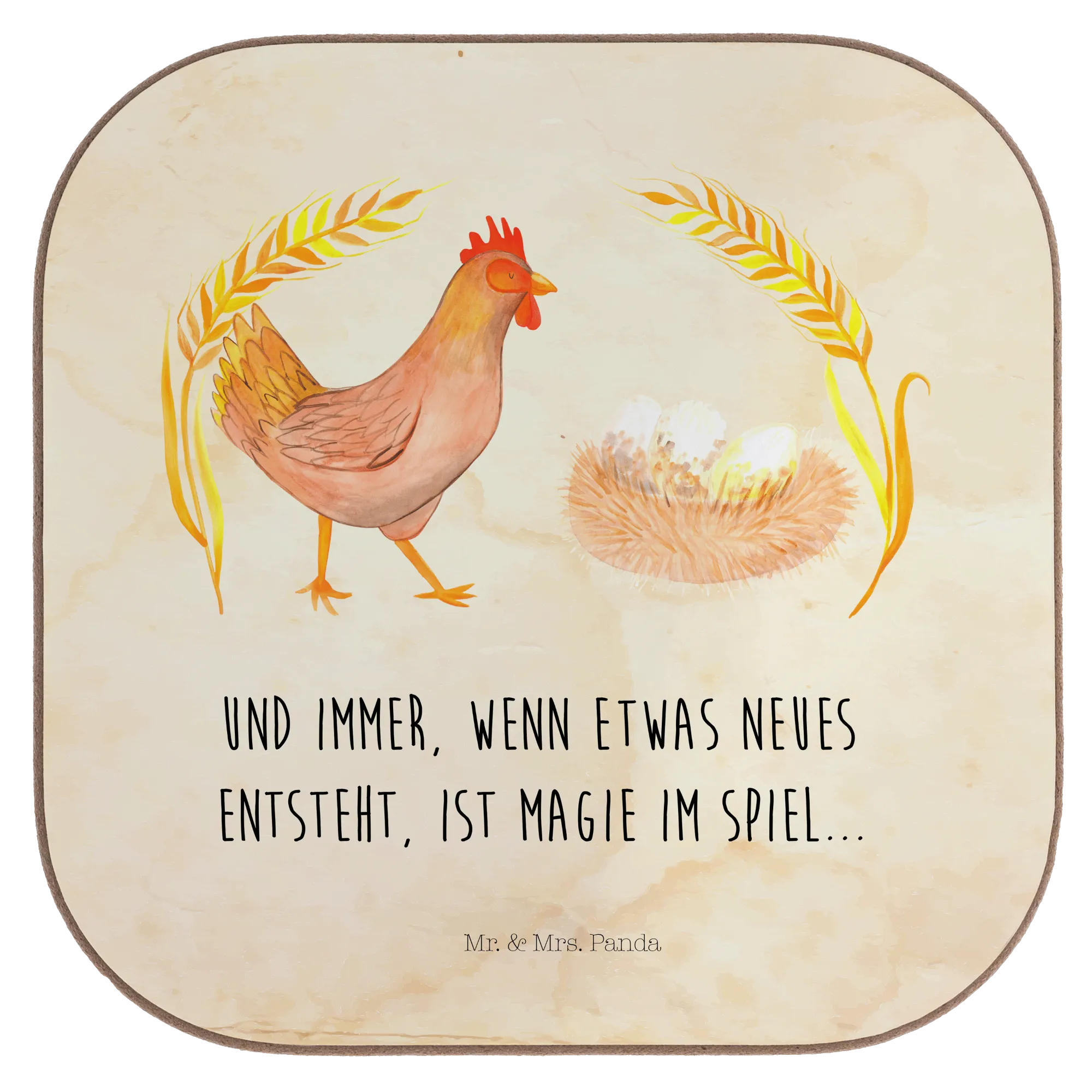 Bist du auf der Suche nach einem ganz besonderen Geschenk für einen Tierfreund oder einen Bauernhof-Liebhaber? Dann ist der wunderschöne quadratische Untersetzer "Huhn stolz" von Mr. & Mrs. Panda genau das richtige für dich!