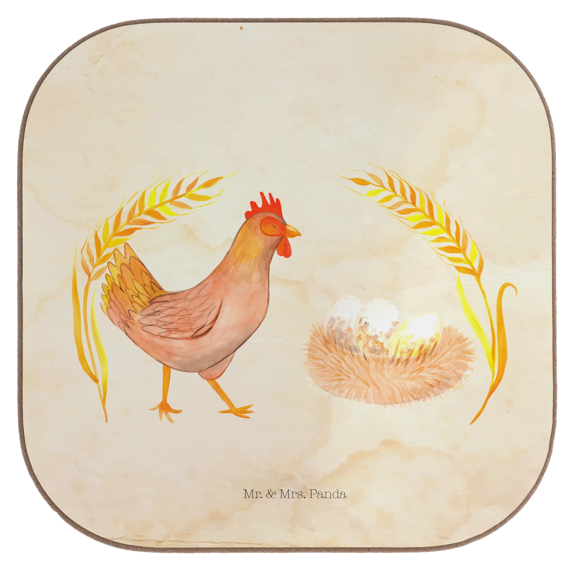 Entdecke den wunderschönen quadratischen Untersetzer "Huhn stolz" aus der charmanten Bauernhof Kollektion von Mr. & Mrs. Panda! Mit diesem einzigartigen Accessoire bringst du ein Stück ländliche Idylle direkt in dein Zuhause.