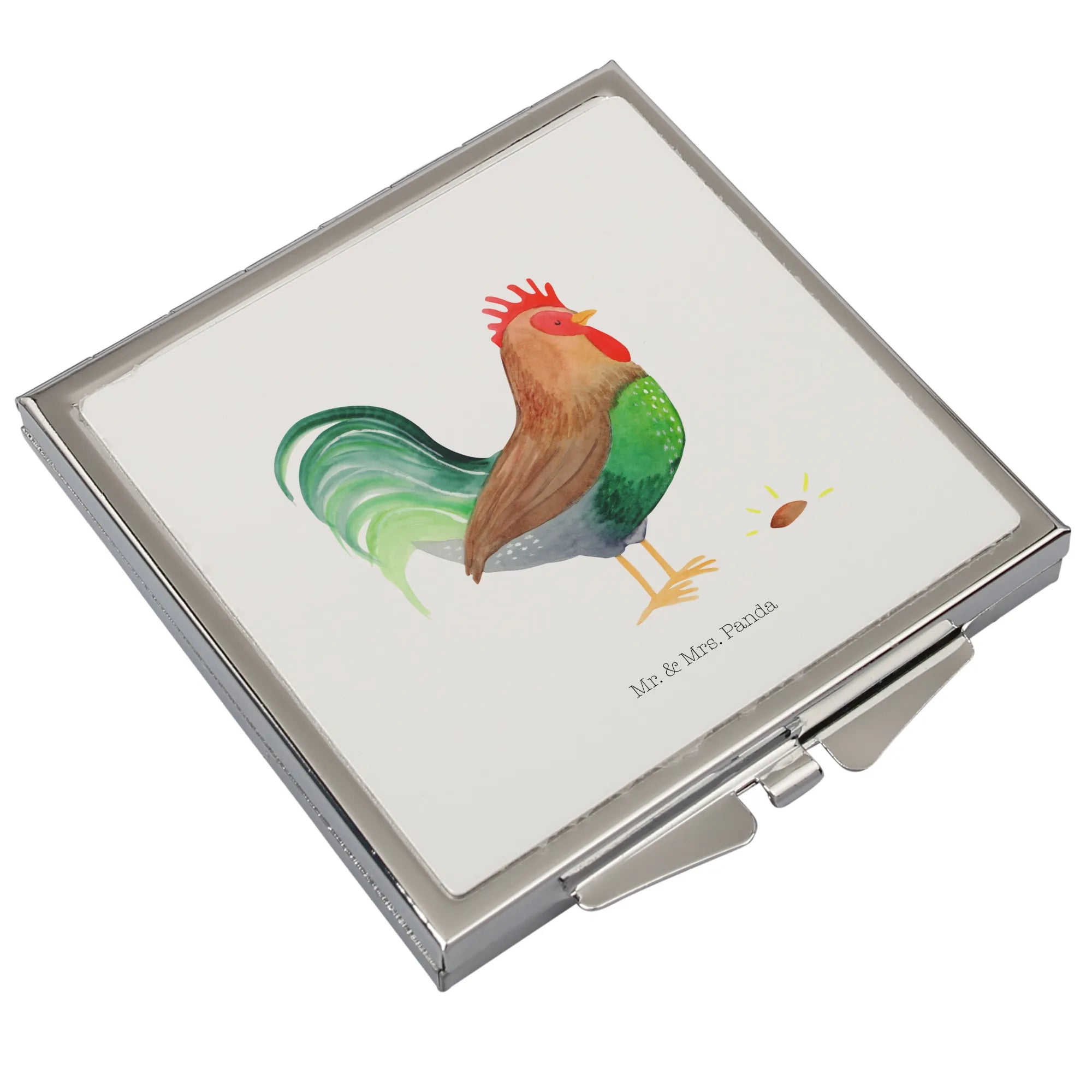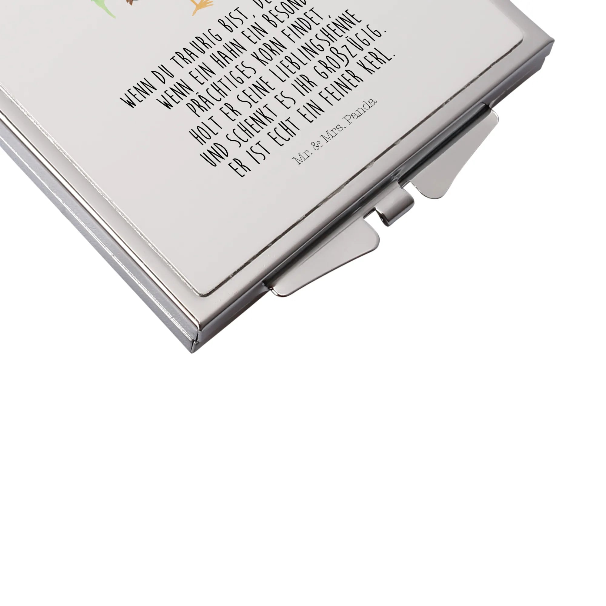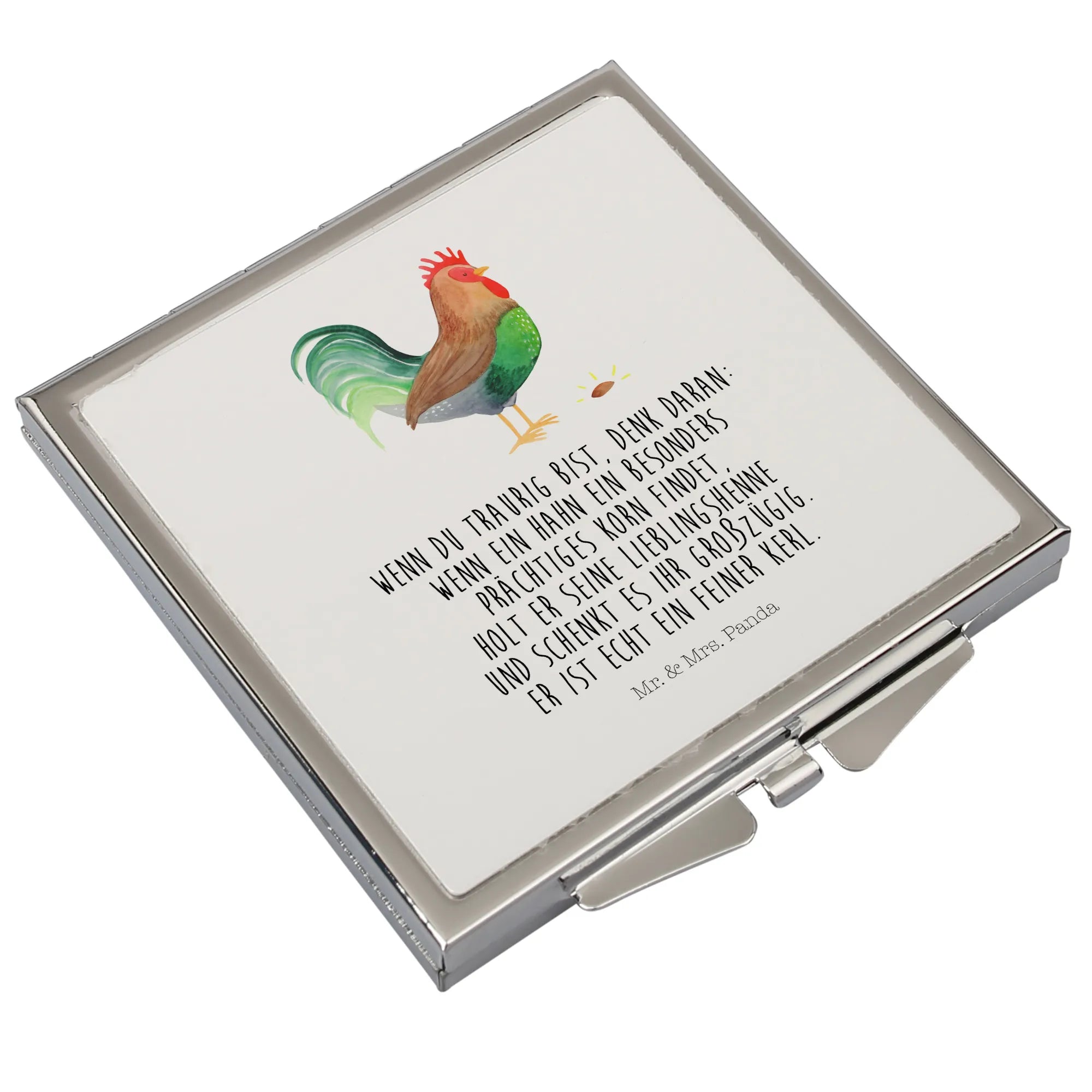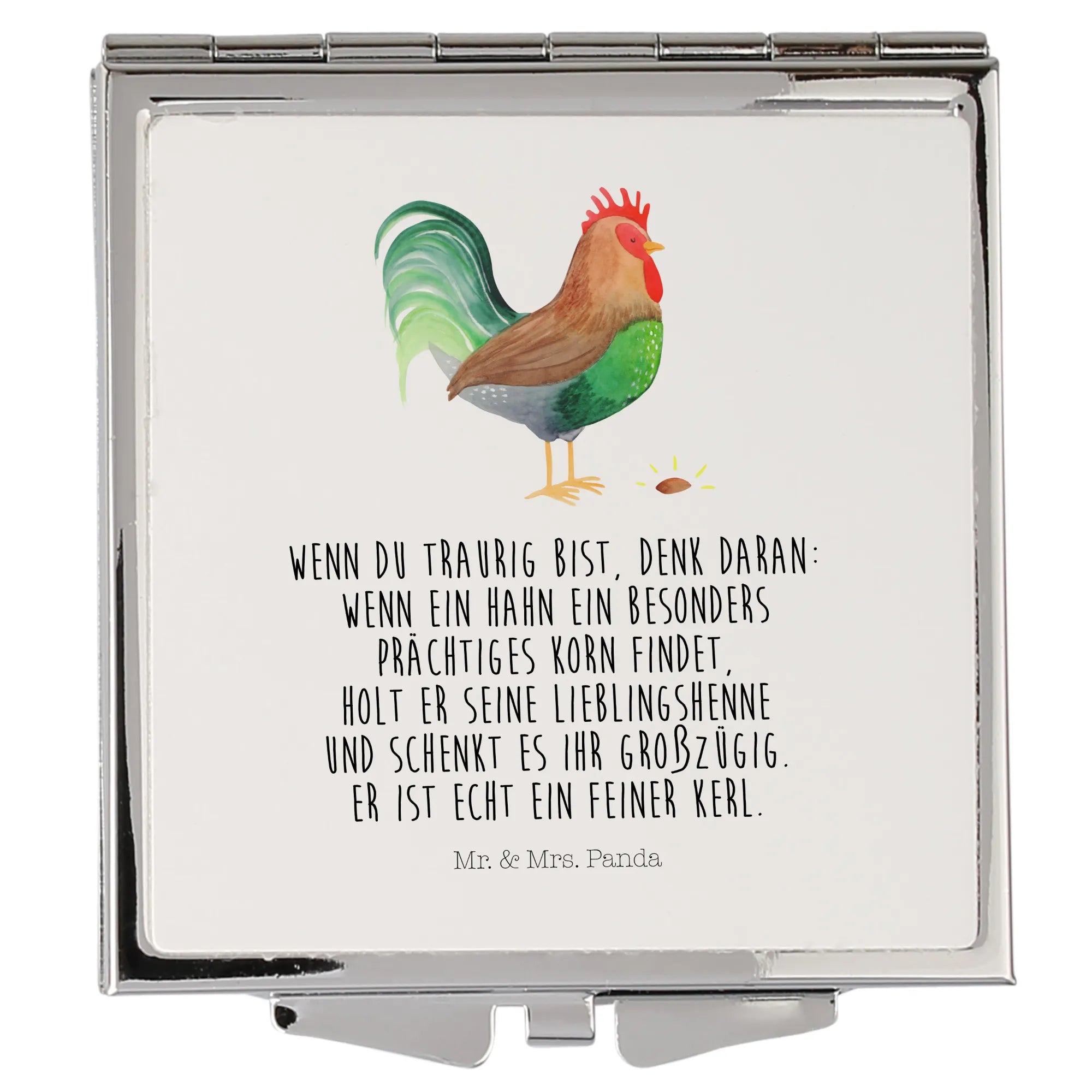 Handtaschenspiegel quadratisch Hahn mit Korn - mit Spruch - Weiß