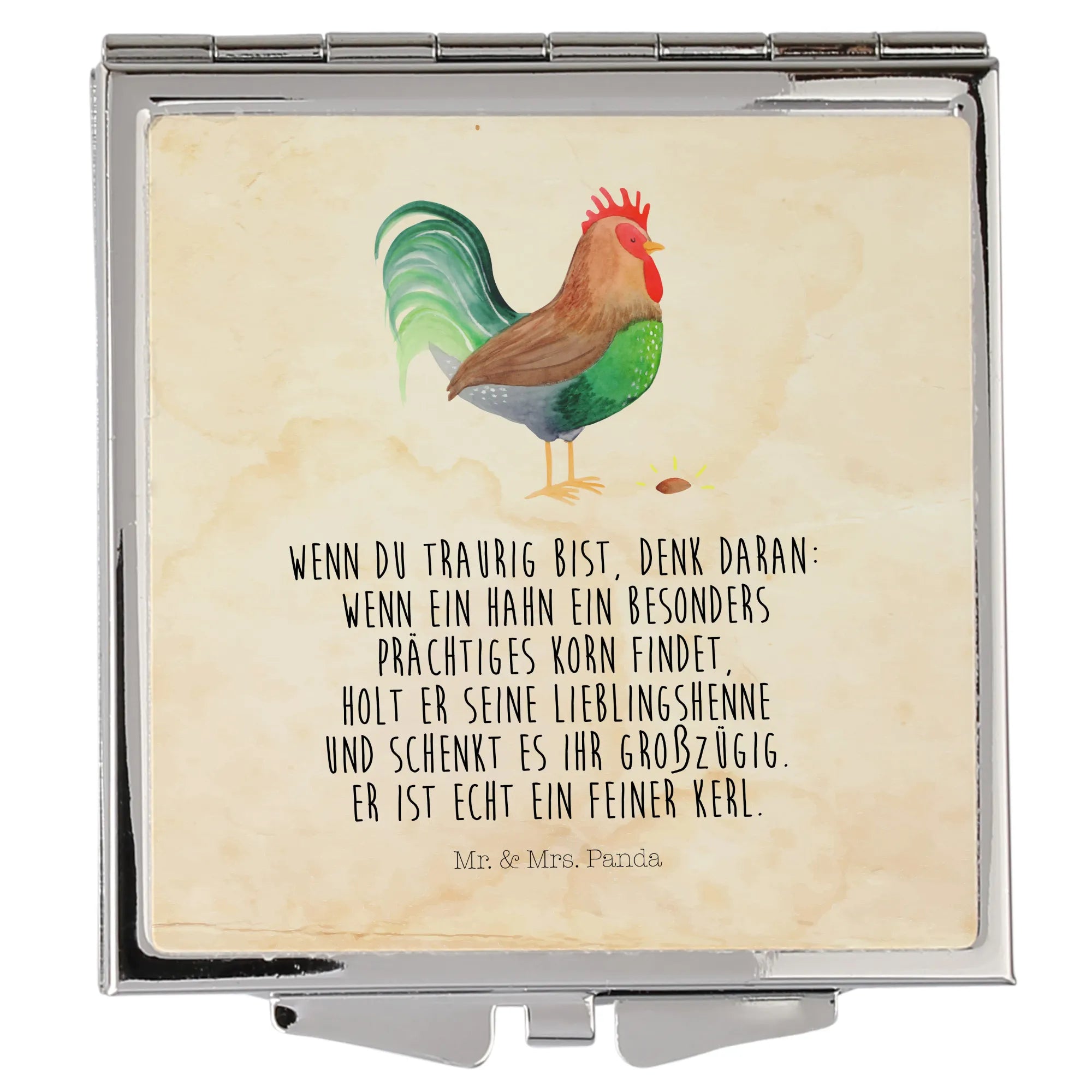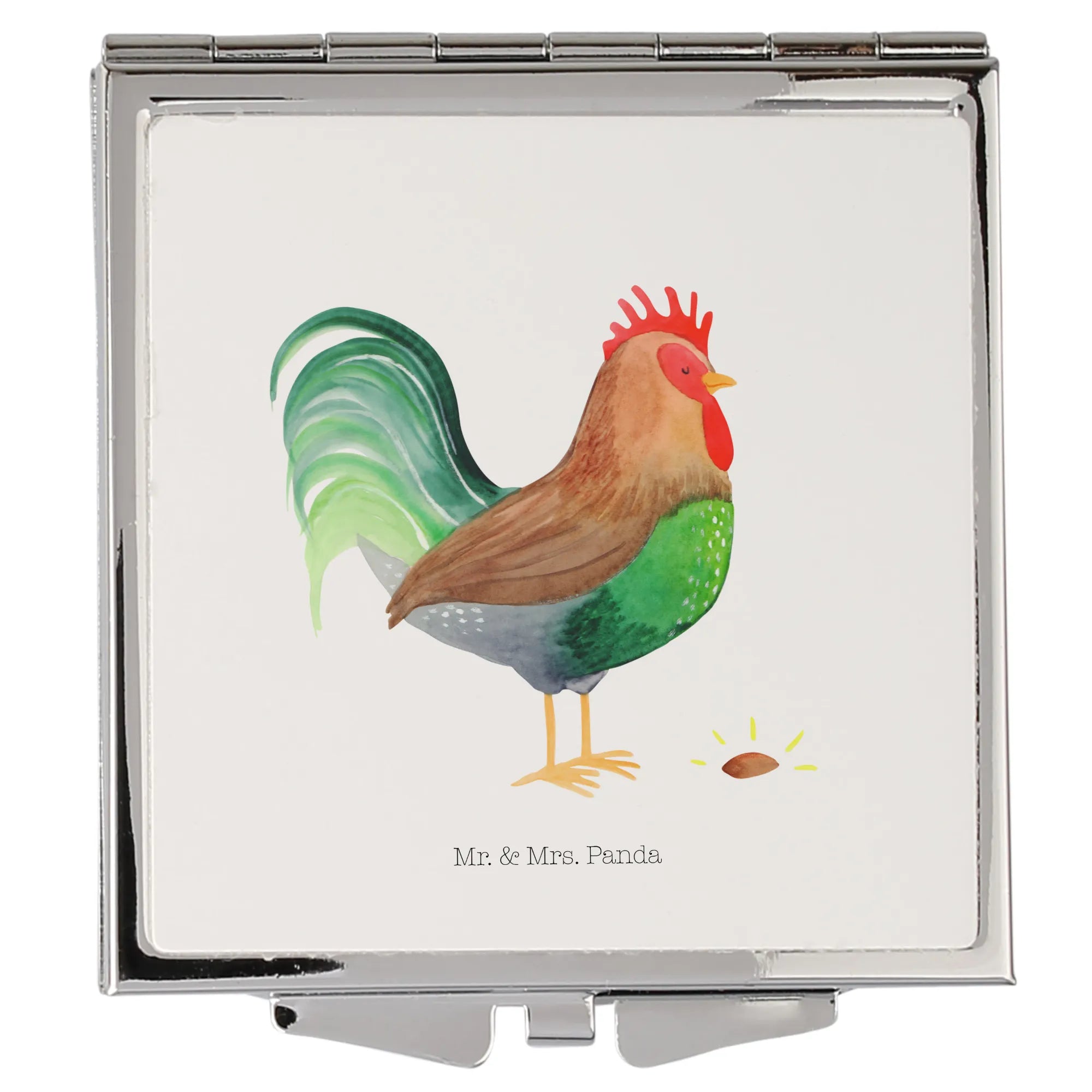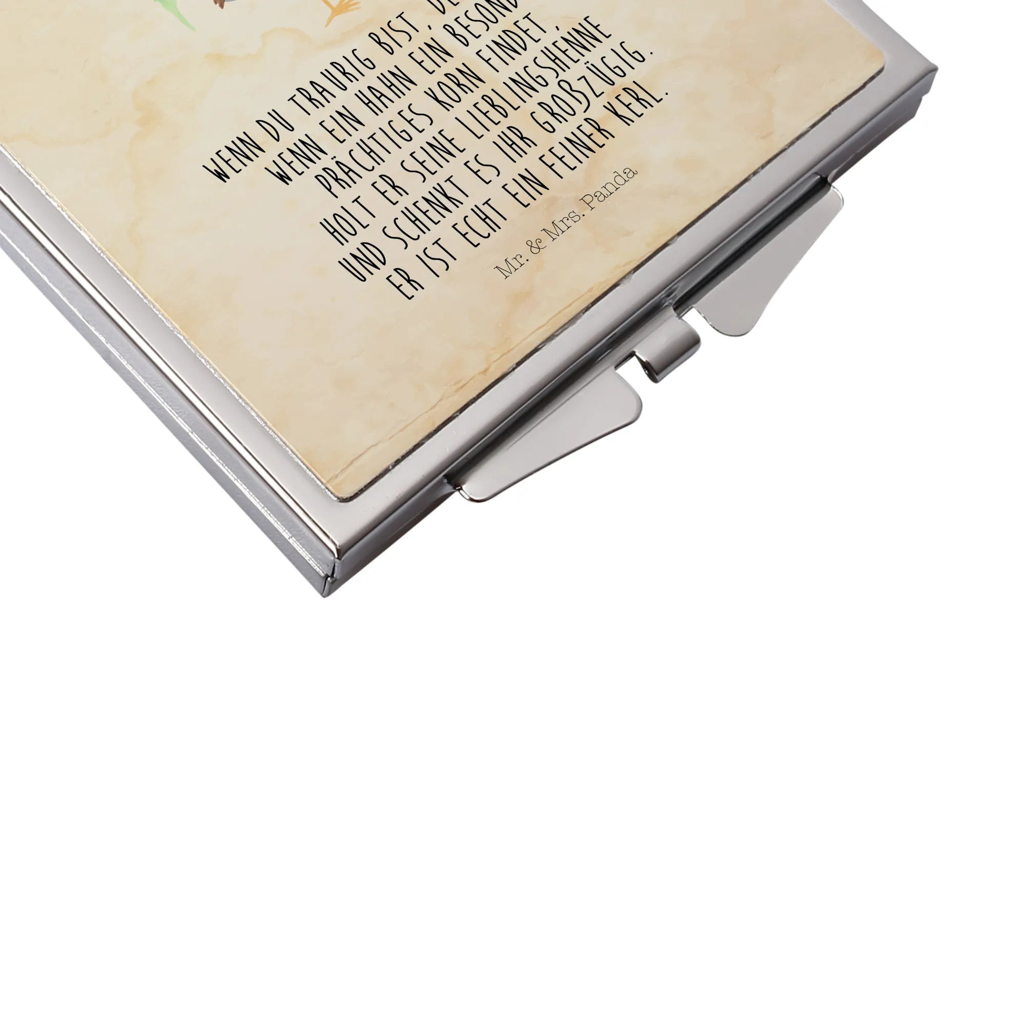 Handtaschenspiegel quadratisch Hahn mit Korn - mit Spruch - Weiß