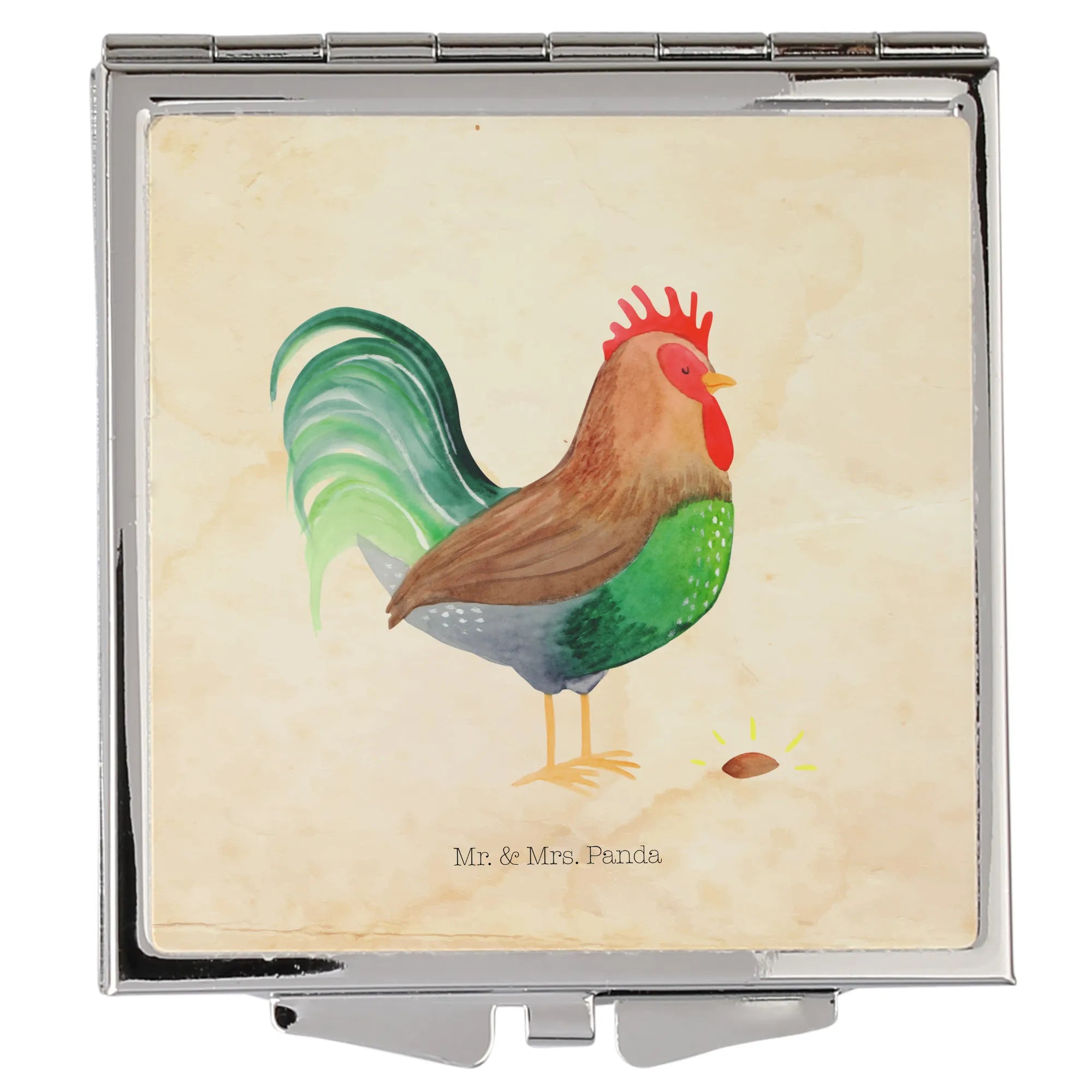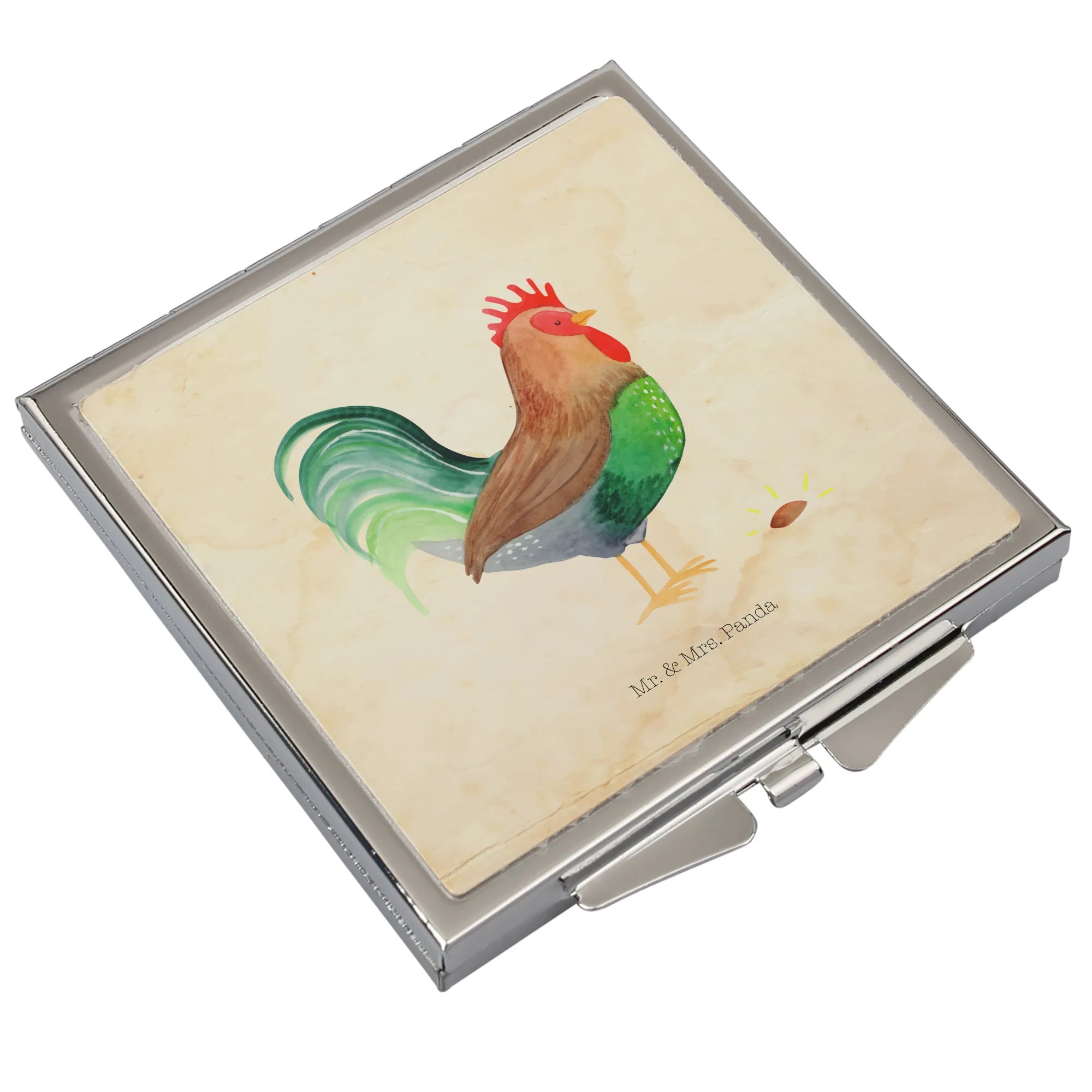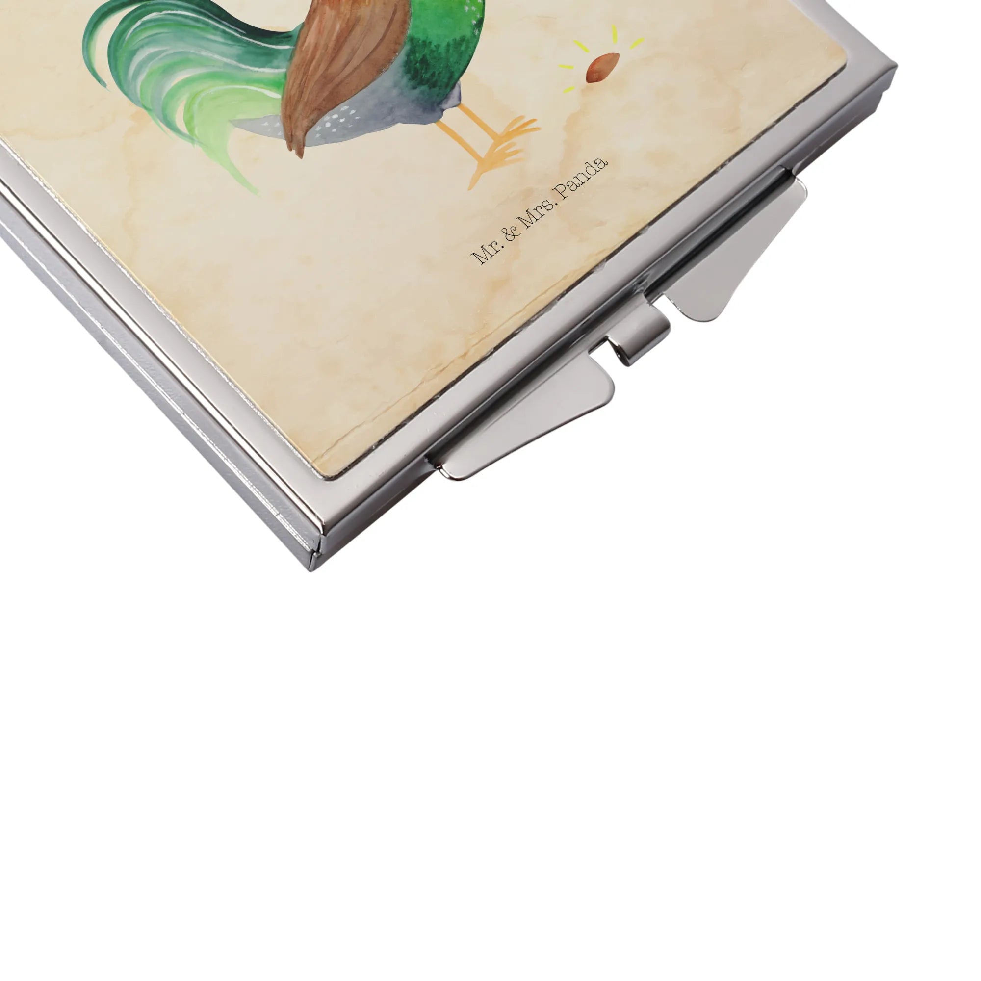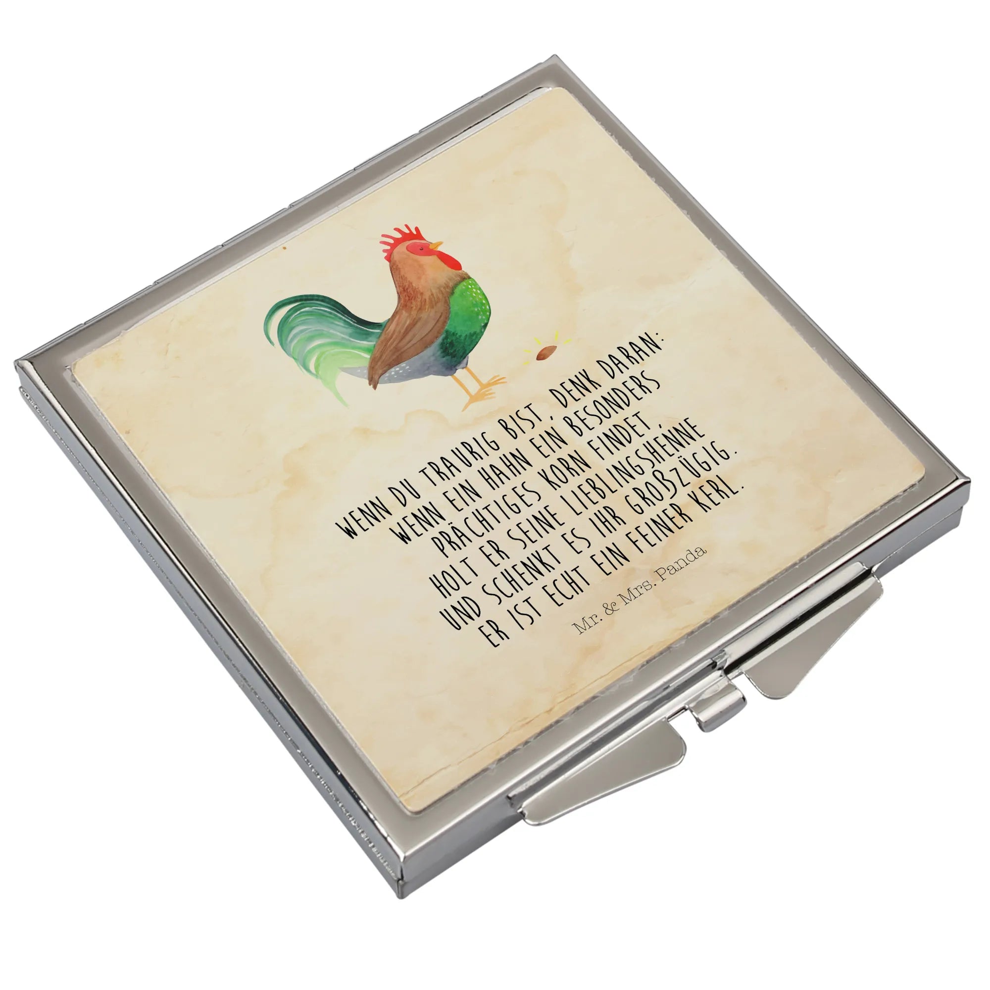 Handtaschenspiegel quadratisch Hahn mit Korn - mit Spruch - Weiß