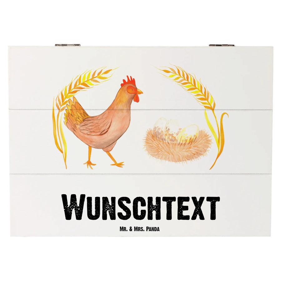 Personalisierte Holzkiste Huhn stolz - 25 x 18 cm - Weiß
