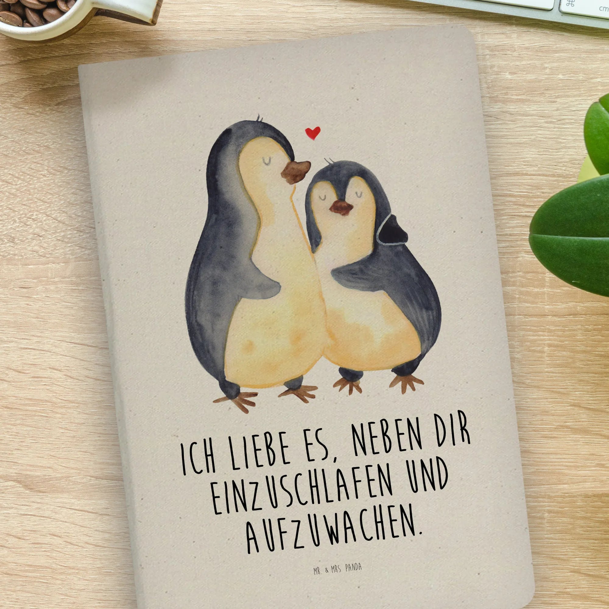 Das DIN A5 Baumwoll Notizbuch "Pinguine Einschlafen" von Mr. & Mrs. Panda ist das perfekte Geschenk für Verliebte und alle, die gerne ihre Gedanken und Erinnerungen festhalten möchten.
