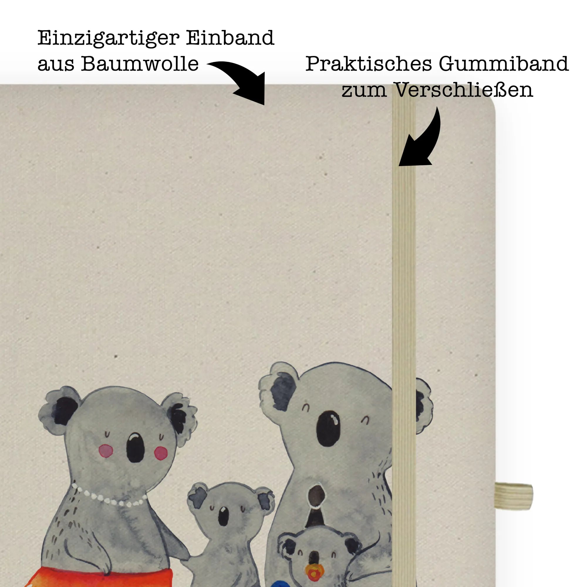 Das wunderschöne Notizbuch Hardcover ist mit echter, natürlicher Baumwolle überzogen, was ihm eine unvergleichlich edle und warme Haptik verleiht. Wenn du mit deinen Fingern über den Einband streichst, spürst du sofort die Qualität und die Liebe, die Mr. & Mrs. Panda in jedes Detail gesteckt haben. Das Motiv der Koala Familie zeigt eine fröhliche Gruppe, die mit liebevollen Accessoires wie einer Perlenkette und einem Partyhut ausgestattet ist. Ihr herzliches Lachen vermittelt ein tiefes Gefühl von Zugehörigkeit und Wärme – genau das, was Familie ausmacht. ❤️