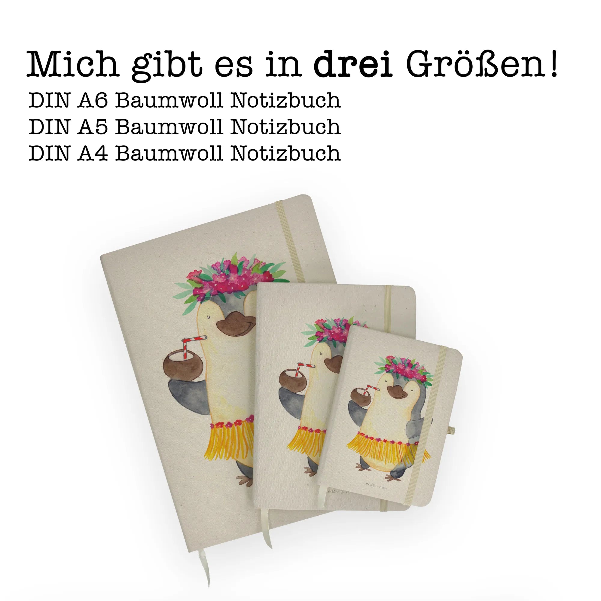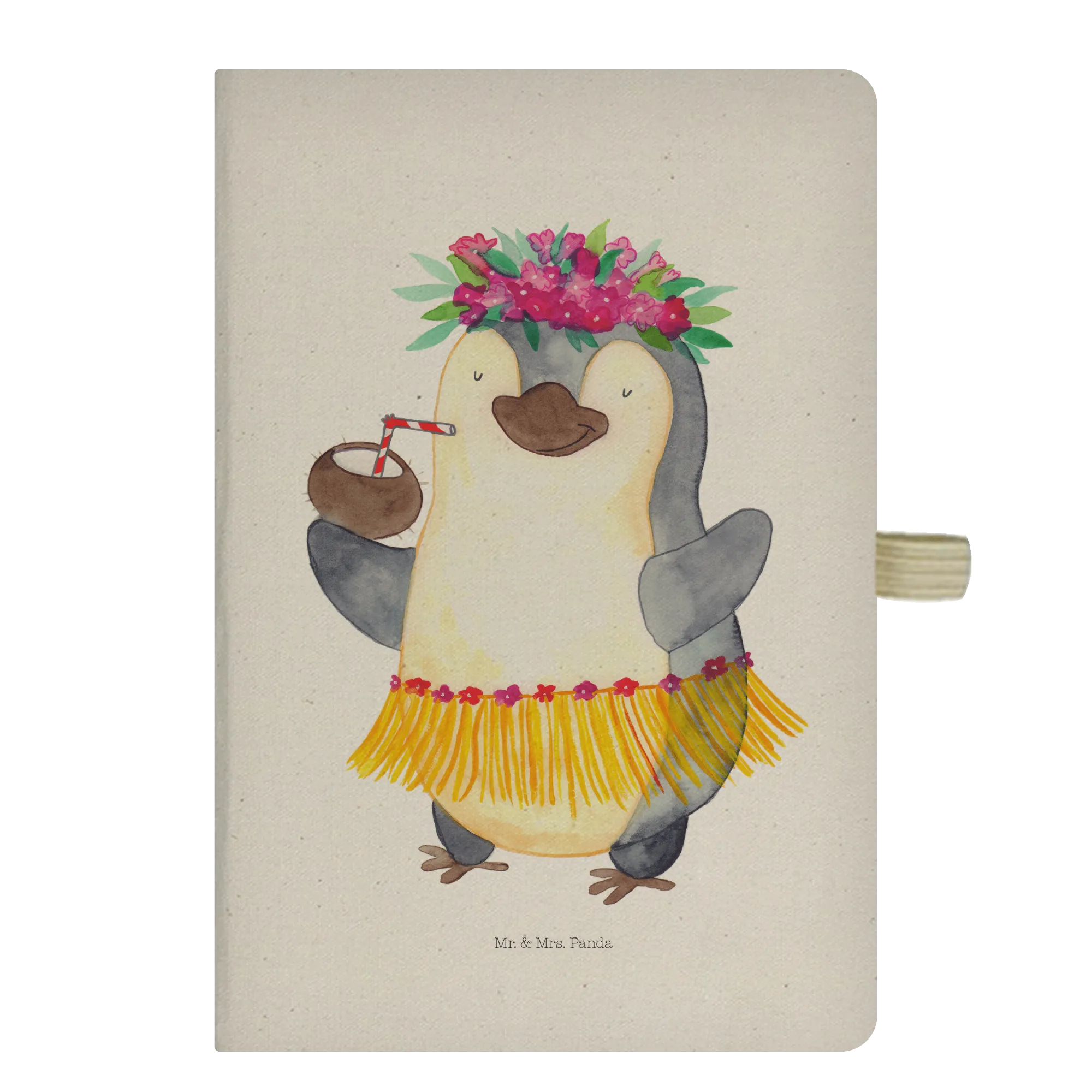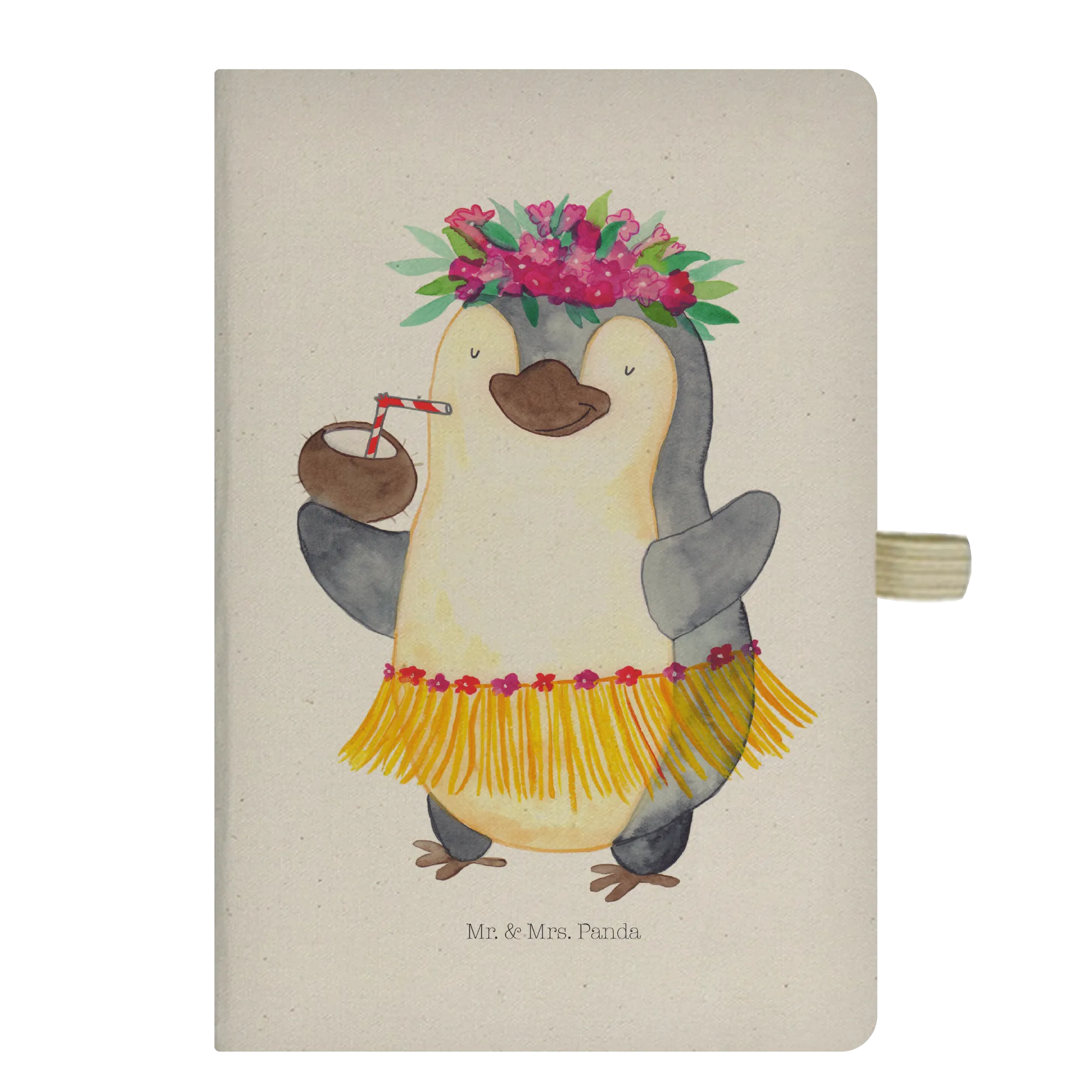 Stell dir vor, du öffnest deine Tasche und ein kleiner, tanzender Pinguin mit einem Baströckchen und einer Kokosnuss in der Hand strahlt dir entgegen. Genau dieses Gefühl von purer Lebensfreude und Unbeschwertheit bringt das DIN A4 Baumwoll Notizbuch von Mr. & Mrs. Panda direkt in deinen Alltag. 🐧🥥