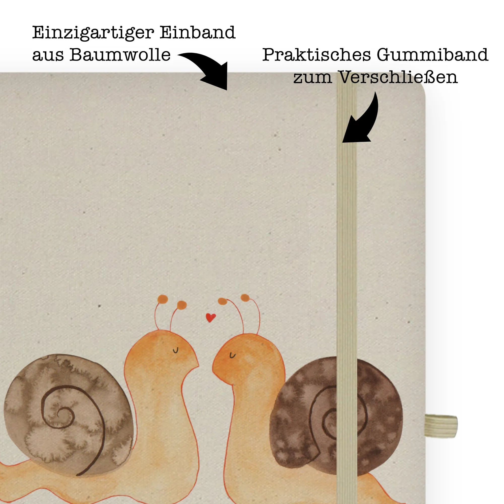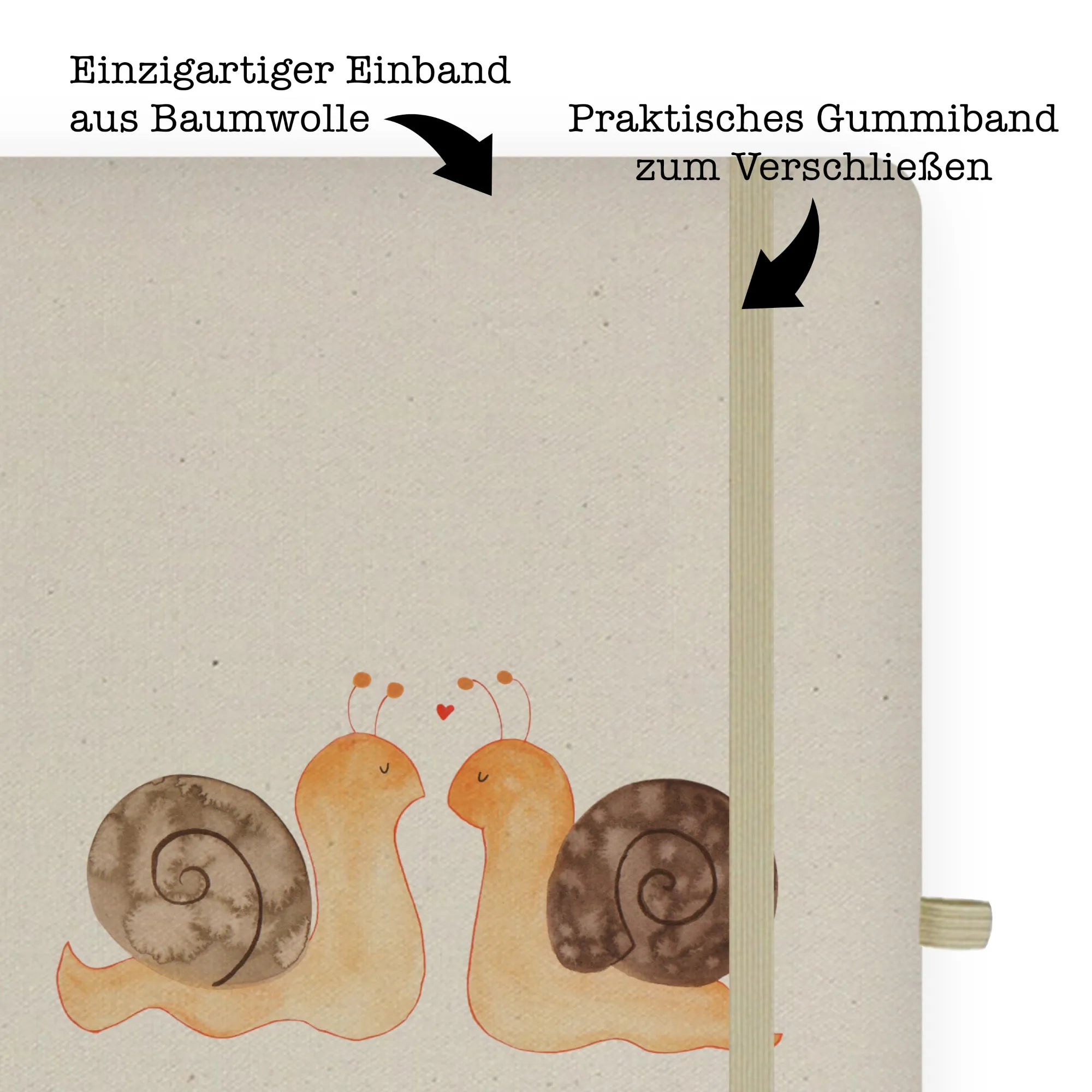 Das DIN A6 Baumwoll Notizbuch "Schnecken Liebe" aus der liebevollen Kollektion von Mr. & Mrs. Panda ist das perfekte Geschenk für jeden, der Liebe in all ihren Formen feiern möchte.