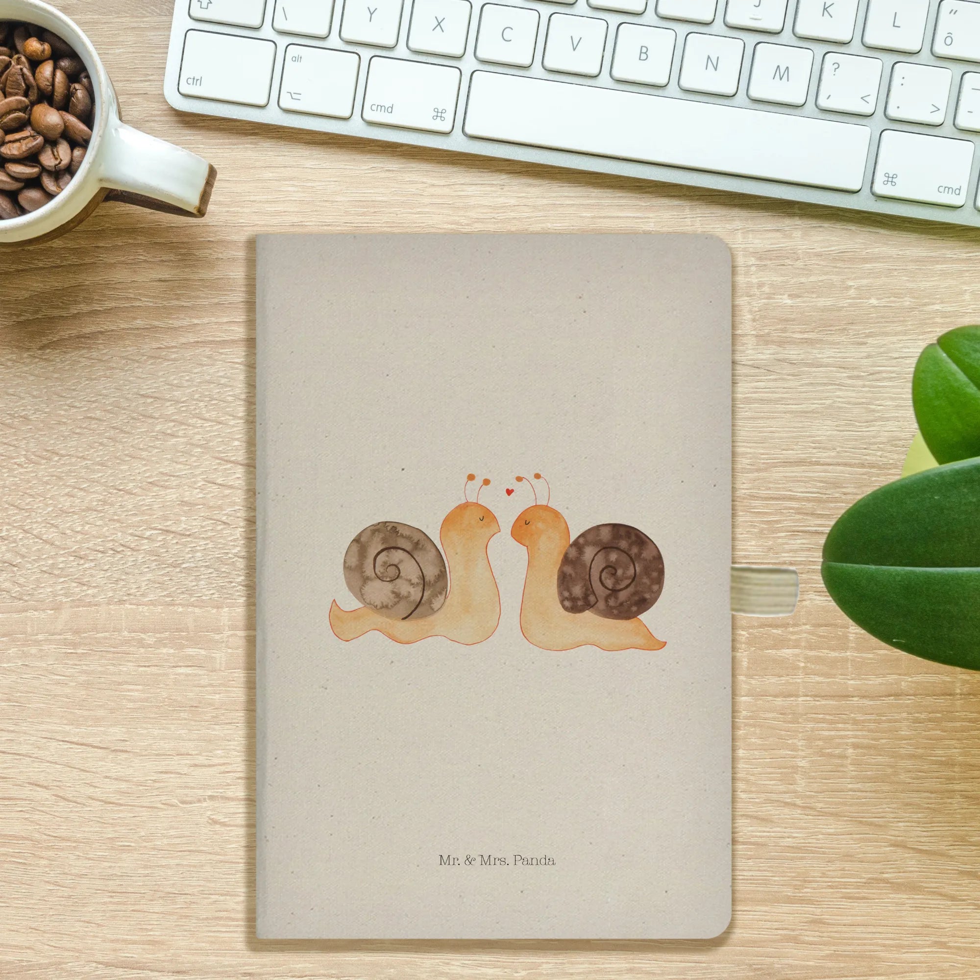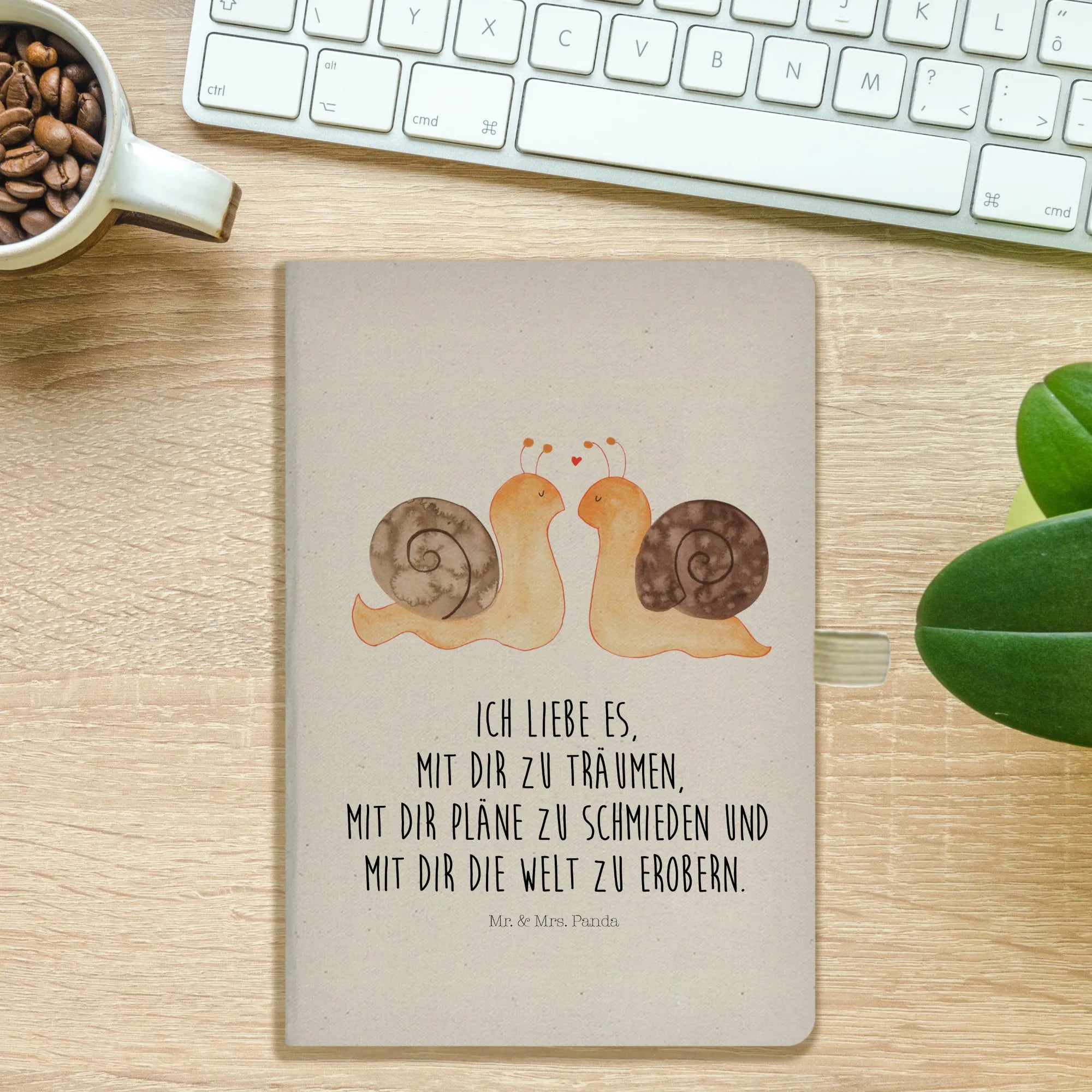 Verschenke ein Stück Zuneigung, das begleitet, inspiriert und Freude schenkt – das DIN A4 Baumwoll Notizbuch „Schnecken Liebe“ von Mr. & Mrs. Panda.