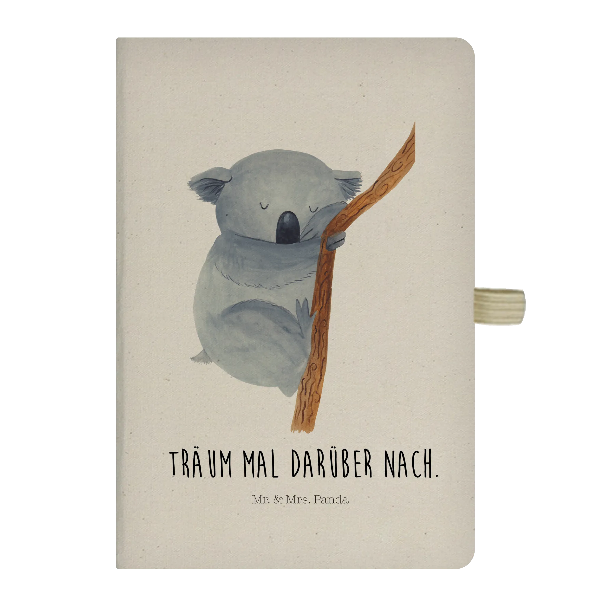 Das liebevoll gestaltete DIN A5 Baumwoll Notizbuch mit dem süßen Koalabär-Motiv von Mr. & Mrs. Panda ist das perfekte Geschenk für alle, die ihre Gedanken und Ideen festhalten möchten oder einfach nur gerne kreativ sind! Mit seinem charmanten Design und dem Motto "Träum mal darüber nach" zaubert es garantiert ein Lächeln auf jedes Gesicht. Dieses Notizbuch ist nicht nur ein praktisches Schreibbuch, sondern auch ein Accessoire, das dein Zimmer farbenfroh und lebendig macht. Der niedliche Koala, der sanft an einem Ast hängt und von Eukalyptusblättern träumt, lädt dich dazu ein, deine eigenen Träume und Ideen festzuhalten.