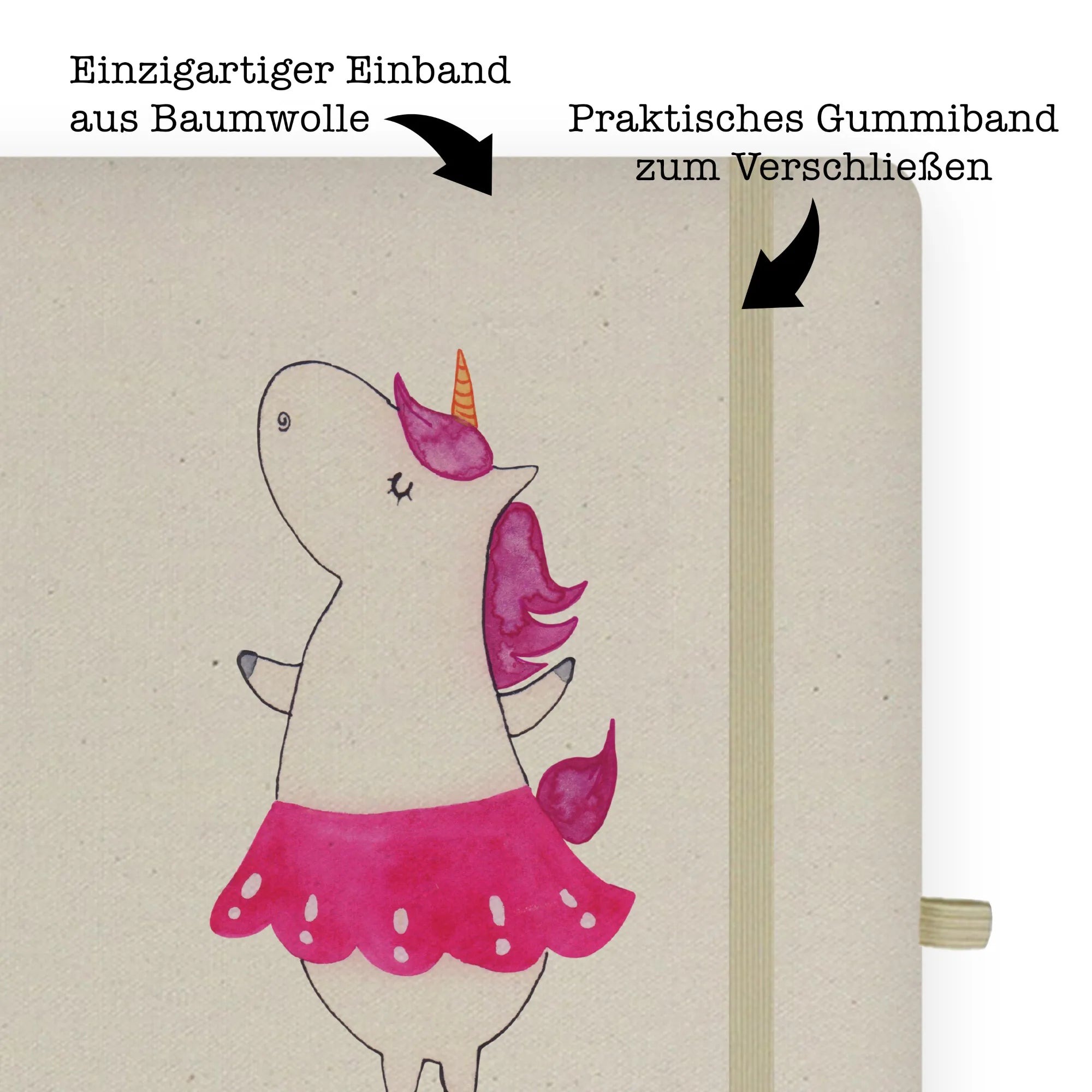 Das DIN A5 Baumwoll Notizbuch "Einhorn Ballerina" aus der Einhorn - Kollektion von Mr. & Mrs. Panda ist das perfekte Geschenk für alle, die die Lebensfreude und den Spaß am Tanzen erleben möchten! Ob für Geburtstagsfeiern, besondere Anlässe oder einfach nur aus Liebe zur Poesie und Kreativität - dieses Notizbuch sorgt für leuchtende Augen.