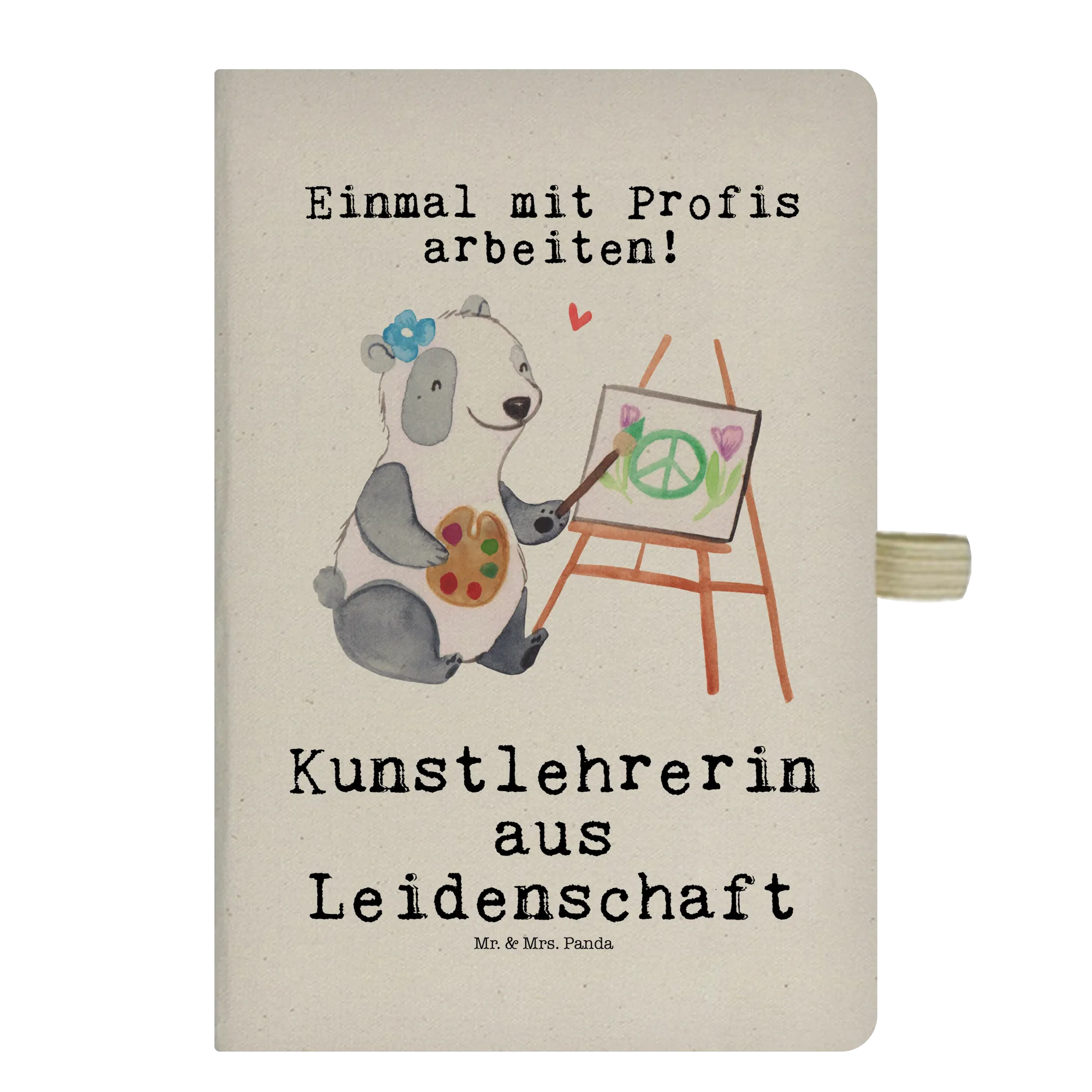 Das Notizbuch gehört zur Berufe-Kollektion von Mr. & Mrs. Panda und ist so konzipiert, dass es zur Persönlichkeit jeder Kunstlehrerin passt.