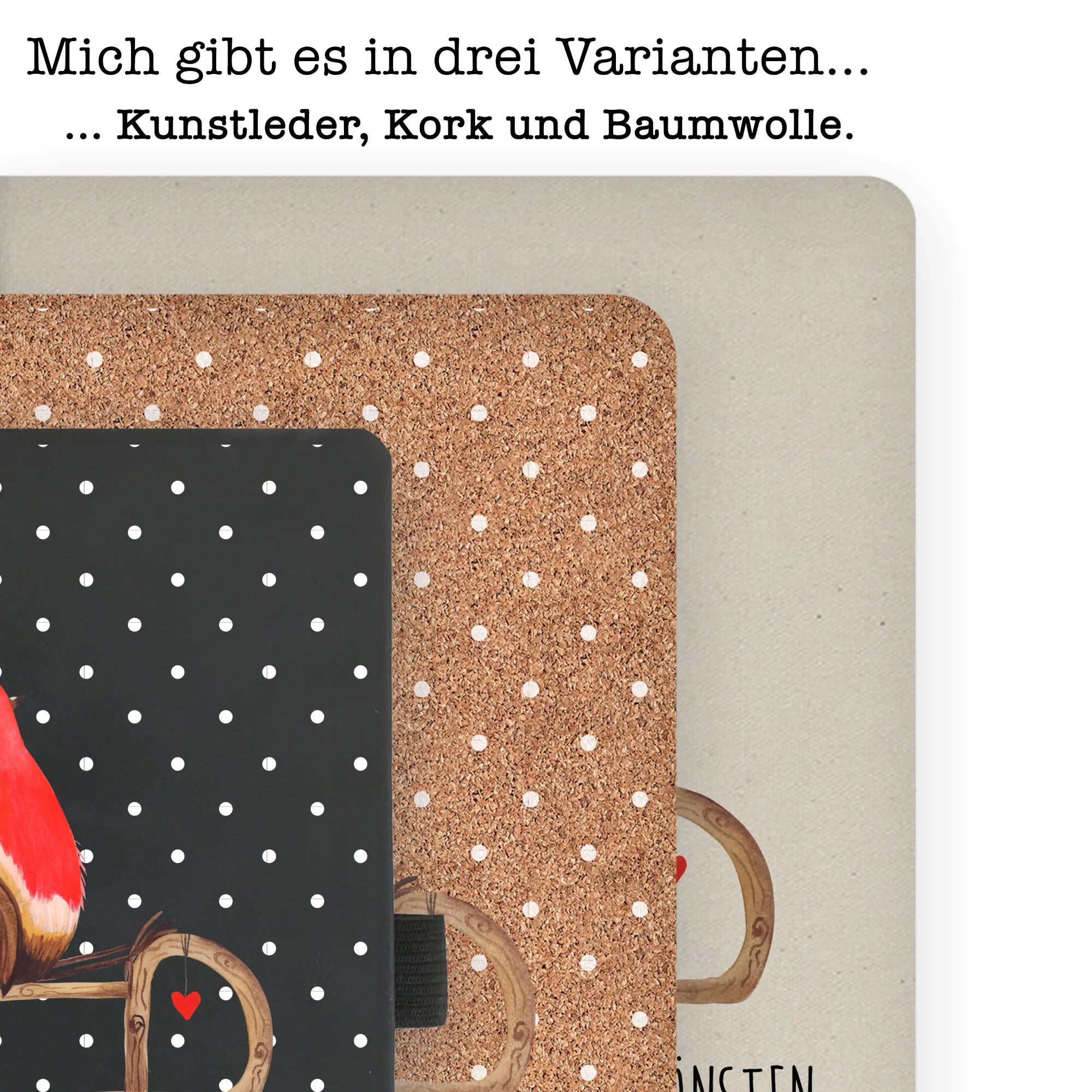 Das DIN A5 Baumwoll Notizbuch mit dem zauberhaften Motiv des Rotkehlchens auf einem Schlitten aus der Winter Kollektion von Mr. & Mrs. Panda ist das perfekte Geschenk für alle, die die winterliche Freude und den Zauber der Weihnachtszeit lieben! Egal, ob du ein Notizbuch für deine persönlichen Gedanken, Skizzen oder einfach für kreative Notizen suchst, dieses wunderschöne und edel designte Notizbuch ist genau das Richtige.