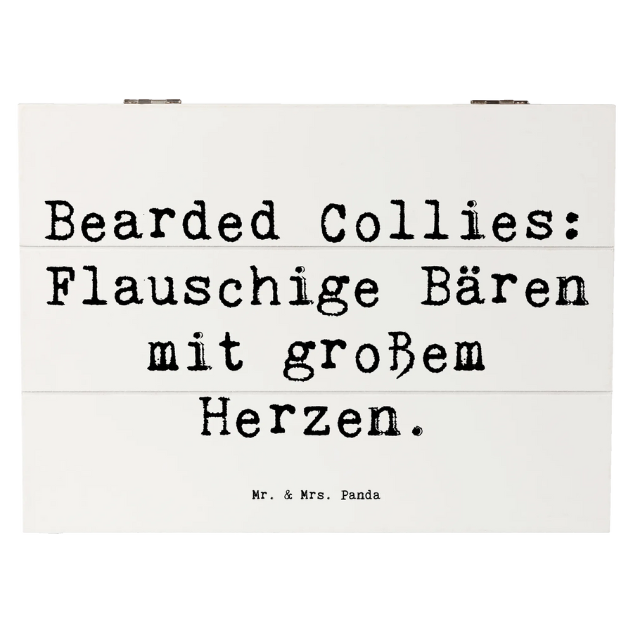 Die Holzkiste von Mr. & Mrs. Panda ist mehr als nur eine gewöhnliche Kiste – sie ist ein Ort, an dem Erinnerungen aufbewahrt werden! Mit einem bezaubernden Motiv des Bearded Collie und einem liebevollen Spruch "Bearded Collies: Flauschige Bären mit großem Herzen." ist diese Sammlung ein Traum für jeden Hundeliebhaber.