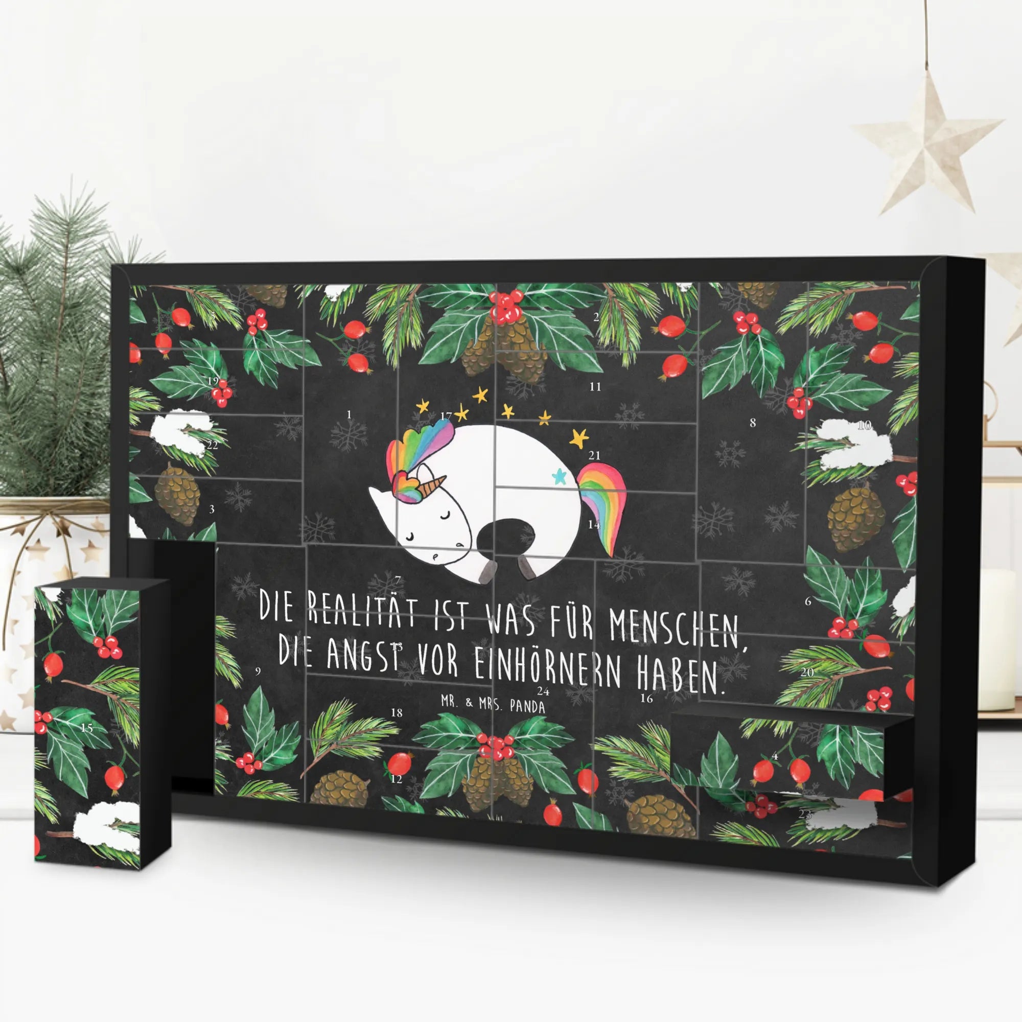 Der Befüllbare Adventskalender Einhorn Nacht von Mr. & Mrs. Panda ist das perfekte Geschenk für alle, die die zauberhafte Welt der Einhörner lieben! Dieser Adventskalender ist nicht nur ein wunderbares Dekorationsstück, sondern auch eine aufregende Möglichkeit, die Vorfreude auf Weihnachten zu erleben. Die liebevolle Zeichnung von Mrs. Panda zeigt ein niedliches, schlafendes Einhorn, das perfekt zu träumenden Menschen passt. Mit dem Slogan „Die Realität ist was für Menschen, die Angst vor Einhörnern haben“ trifft dieser Adventskalender genau den richtigen Ton für alle, die sich in die magische Welt der Einhörner flüchten möchten.