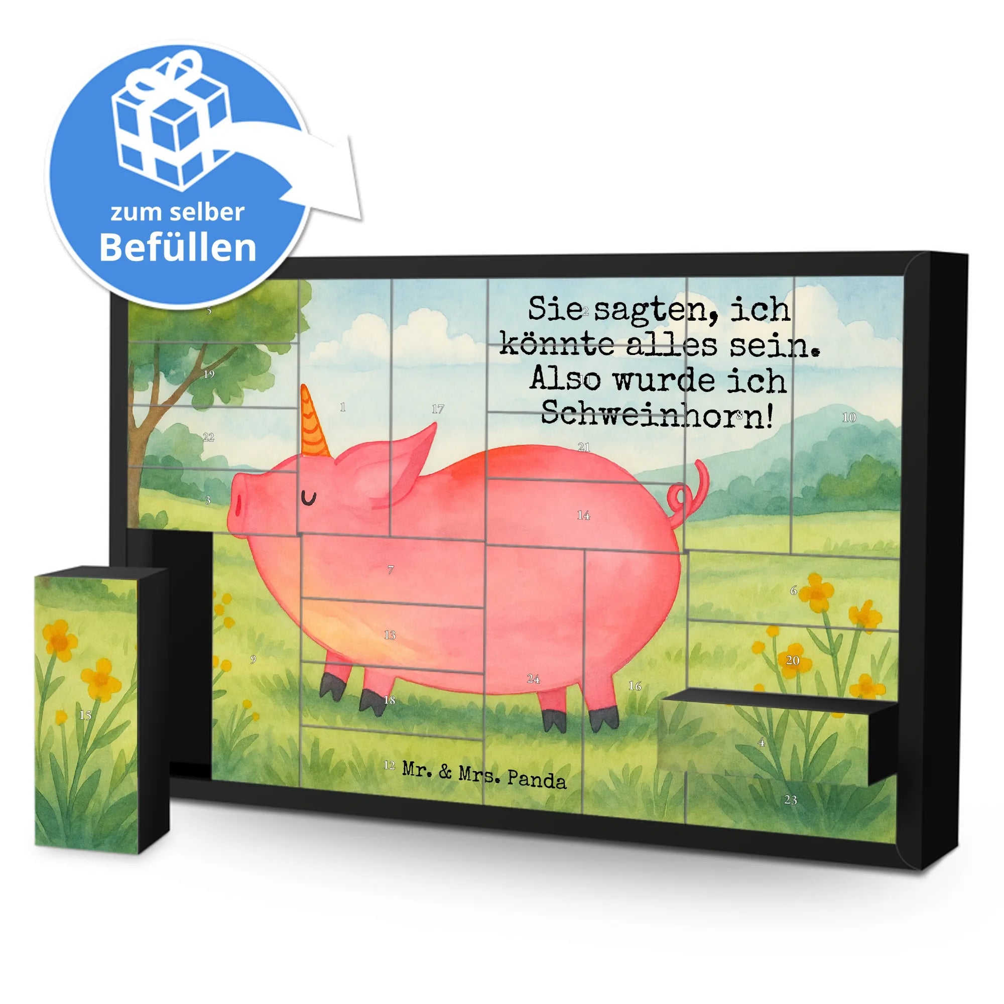 Adventskalender Zum Befüllen Einhorn Schwein Design - mit Spruch