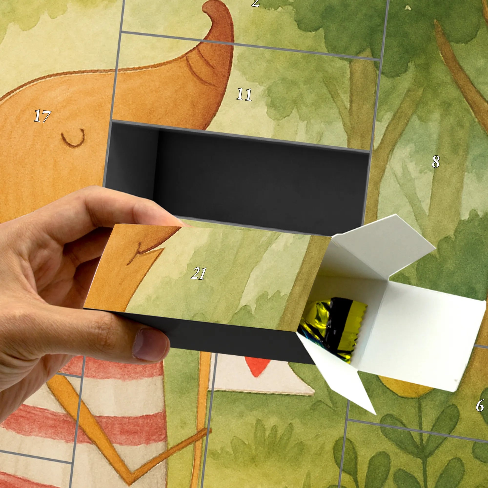 Praktisch und liebevoll gestaltet: Der Kalender kommt mit 24 Schachteln zum Selbstbefüllen und einer Aufstellvorrichtung, sodass er stabil präsentiert werden kann. Bitte beachten: Der Adventskalender wird ohne Füllung geliefert und ist nicht personalisierbar.