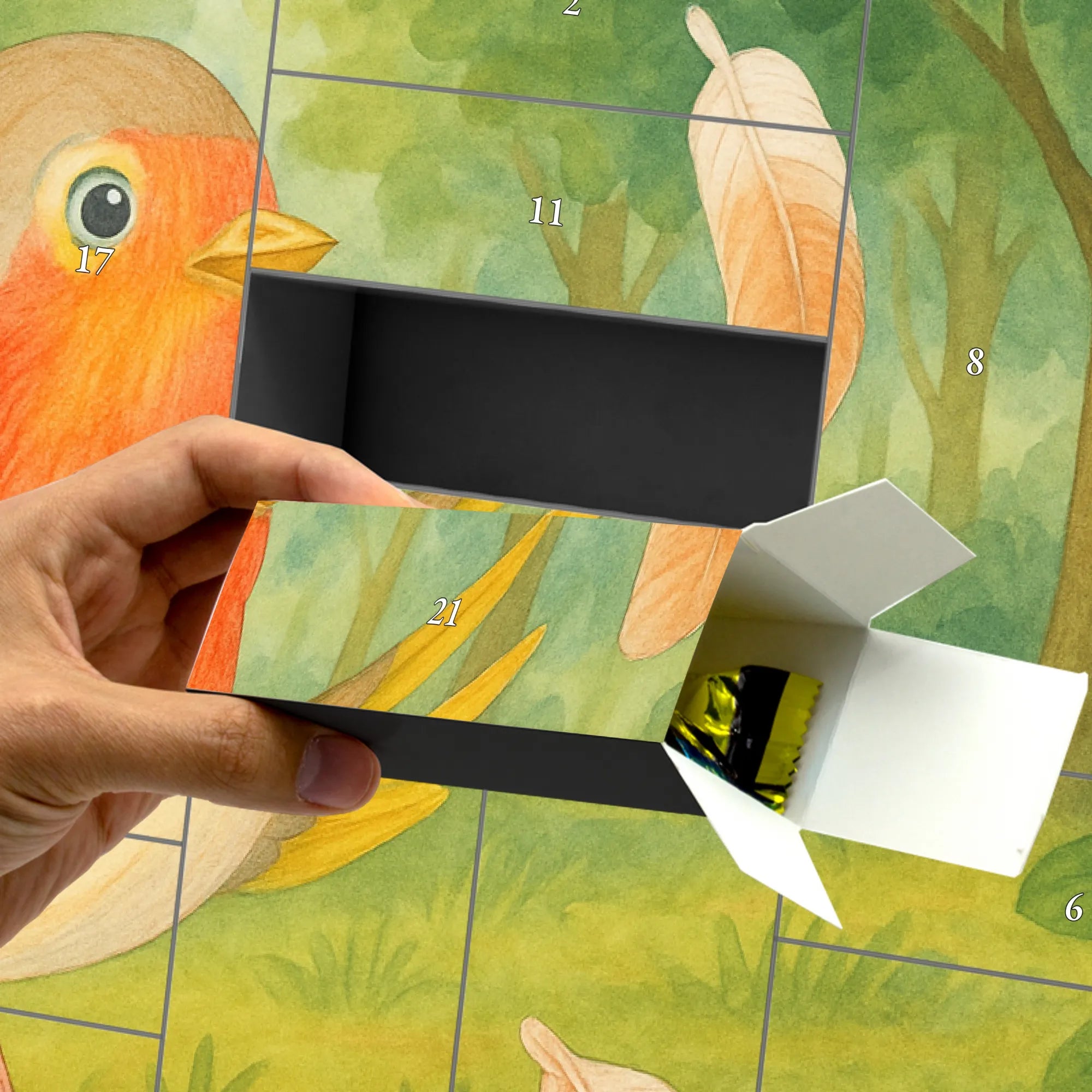 Perfekt zum Selbstbefüllen: Mit 24 Schachteln kannst du jeden Tag individuell füllen – ob Schokolade, kleine Botschaften, Gutscheine oder kreative DIY-Überraschungen. Ideal als Adventskalender zum selbst befüllen für Freunde, Partner, Familie, Kolleginnen oder als charmantes Geschenk für Vogel- und Tierliebhaber.