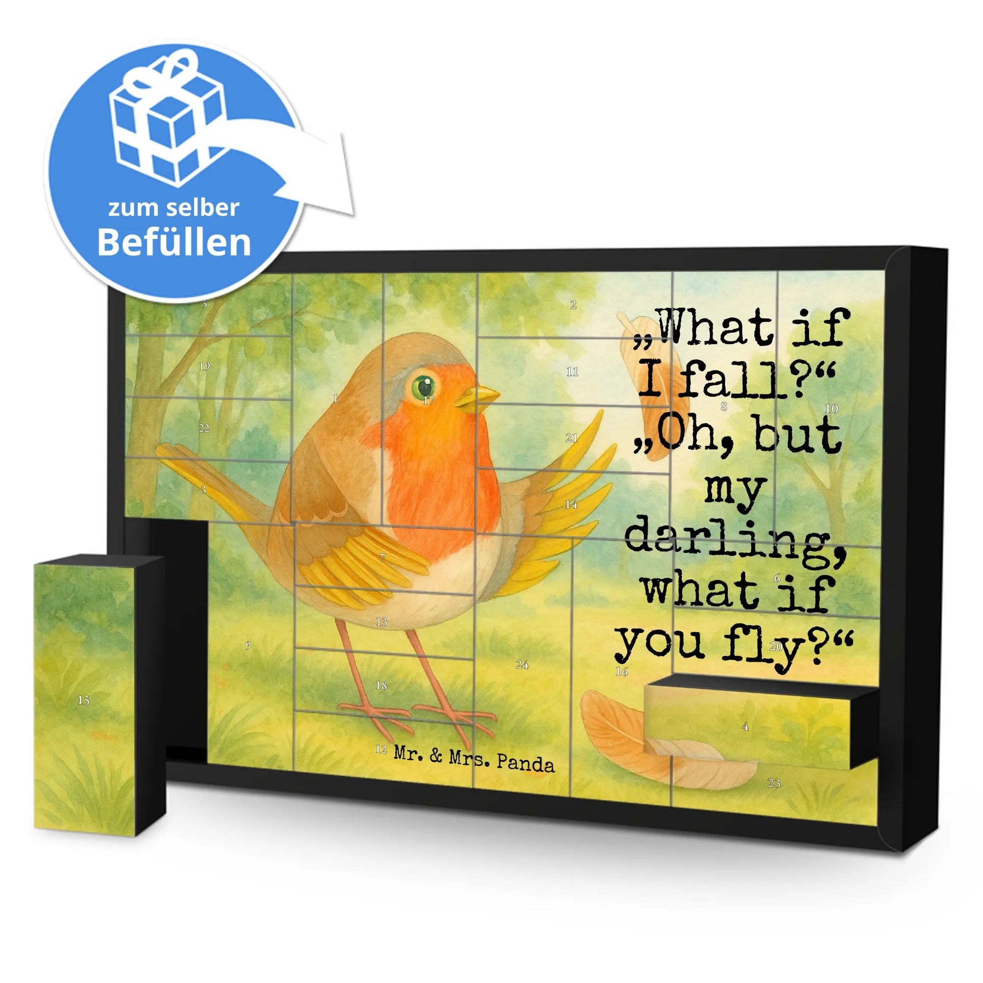 Befüllbarer Adventskalender Rotkehlchen Federn Design - mit Spruch