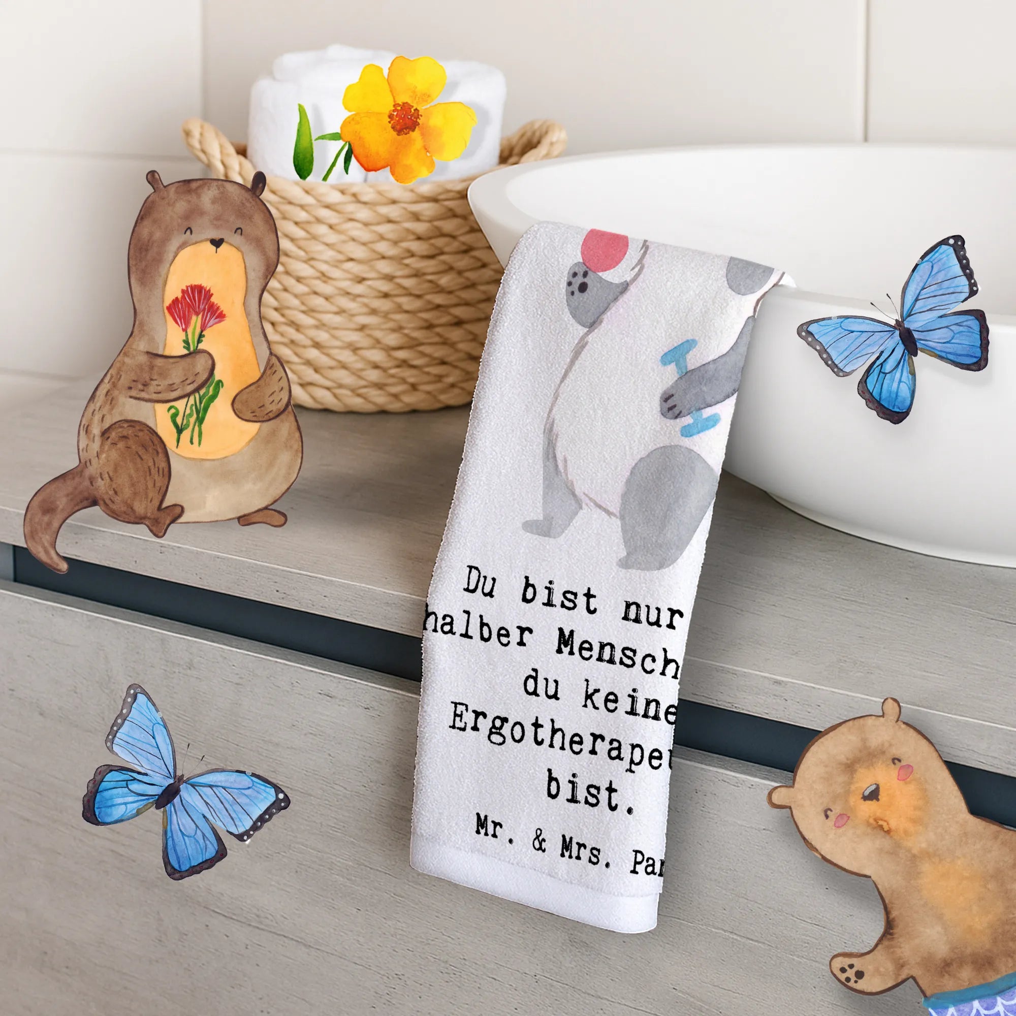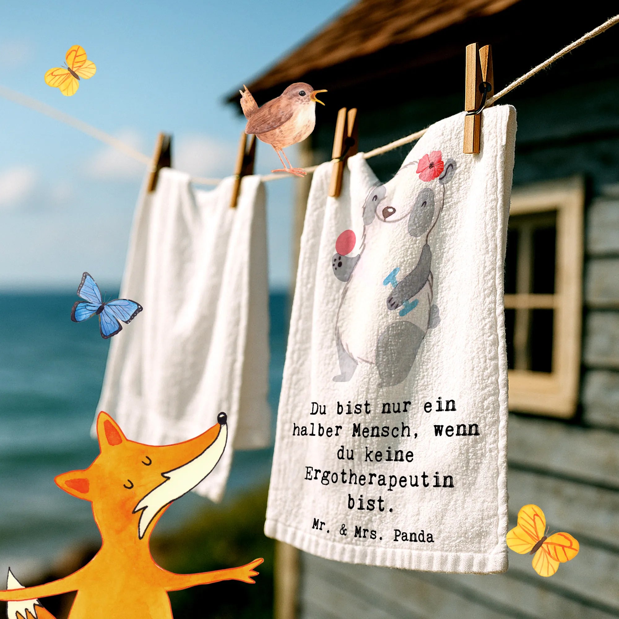 Entdecke das perfekte Geschenk für alle Ergotherapeutinnen in deinem Leben! Unser wunderschönes Gästehandtuch "Ergotherapeutin mit Herz" aus der liebevollen Kollektion Berufe von Mr. & Mrs. Panda ist mehr als nur ein Handtuch – es ist ein Ausdruck von Wertschätzung und Dankbarkeit. Mit der charmanten Aufschrift "Du bist nur ein halber Mensch, wenn du keine Ergotherapeutin bist" wird jede Ergotherapeutin schmunzeln und sich in ihrer Berufung bestärkt fühlen.
