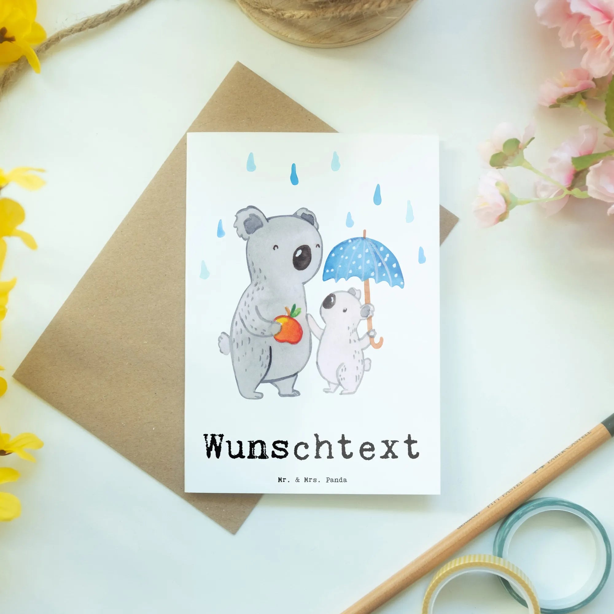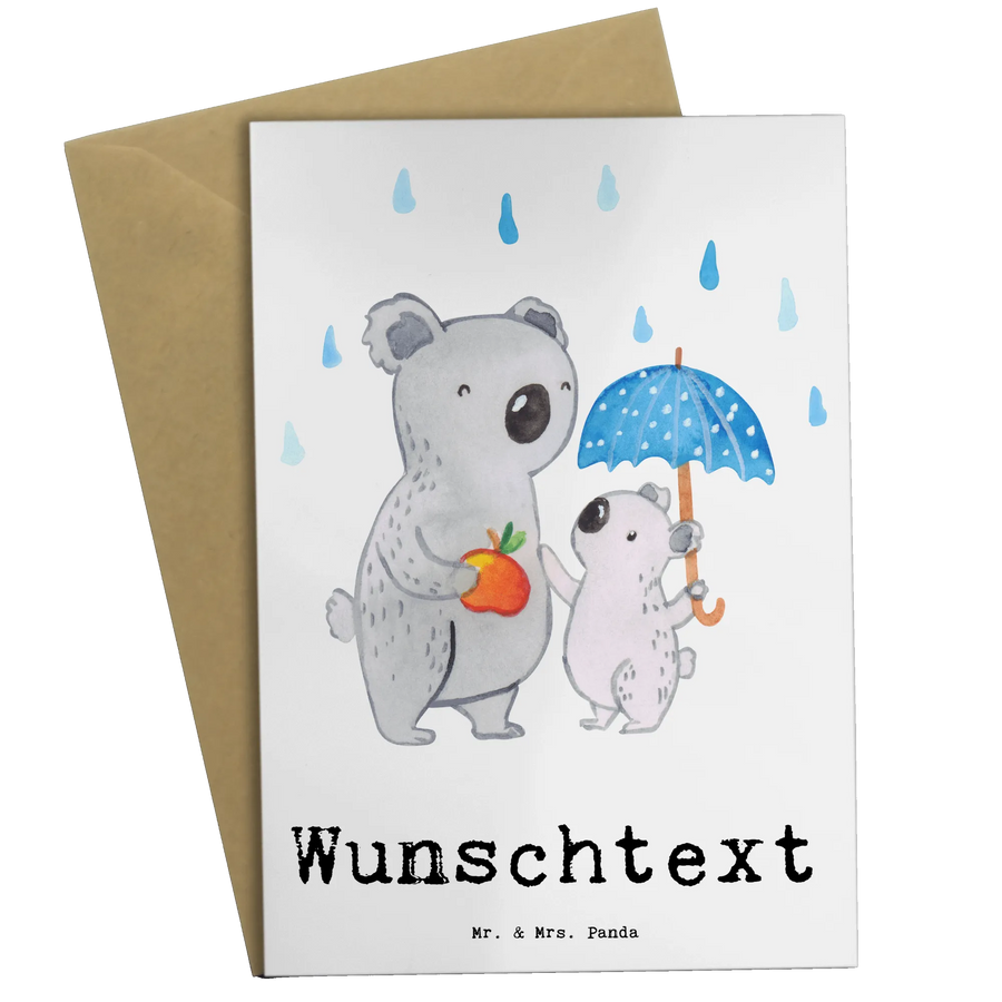 Das süße Motiv zeigt einen liebevollen Koala, der sich um ein kleines Koala-Kind kümmert, zusammen unter einem Regenschirm. Ein toller Blickfang! Diese Karte eignet sich hervorragend für verschiedene Anlässe wie Geburtstage, Abschiede, Jubiläen oder einfach nur, um "Danke" zu sagen.