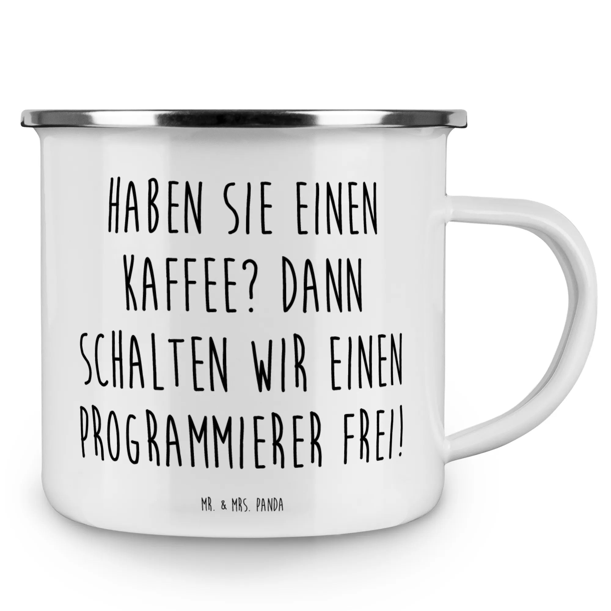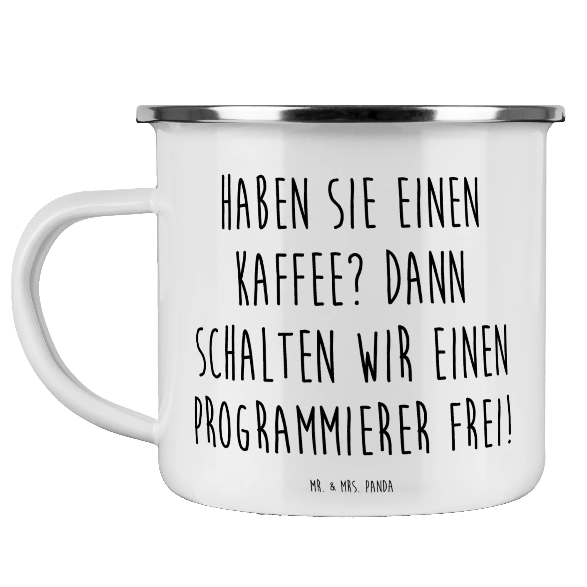 Entdecke die wundervolle Camping Emaille Tasse mit dem einzigartigen Motto 'Haben Sie einen Kaffee? Dann schalten wir einen Programmierer frei!' von Mr. & Mrs. Panda. Diese Tasse ist nicht nur ein praktischer Begleiter bei Deinen Outdoor-Abenteuern wie Camping, Wandern oder Picknicken, sondern auch ein perfektes Geschenk für alle Programmierer und IT-Profis.