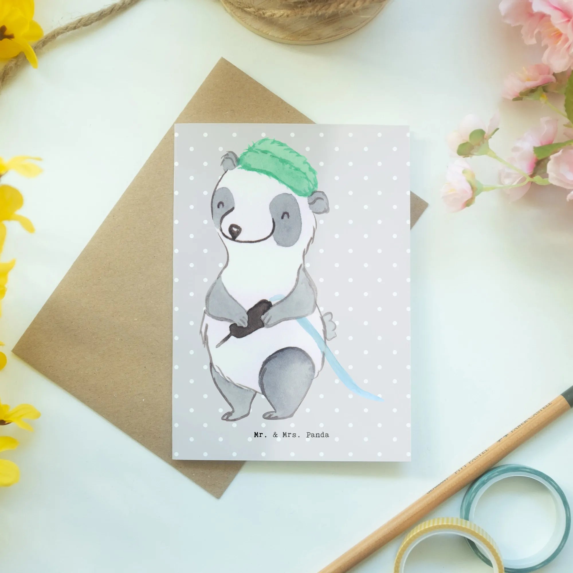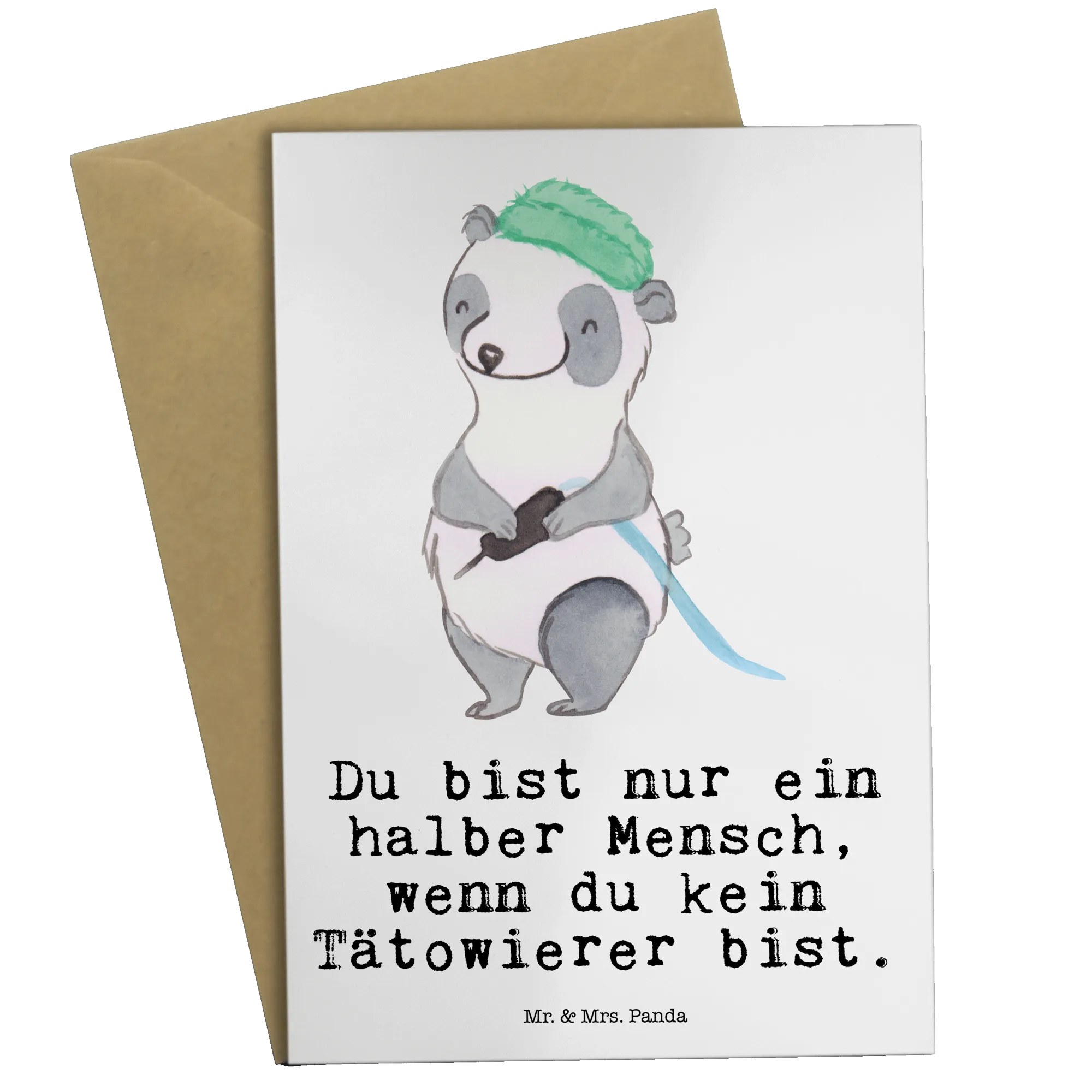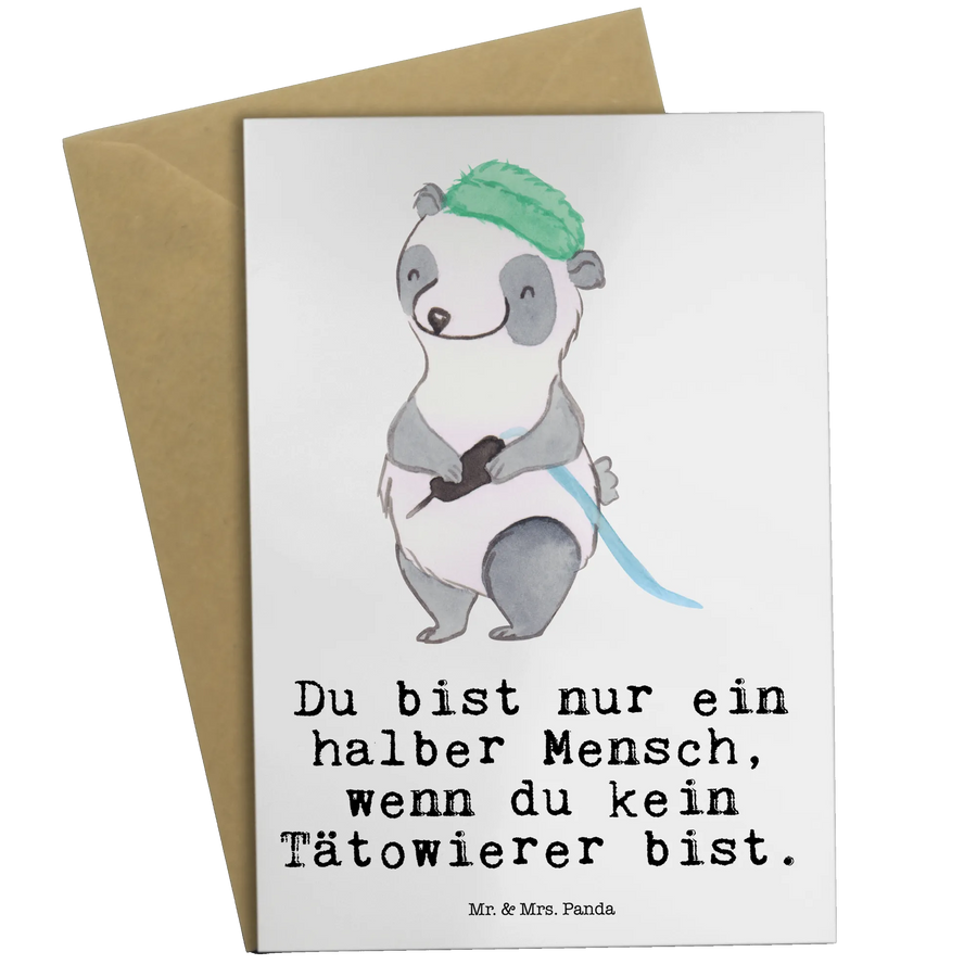 Entdecke die bezaubernde Grußkarte "Tätowierer mit Herz" von Mr. & Mrs. Panda! Diese wunderschöne und einzigartige Grußkarte ist ideal für all jene, die ihre Wertschätzung für einen Tätowierer ausdrücken möchten.