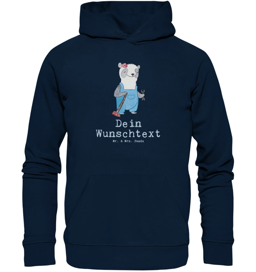 Er bietet den ganzen Tag Komfort, egal ob bei der Wohnungsabnahme, kleinen Reparaturen oder der Schlüsselübergabe. Zudem kannst du ihn mit deinem Wunschtext oder Wunschnamen personalisieren – ein ganz persönliches Geschenk, das garantiert für Freude sorgt! Mit dem liebevollen Motiv, einer süßen Pandadame, die stolz ihren Besen schwingt, wird dieser Hoodie zum Blickfang.