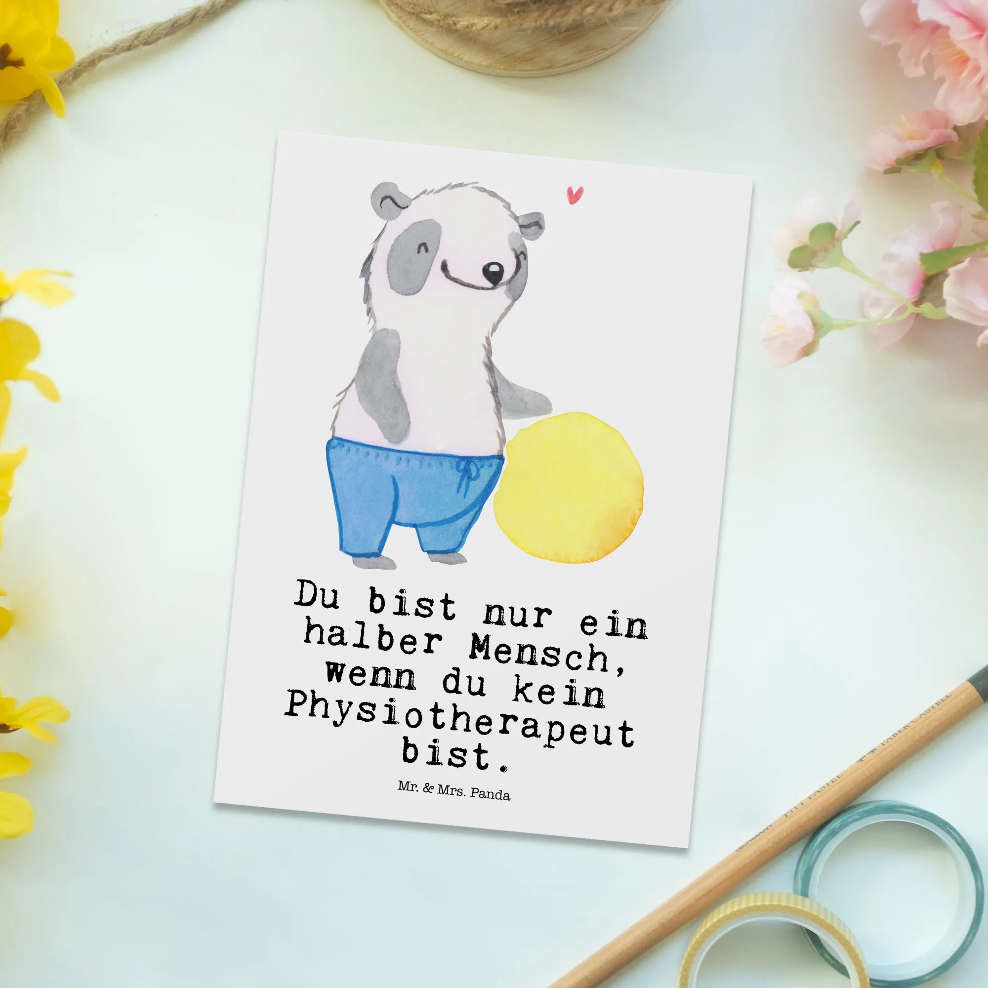 Die Postkarte 'Physiotherapeut mit Herz' aus der liebevollen Berufe Kollektion von Mr. & Mrs. Panda ist das perfekte Geschenk für alle Physiotherapeuten und Physiotherapeutinnen.