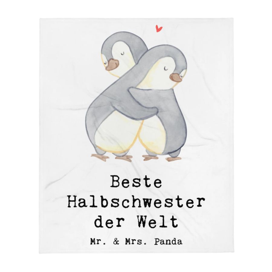 Kuscheldecke Pinguin Beste Halbschwester der Welt - Weiß