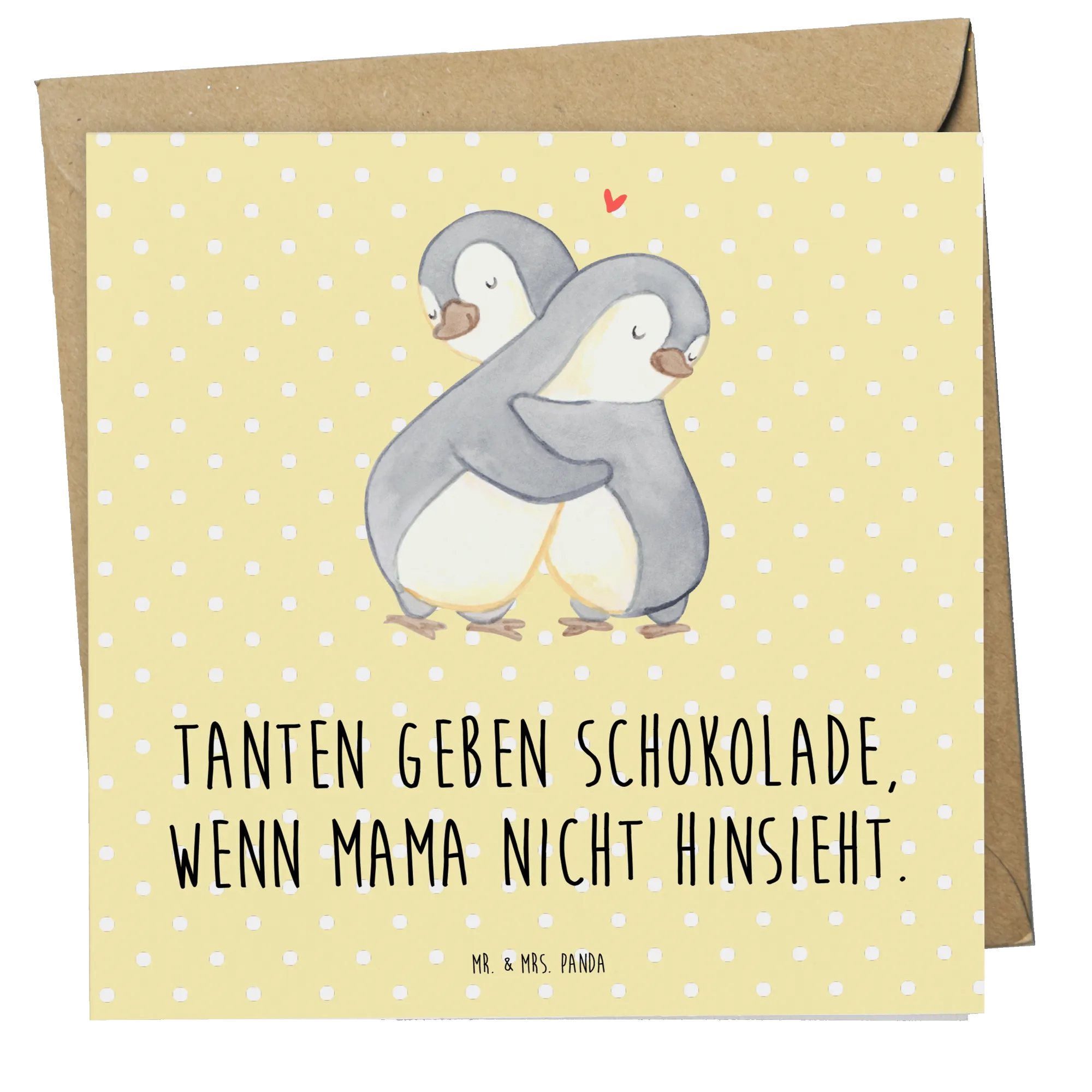Der liebevolle Spruch "Tanten geben Schokolade, wenn Mama nicht hinsieht." begleitet das wunderschöne Motiv und bringt die besondere Beziehung zwischen Tanten und ihren Nichten oder Neffen zum Ausdruck. Tanten sind oft wie zweite Mütter, die mit ihrem Charme, ihrer Lebensfreude und ihrem Verständnis für die kleinen Freuden des Lebens glänzen. Diese Karte feiert genau diese spezielle Rolle in der Familie und ist perfekt geeignet, um die Verbundenheit zu zeigen.