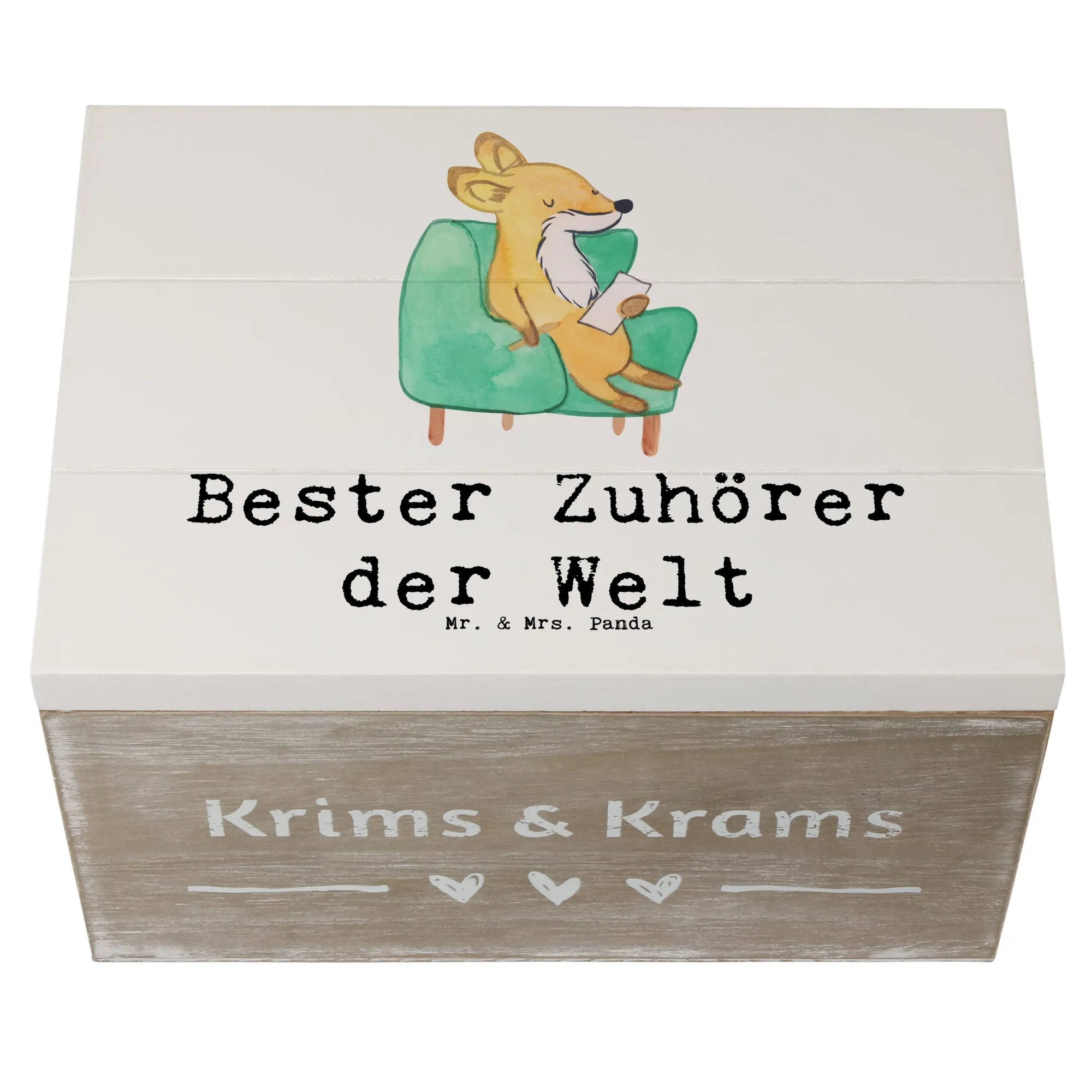 Die Holzkiste mit dem bezaubernden Fuchs-Motiv 'Bester Zuhörer der Welt' von Mr. & Mrs. Panda ist das perfekte Geschenk für all jene, die ihren Freunden und Liebsten auf eine besondere Art und Weise Danke sagen möchten.