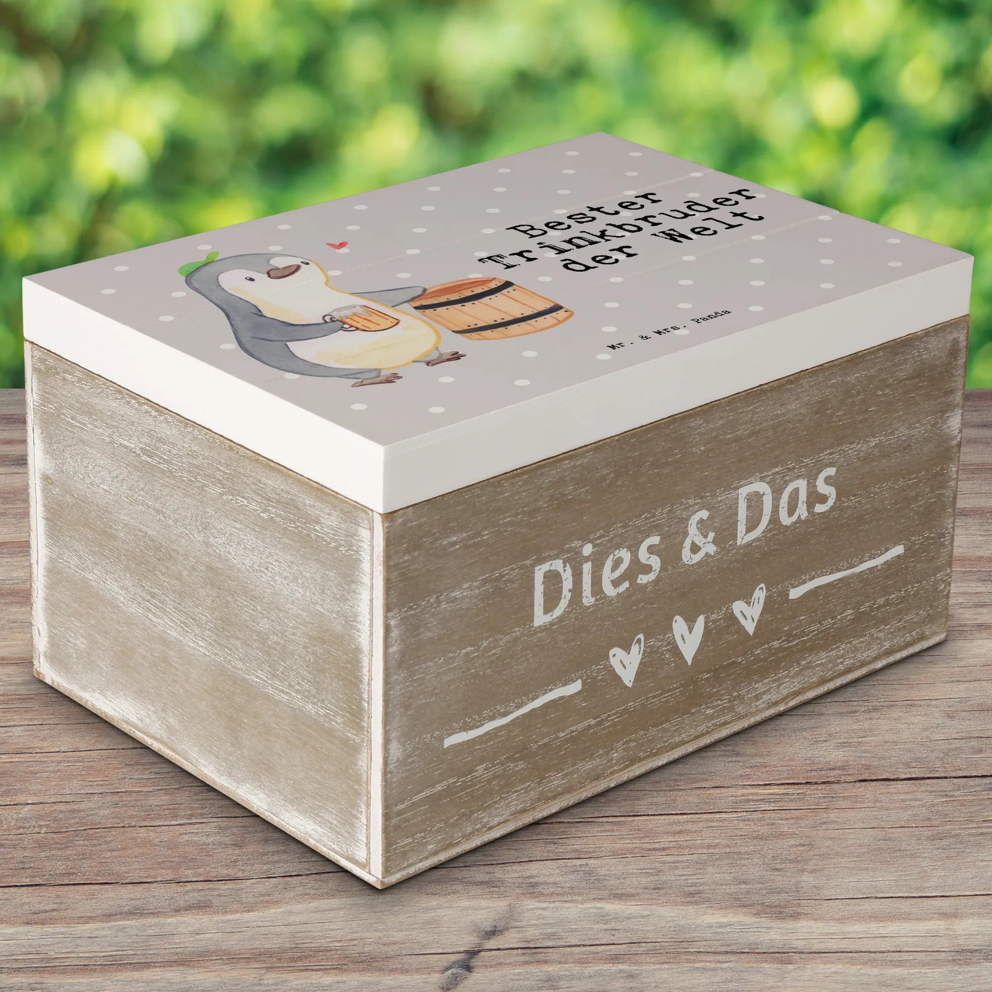 Suchst du nach dem perfekten Geschenk für den besten Trinkbruder der Welt? Dann ist die Holzkiste mit dem bezaubernden Pinguin-Motiv von Mr. & Mrs. Panda genau das Richtige!