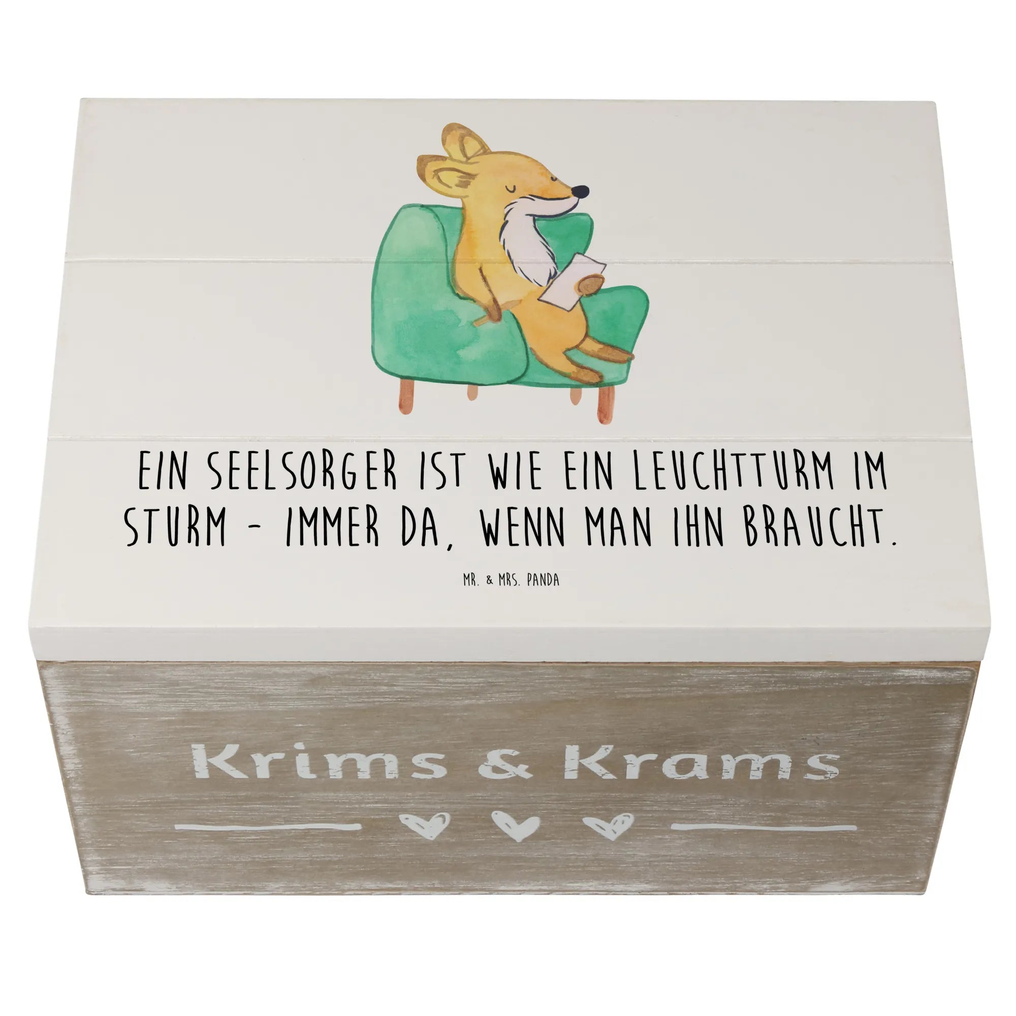 Entdecke die wunderschöne Holzkiste Seelsorger von Mr. & Mrs. Panda, ein zauberhaftes Geschenk, das für alle besten Gelegenheiten perfekt geeignet ist. Mit ihrem liebevollen Motiv und dem inspirierenden Spruch "Ein Seelsorger ist wie ein Leuchtturm im Sturm - immer da, wenn man ihn braucht." bringt diese Kiste nicht nur Freude, sondern verleiht auch jedem Zuhause eine persönliche Note. Egal, ob du einfach für jemanden Danke sagen möchtest oder ein besonderes Geschenk für einen Lebensabschnitt wie Kommunion oder Konfirmation suchst – diese Erinnerungskiste ist die ideale Wahl!