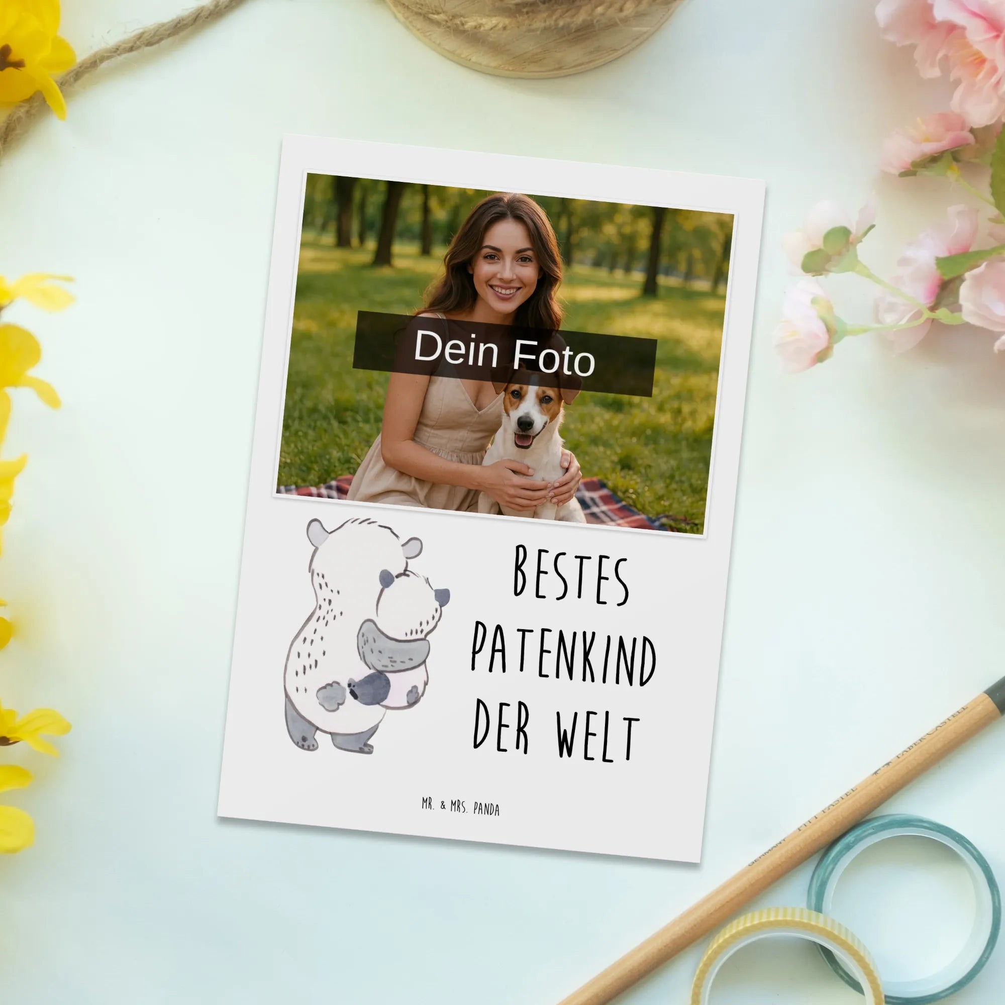 Die wunderschöne Postkarte "Bestes Patenkind der Welt" von Mr. & Mrs. Panda ist das perfekte Geschenk für dein Patenkind. Mit einem niedlichen Panda-Motiv, das einen kleinen Panda im Arm hält, lässt diese Karte jedes Herz höher schlagen.