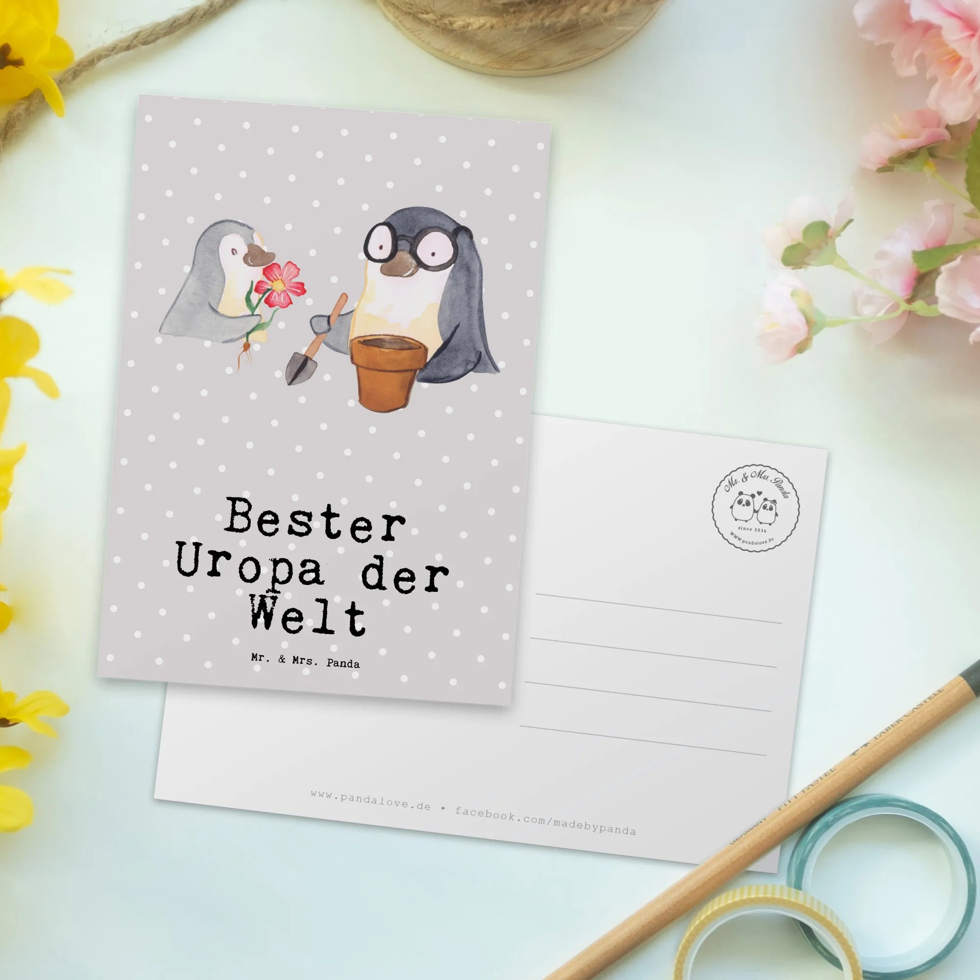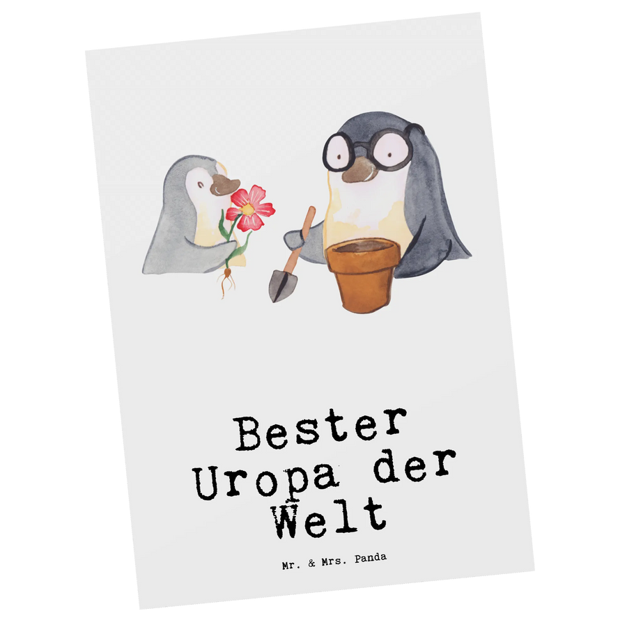 Entdecke die bezaubernde Postkarte mit dem Motiv "Bester Uropa der Welt" von Mr. & Mrs. Panda! Wenn Du nach einem liebevollen und persönlichen Geschenktipp für Deinen Großvater suchst, dann liegt Du genau richtig. Diese einzigartige Postkarte zeigt einen süßen kleinen Pinguin, der fasziniert zuschaut, wie sein Großvater eine Pflanze in einem Topf pflanzt. Ein zauberhaftes Motiv, das die besondere Beziehung zwischen Enkelkind und Großvater auf innige Weise widerspiegelt!