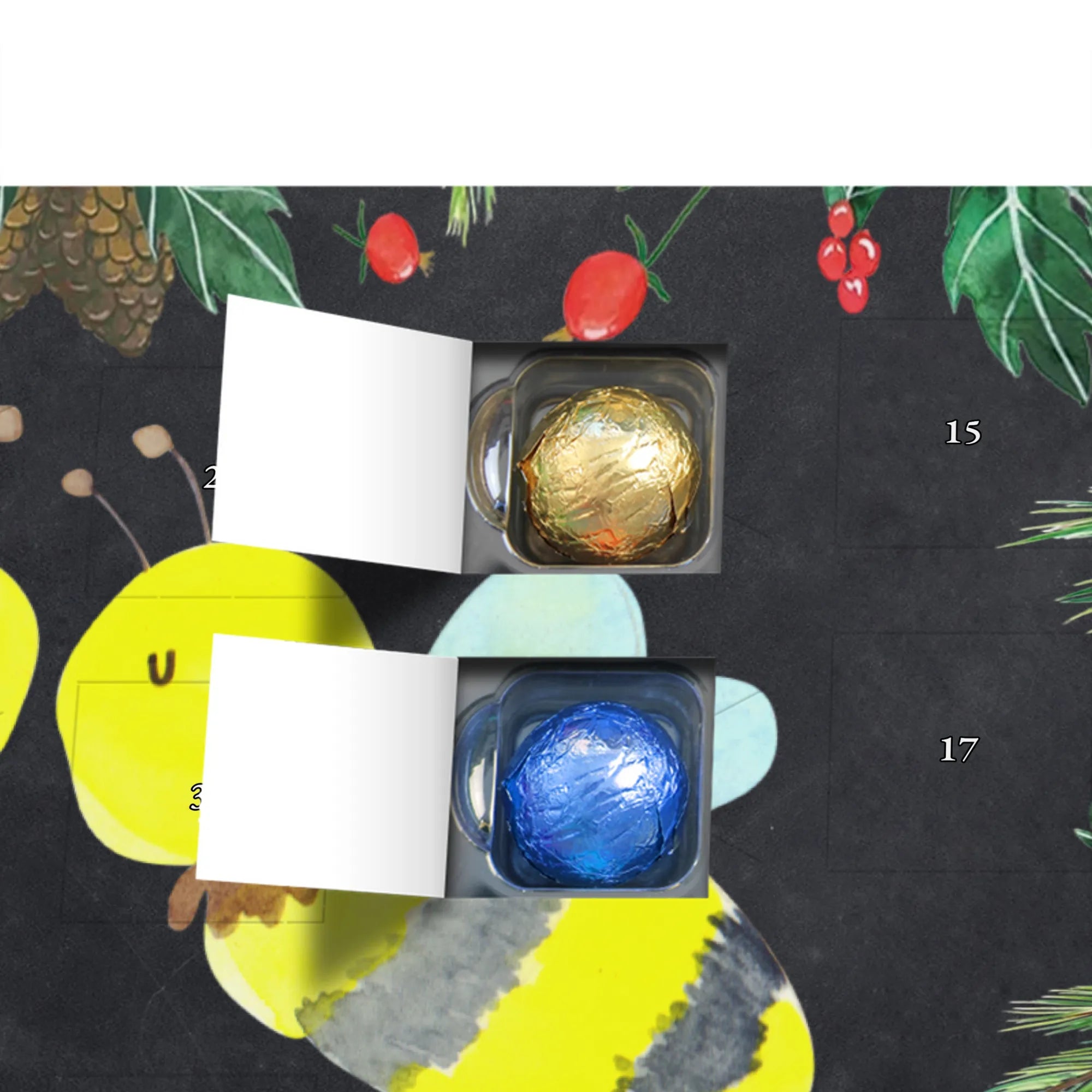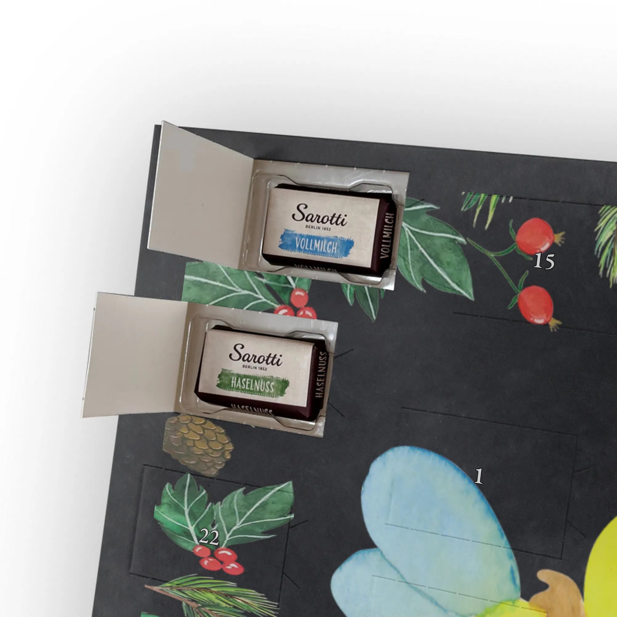Schon unser Schoko-Adventskalender von Mr. & Mrs. Panda gesehen? Ein liebevoll gestalteter Kalender, bedruckt mit wunderschönen Motiven & Sprüchen, der deine Adventszeit versüßt. Der Kalender ist nicht personalisierbar, überzeugt aber durch brillante Druckqualität mit seidenmatter Oberflächenveredelung und bedruckte Seitenflächen für ein rundum schönes Erscheinungsbild. Maße: 325 mm x 225 mm x 27 mm. Du kannst ihn aufhängen oder aufstellen – ganz wie es dir gefällt. Gefüllt mit Ritter Sport Schokowürfeln in köstlichen Sorten: Mousse au Chocolat, Schoko Crisp, Voll-Nuss in Nougatcreme, Karamell Duo, Joghurt und Erdbeer-Joghurt. Bitte beachten: Es handelt sich um einen Kalender gefüllt mit Ritter Sport Schokolade, nicht um einen Kalender der Marke Ritter Sport. Ob als Geschenk oder für dich selbst – dieser Schoko-Adventskalender bringt täglich kleine Glücksmomente und süße Überraschungen.