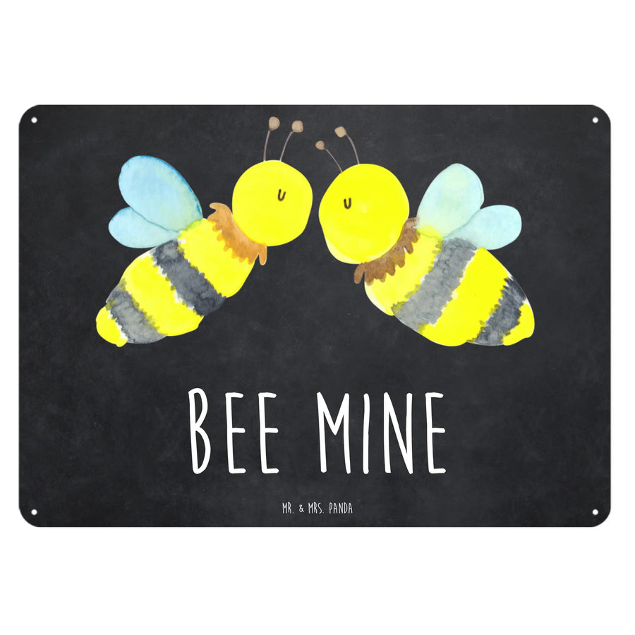 Das edle Stahlblech strahlt Qualität aus und bietet mit seiner seidenmatten Oberfläche eine besonders ansprechende Optik. Das handgezeichnete Motiv zeigt zwei süße Bienen, die sich innig küssen und damit die wahre Liebe symbolisieren. Die feinen und detailreichen Illustrationen von Mrs. Panda machen dieses Schild zu einem echten Unikat.