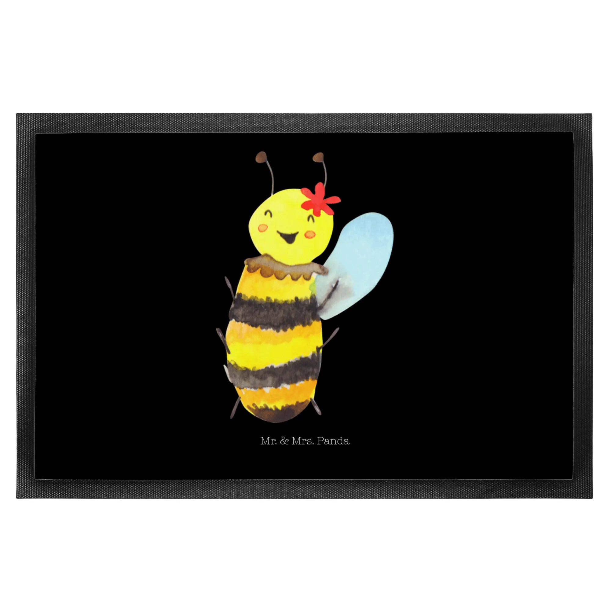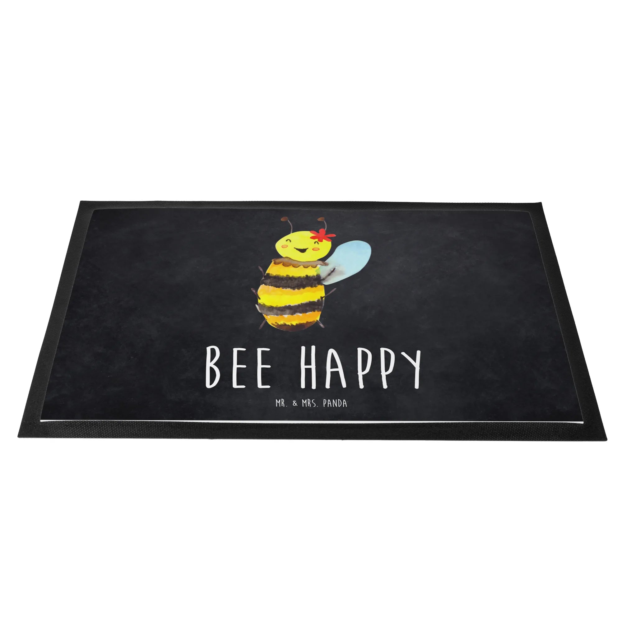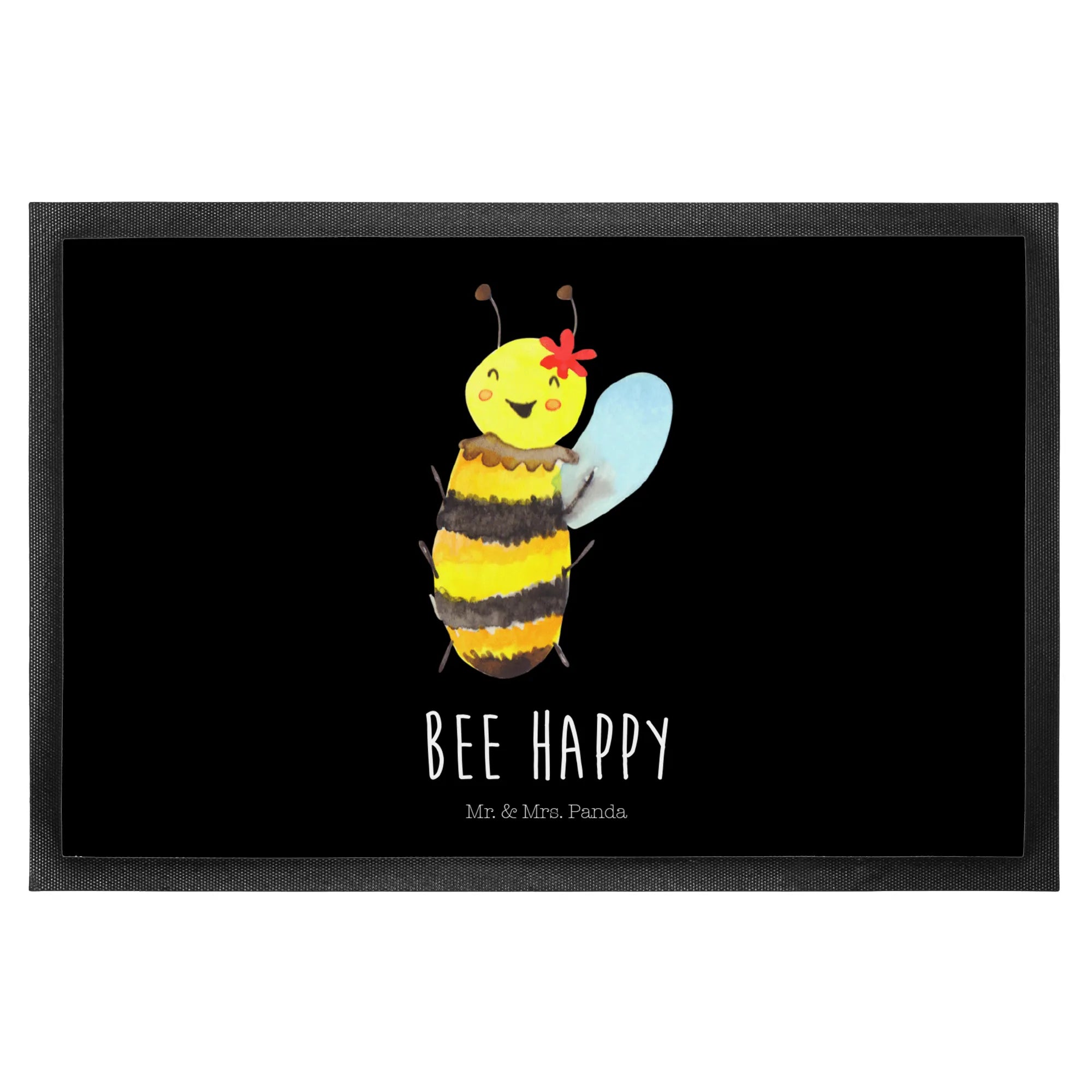 Fußmatte Biene Happy - 60 x 90 cm - mit Spruch - Schwarz