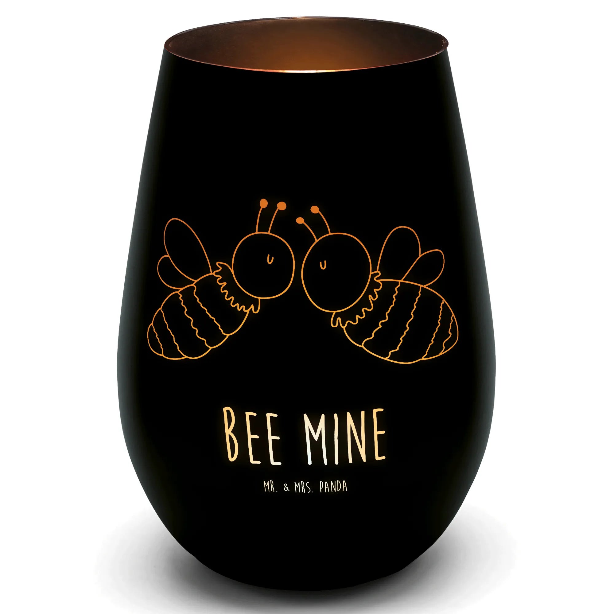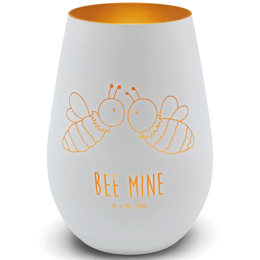 Die detaillierte Gravur zeigt zwei süße Bienen, die innig küssen und ganz klar vermitteln: „Bee mine“. Mit seinem handgezeichneten Design wird jedes Windlicht zu einem einzigartigen Unikat, das die Herzen höher schlagen lässt.