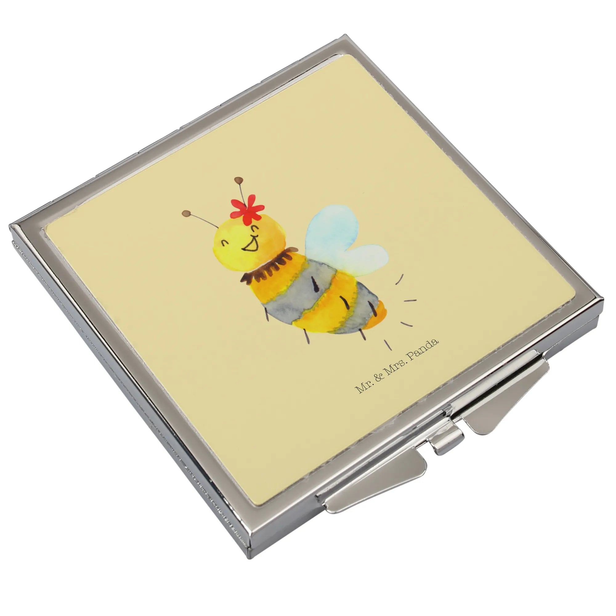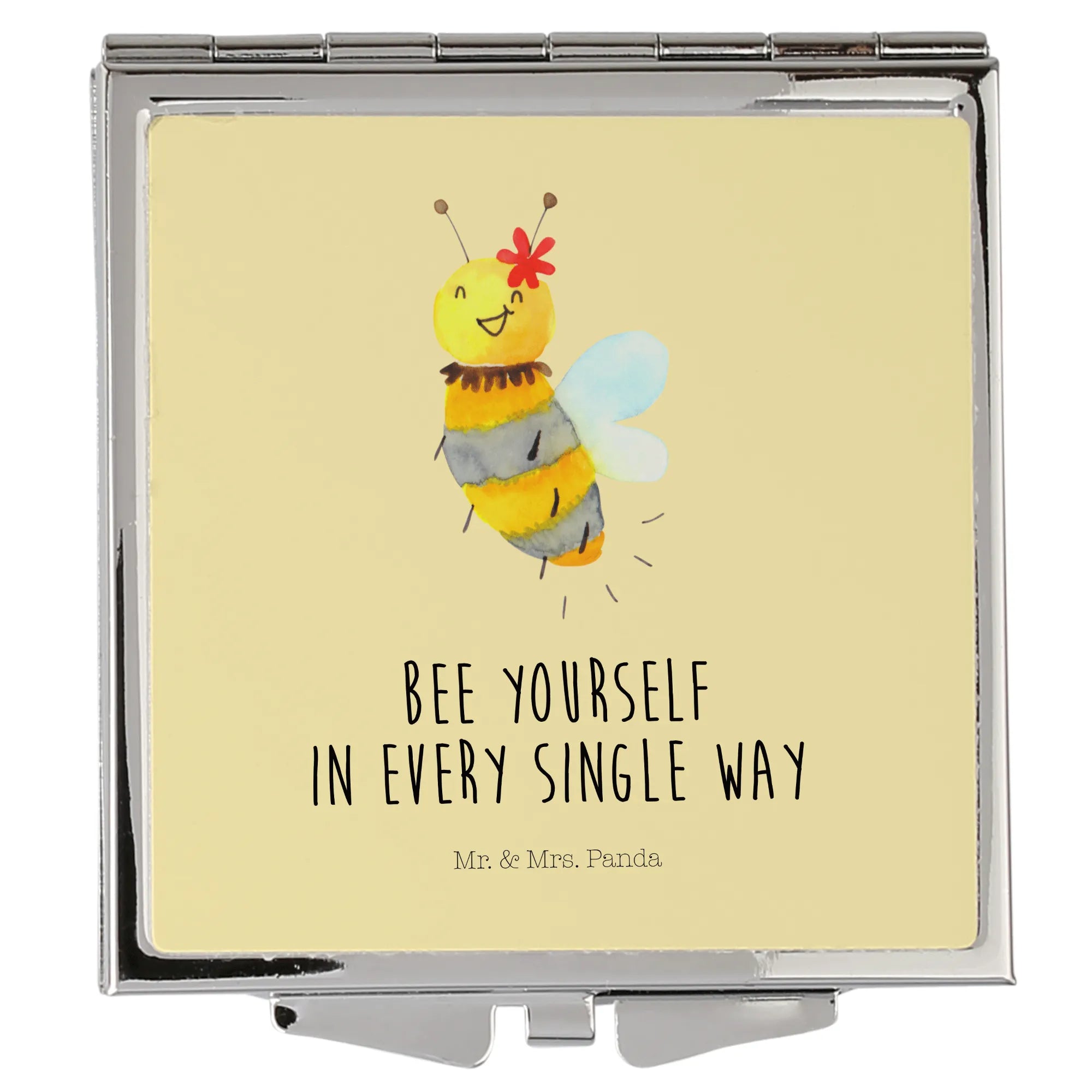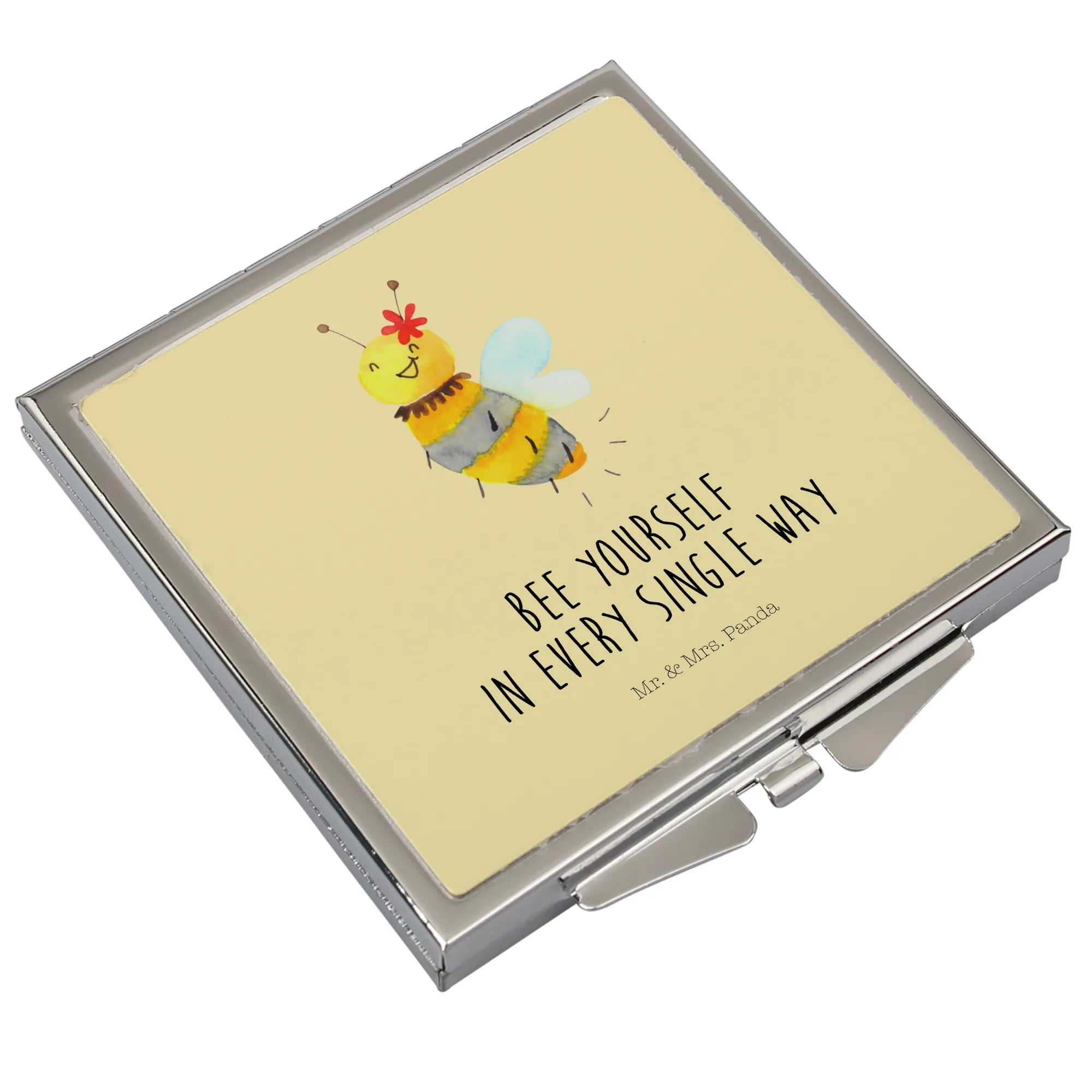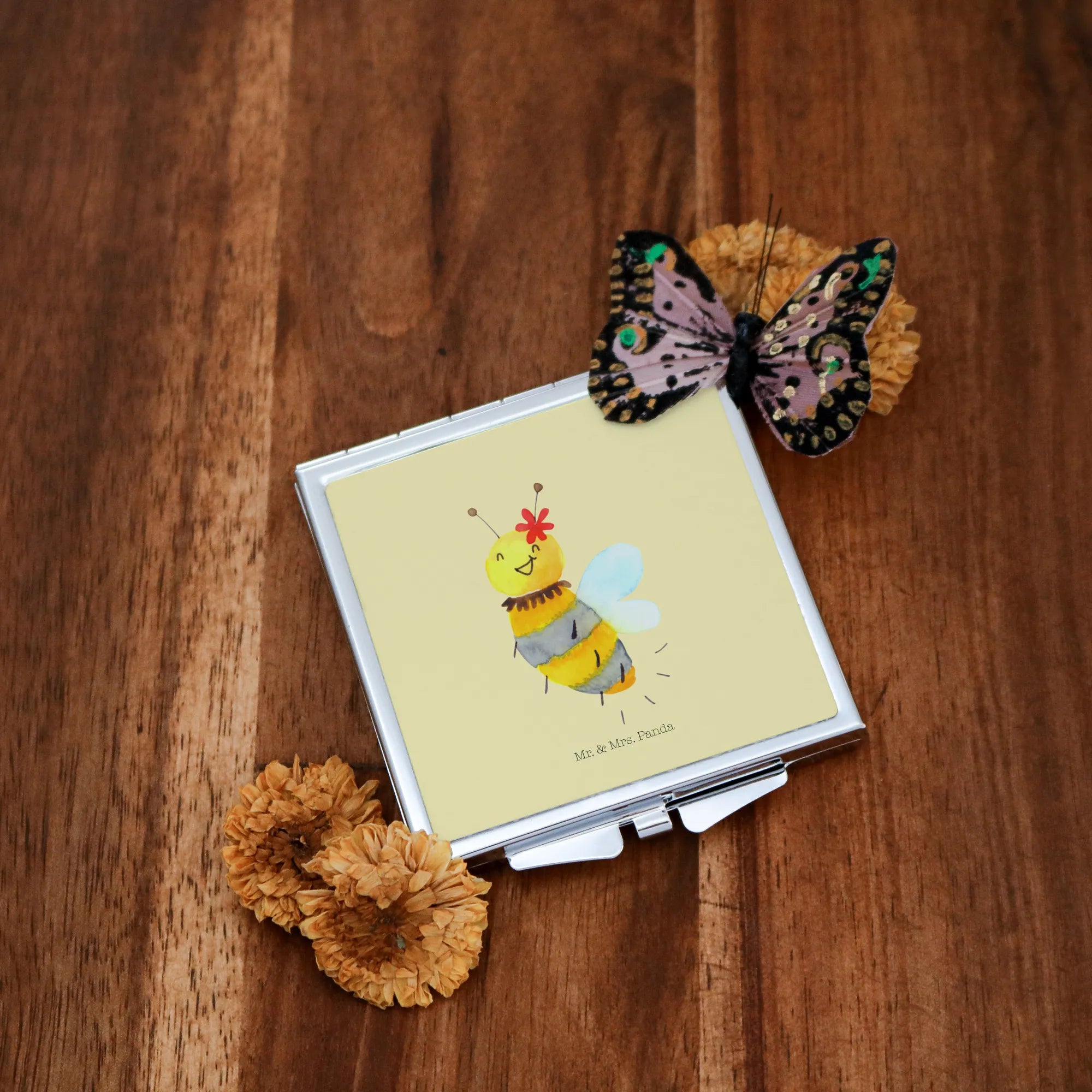 Suchst du nach dem perfekten Geschenk für deine Liebsten? Der quadratische Handtaschenspiegel mit dem traumhaften Motiv "Biene Blume" aus der Bienen-Kollektion von Mr. & Mrs. Panda ist genau das Richtige!