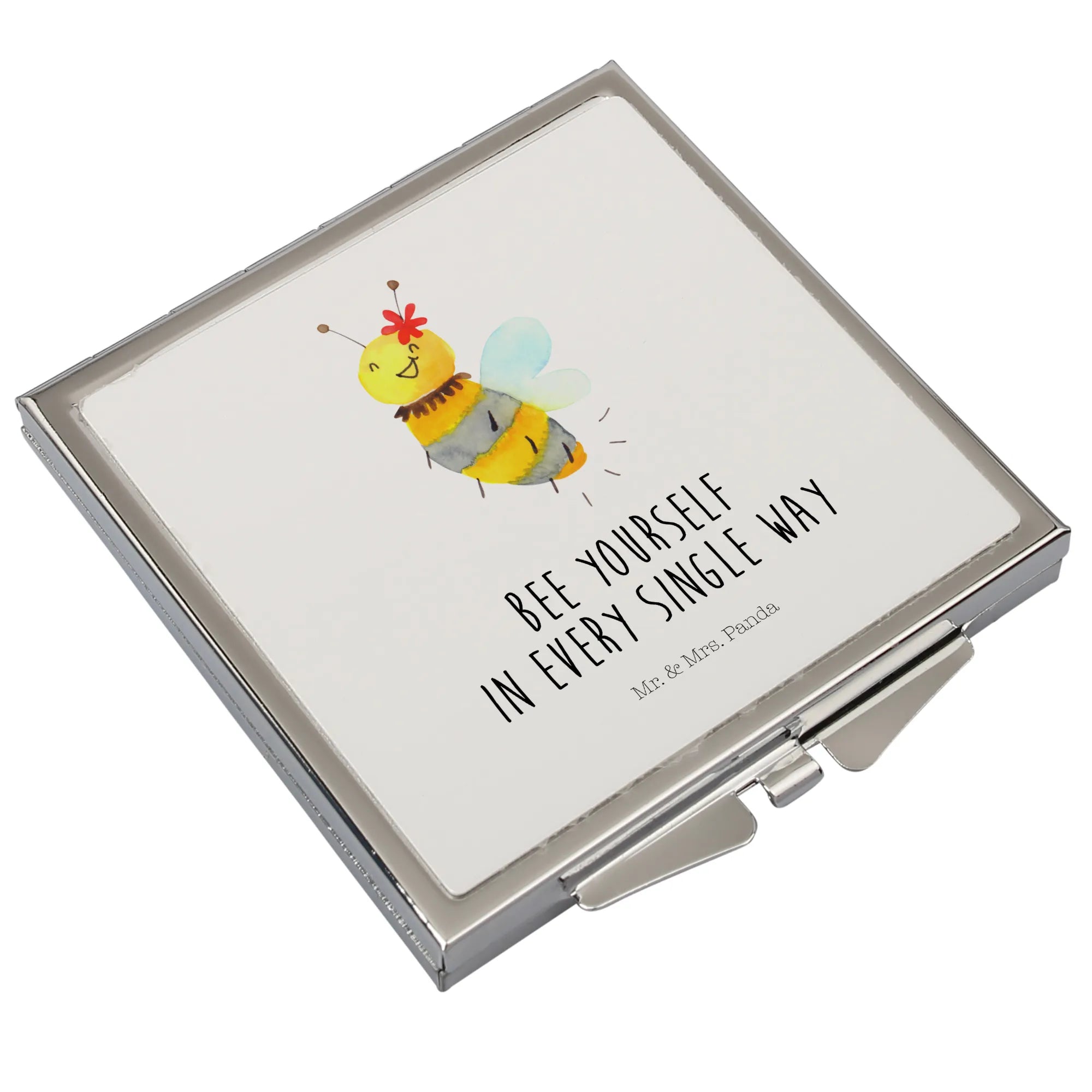 Handtaschenspiegel quadratisch Biene Blume - mit Spruch - Weiß