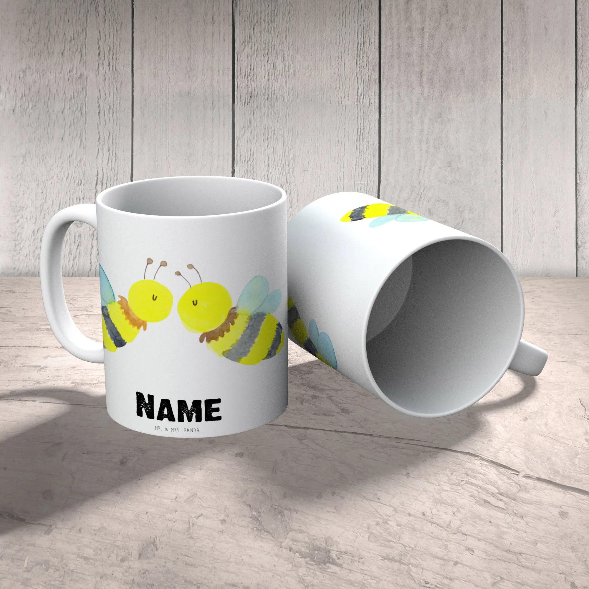 Die personalisierte Tasse "Biene Liebe" aus der einzigartigen Bienen-Kollektion von Mr. & Mrs. Panda ist das perfekte Geschenk für alle, die süße und liebevolle Momente genießen möchten. Mit ihrem handgezeichneten Design, das zwei verliebte Bienen in einem innigen Kuss zeigt, wird diese Tasse schnell zum Liebling bei jedem Kaffee- oder Teetrinker. Egal, ob du sie zum Geburtstag, zu einem Jahrestag oder einfach mal so verschenken möchtest, diese Tasse sorgt immer für ein Lächeln.