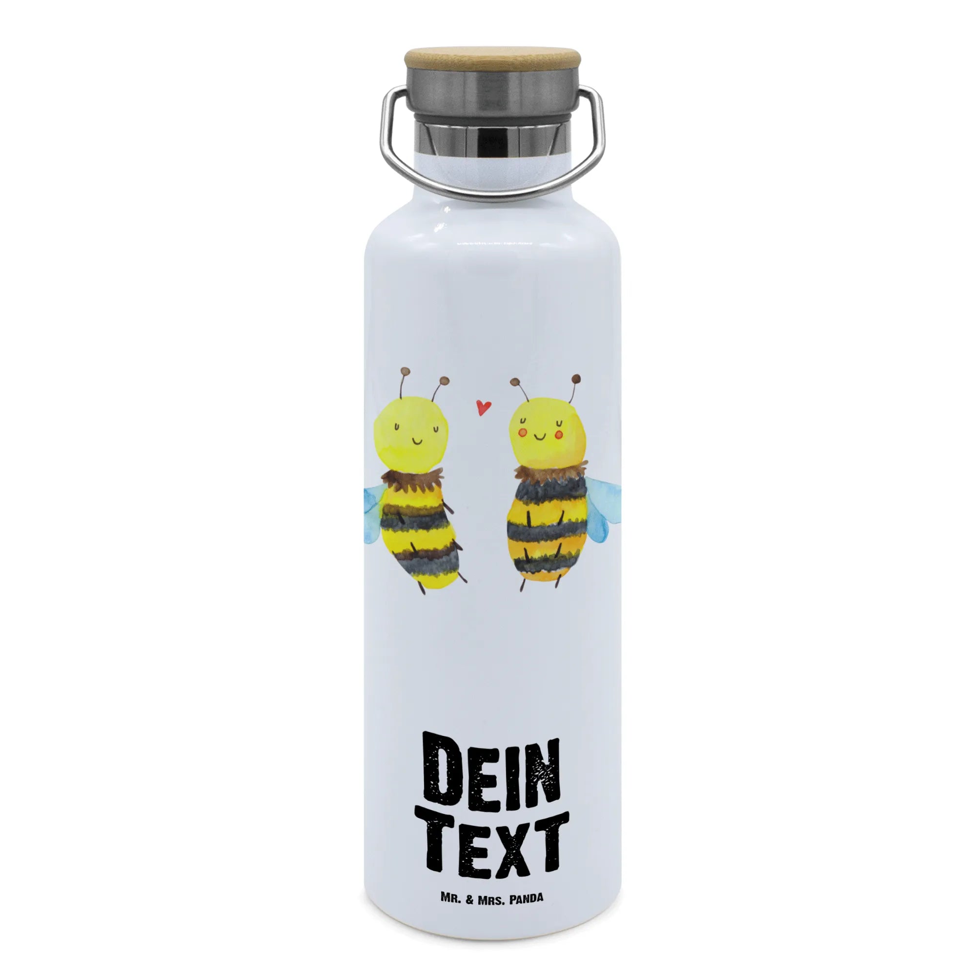 Verschenke Liebe, verschenke Freude – mit der personalisierten Trinkflasche "Biene Verliebt" von Mr. & Mrs. Panda, die Leidenschaft und Wärme in jeden Schluck bringt!