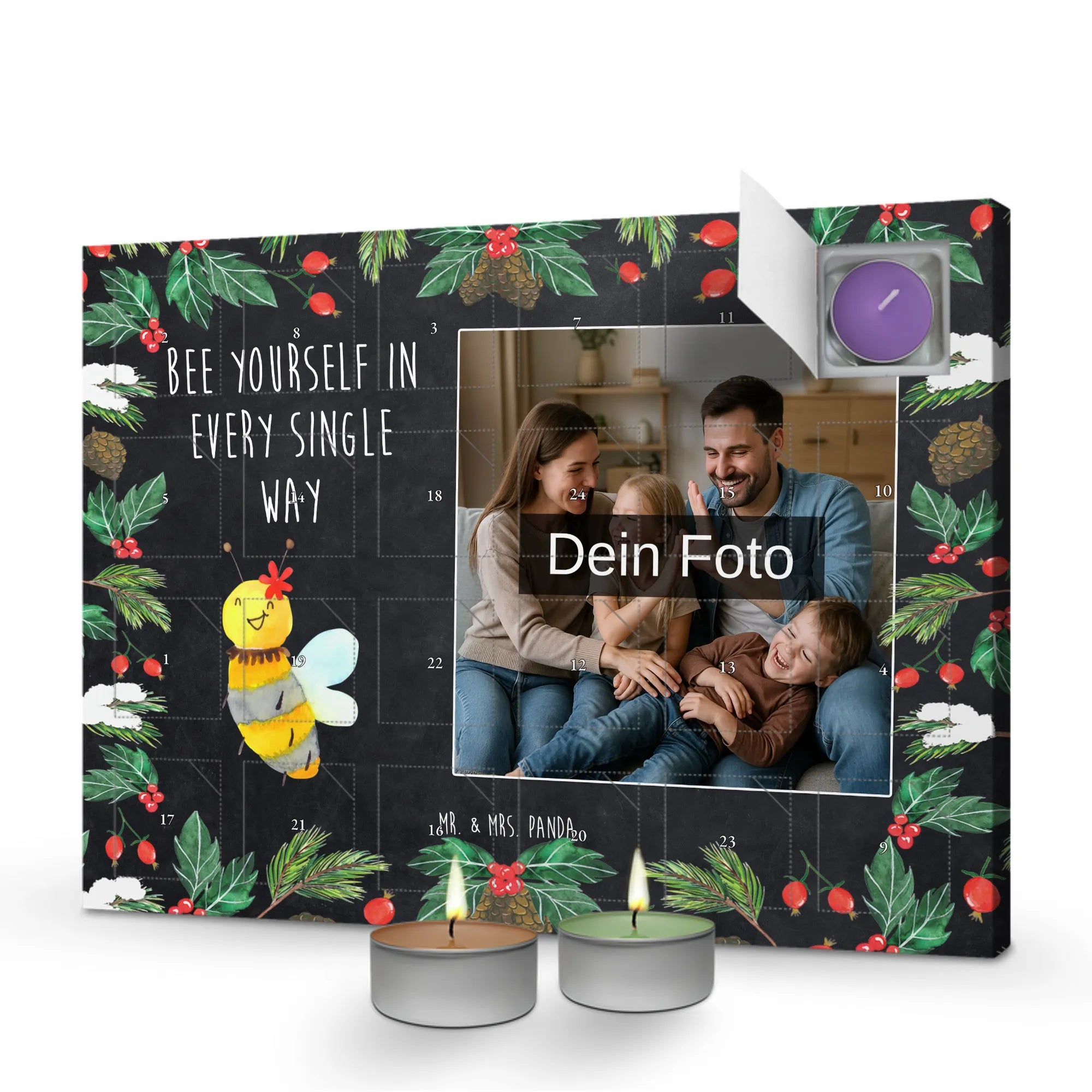 Personalisierter Duftkerzen Foto Adventskalender Biene Blume