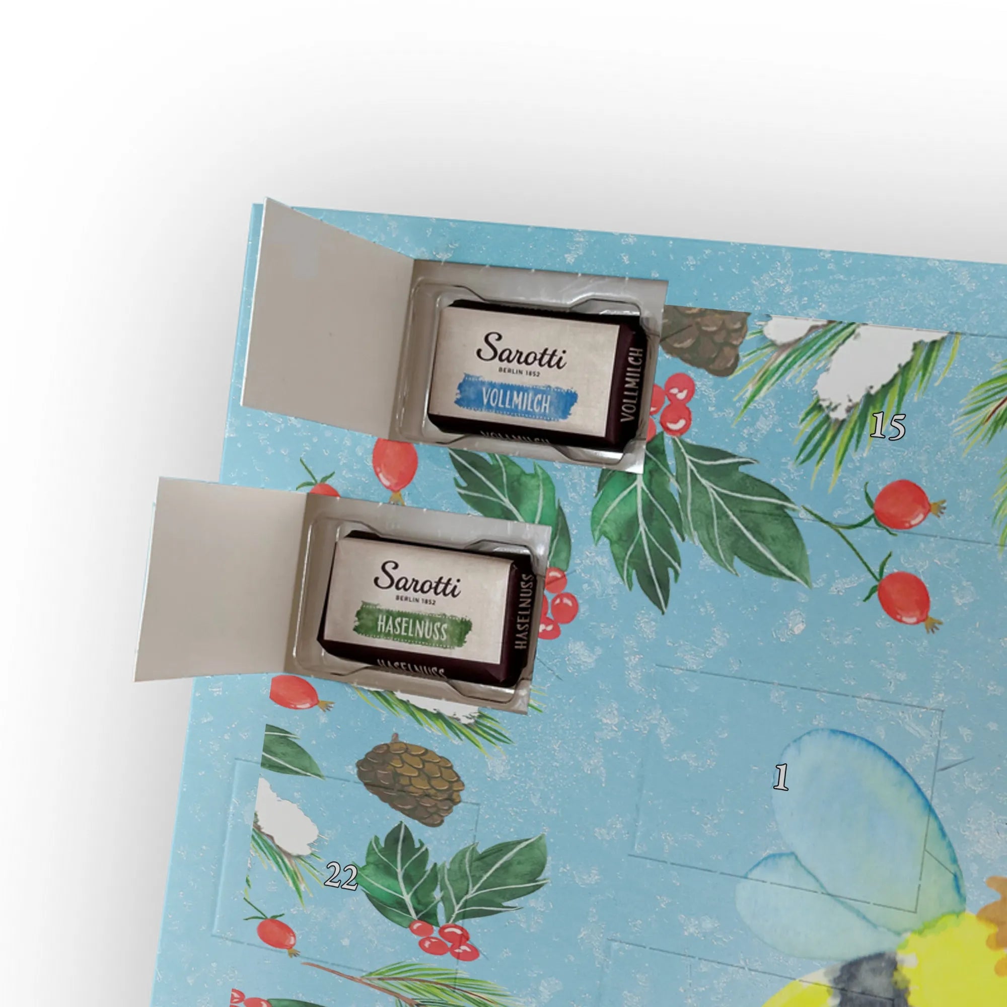 Personalisierter Schoko Adventskalender von Mr. & Mrs. Panda – der perfekte Adventskalender mit Namen für alle, die Geschenke mit Persönlichkeit lieben. Unsere Designs sind mit süßen Illustrationen und liebevollen Sprüchen bedruckt und lassen sich ganz easy mit deinem Namen oder kurzem Wunschtext versehen. Die hochwertige, seidenmatte Oberflächenveredelung verleiht dem Kalender ein edles Finish, und auch die Seitenflächen sind vollständig bedruckt – kleine Details mit großer Wirkung. Maße: 355 mm x 245 mm x 11 mm. Du kannst den Kalender sowohl aufhängen als auch aufstellen, je nachdem, wie du ihn präsentieren möchtest. Gefüllt ist er mit 24 einzeln verpackten Schokoladentäfelchen in vier köstlichen Geschmacksrichtungen. Insgesamt enthält er 107 g Markenschokolade von Sarotti® und Confiserie Heidel®: Vollmilch, Nougat, Zartbitter und Haselnuss. Wichtig: Es handelt sich um einen Kalender gefüllt mit Sarotti® und Confiserie Heidel® Markenschokolade. Ob als Geschenk für die Liebsten oder als besonderer Adventsüberraschung für dich selbst – dieser Adventskalender zaubert jeden Tag ein Lächeln!