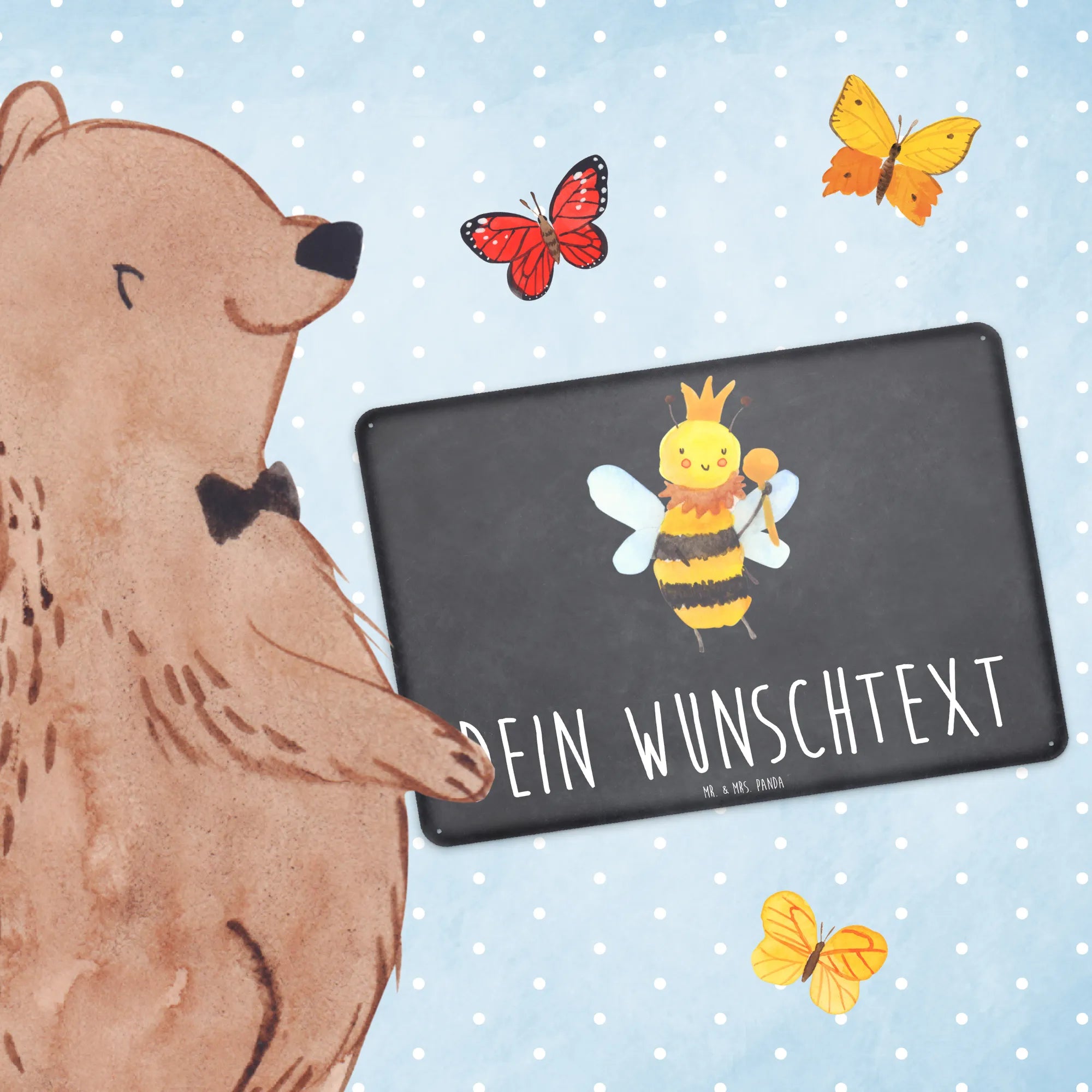Entdecke unser bezauberndes personalisiertes Blechschild "Biene König" von Mr. & Mrs. Panda – das perfekte Geschenk für Naturfreunde und Imker!
